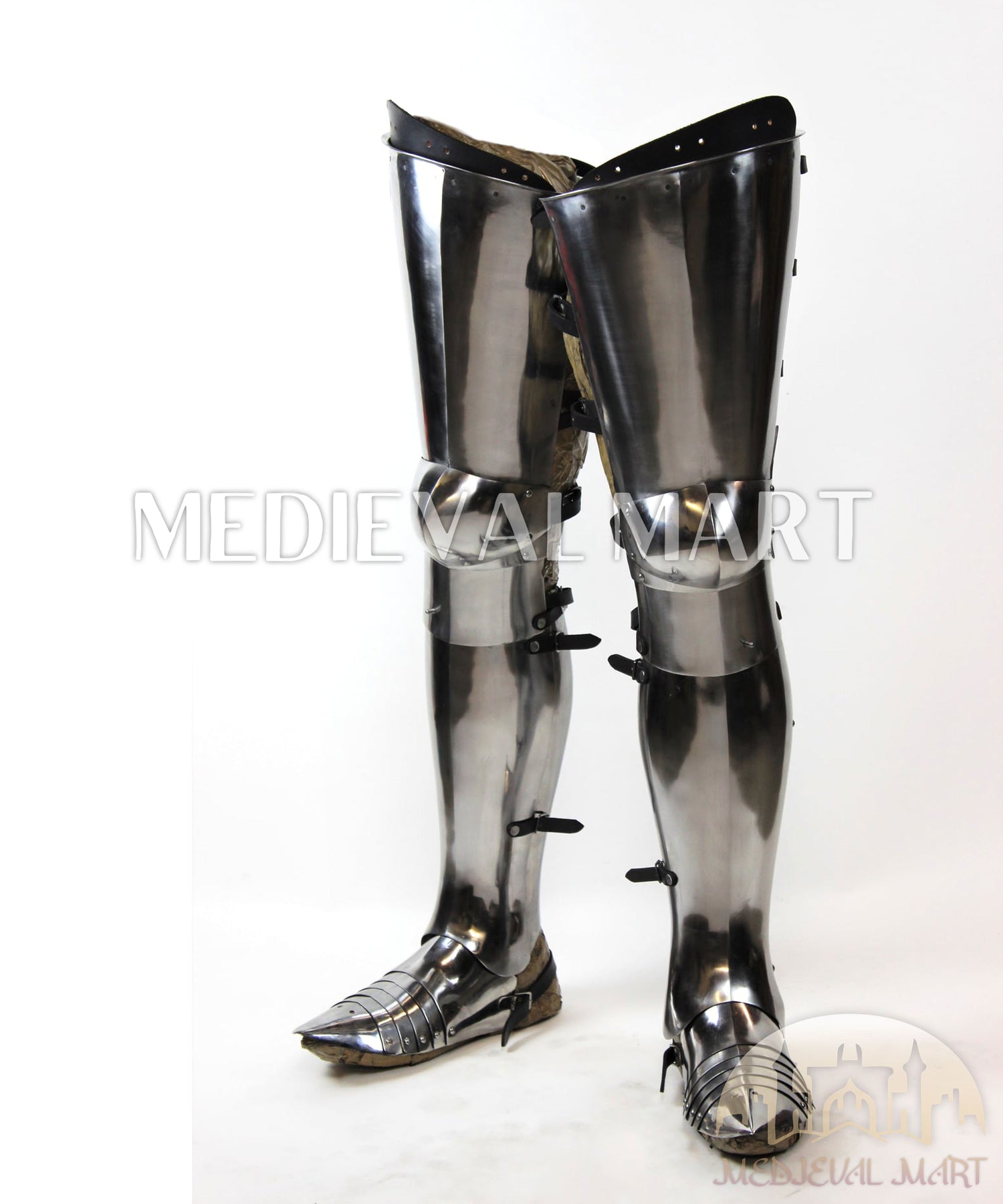 MEDIEVALMART AU European Greaves Knight English Legs Armor "Buff Polish"