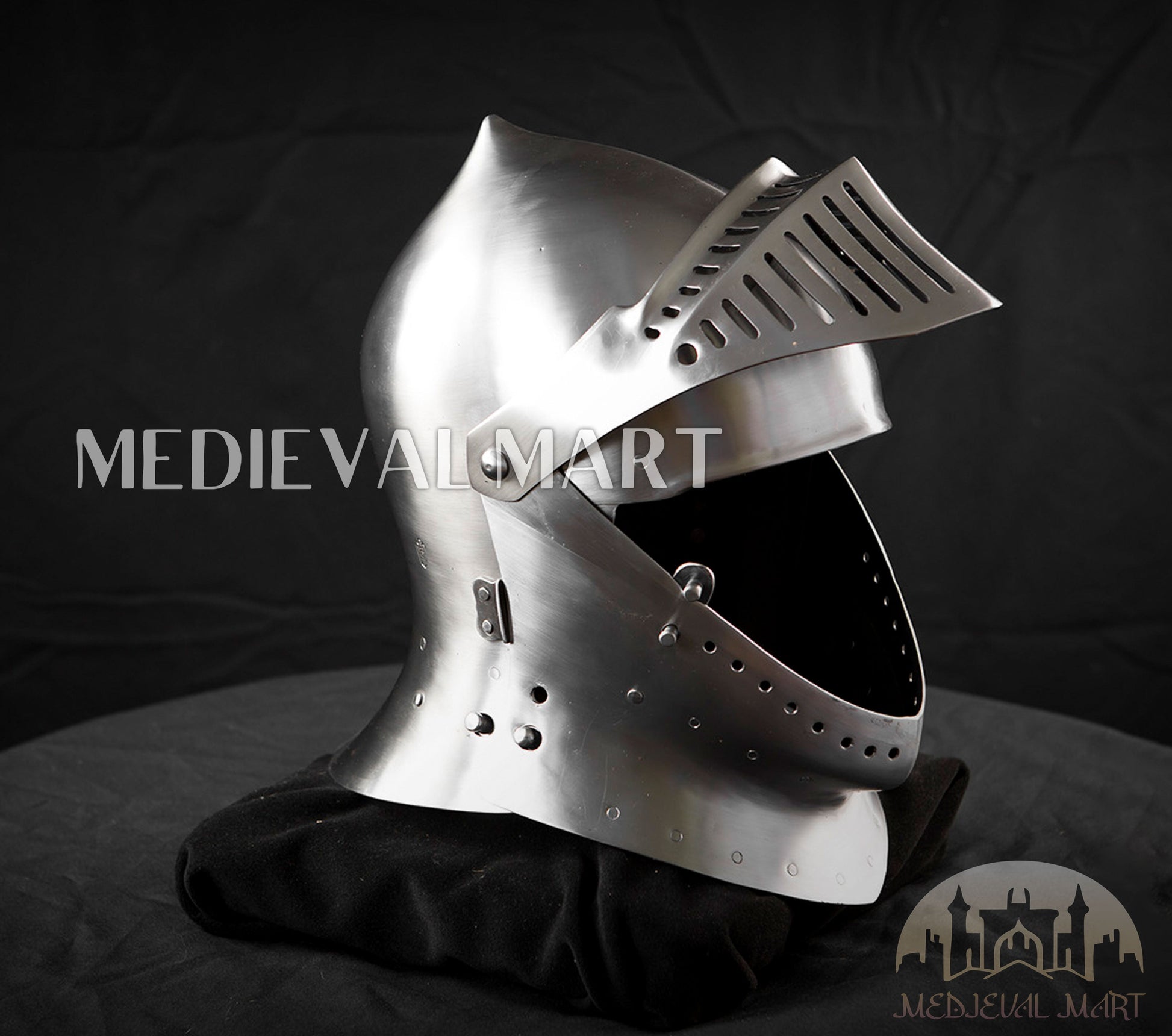 Inspired by the noble helms of 1200s European knights, this closed-face helmet offers full protection while echoing the grace and brutality of a griffon — the mythic beast known for guarding treasure and crushing enemies with the power of lion and eagle combined. The design roars with presence, perfect for those who fight in HMB, SCA, or live-action legendry.