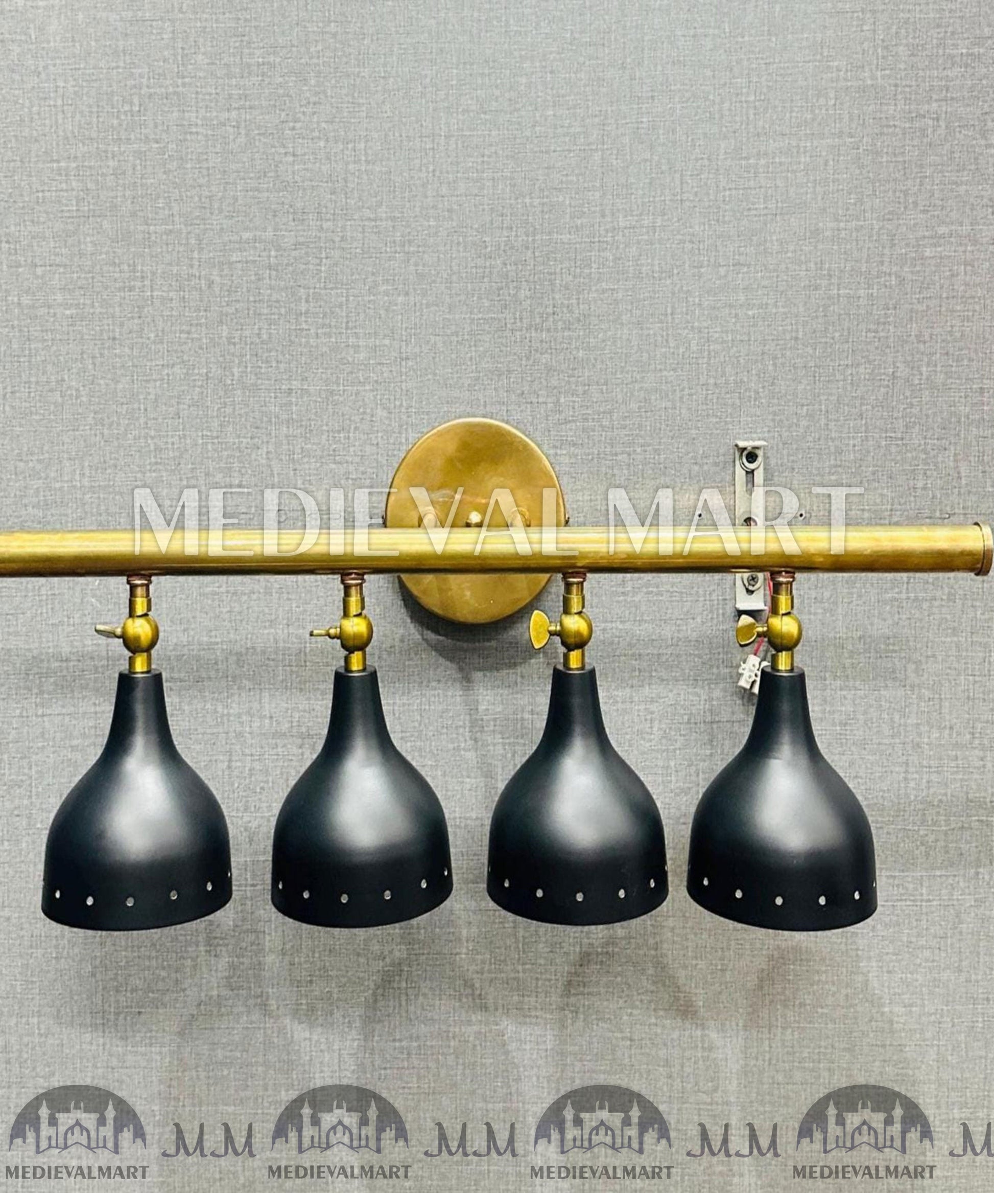 Add a bold mid-century statement to your interiors with the MedievalMart 1950s Modern Custom Brass 4-Light Wall Sconce. Inspired by the elegance of 1950s modern design, this handcrafted fixture combines solid brass craftsmanship with practical multi-light functionality.