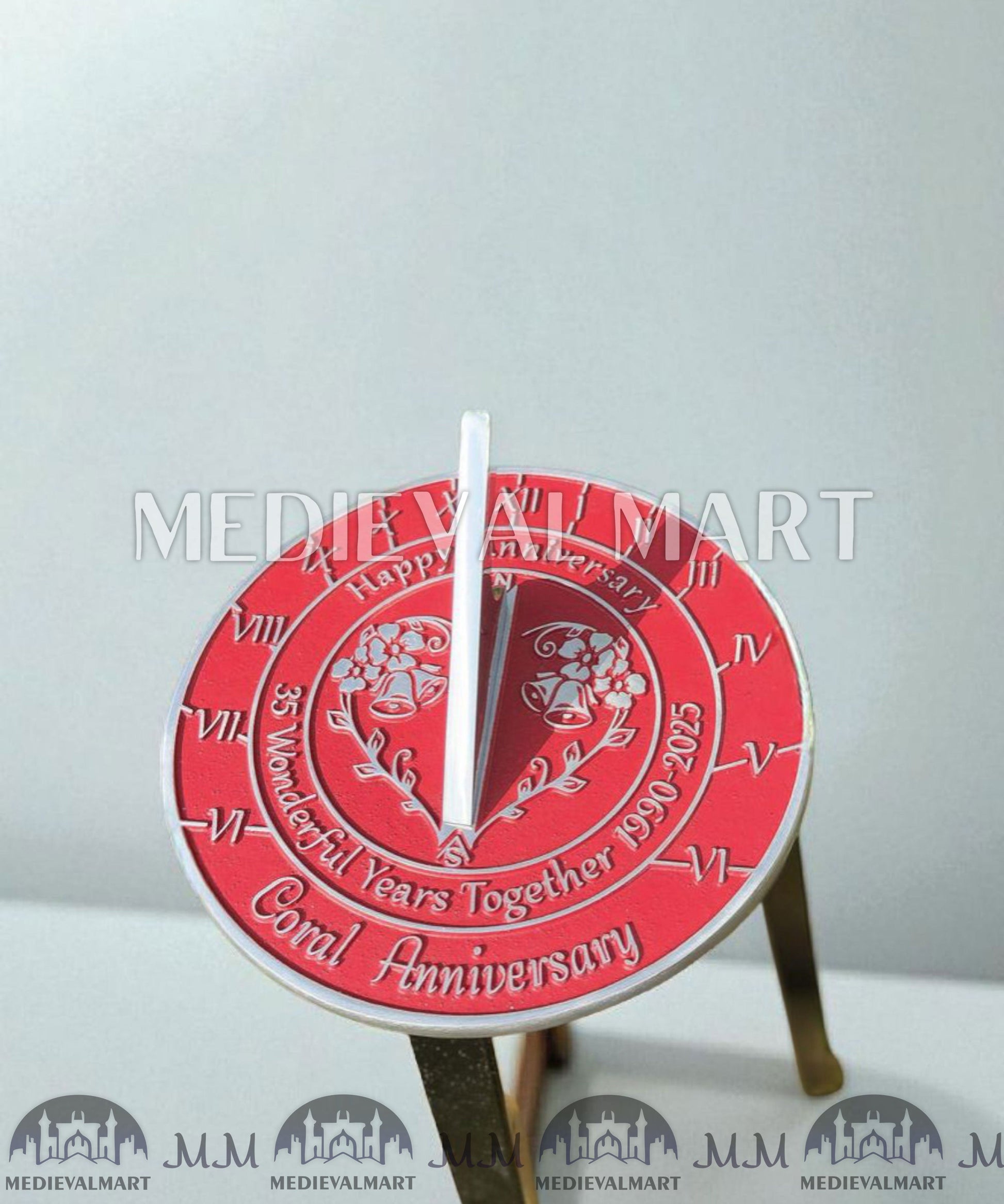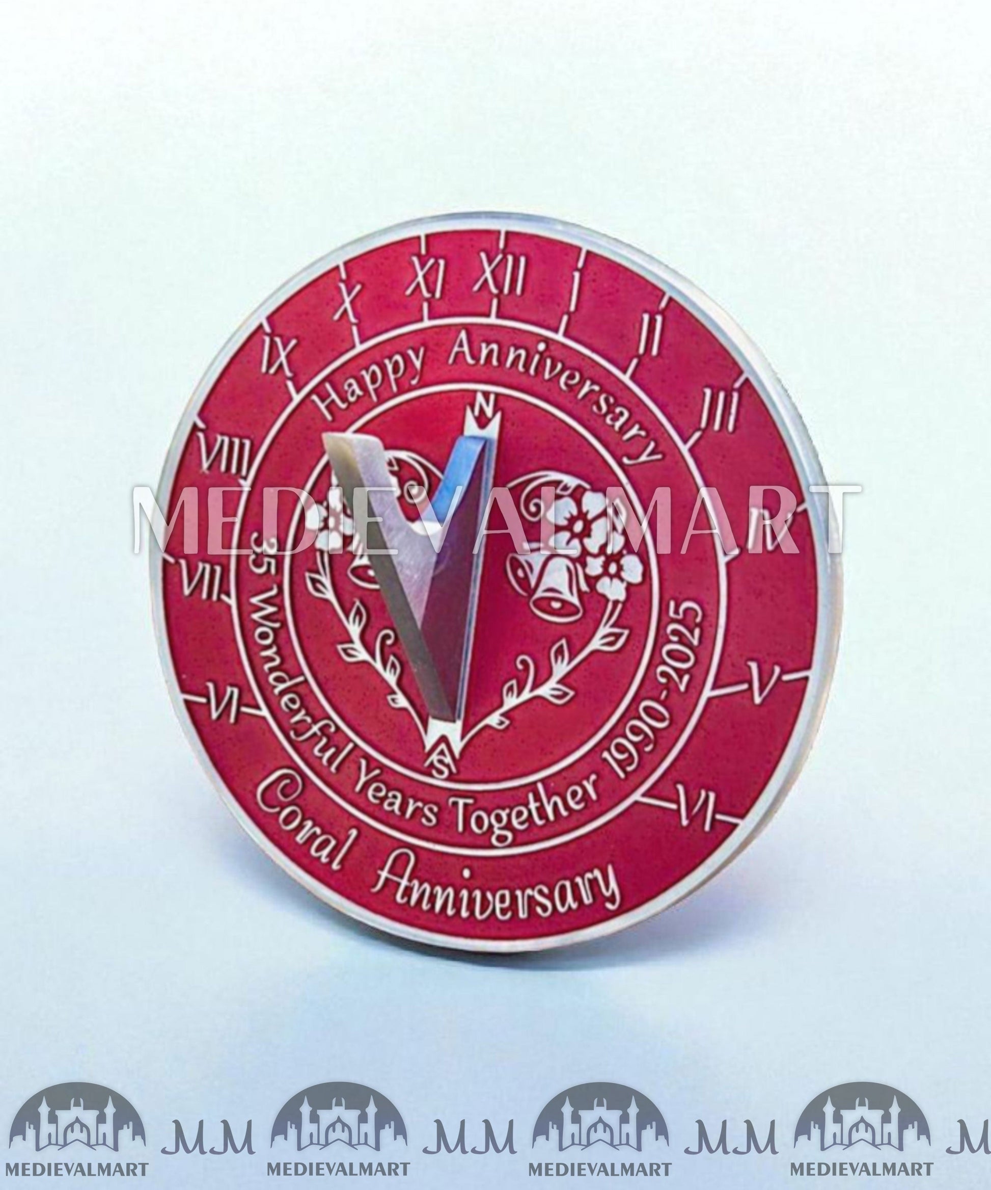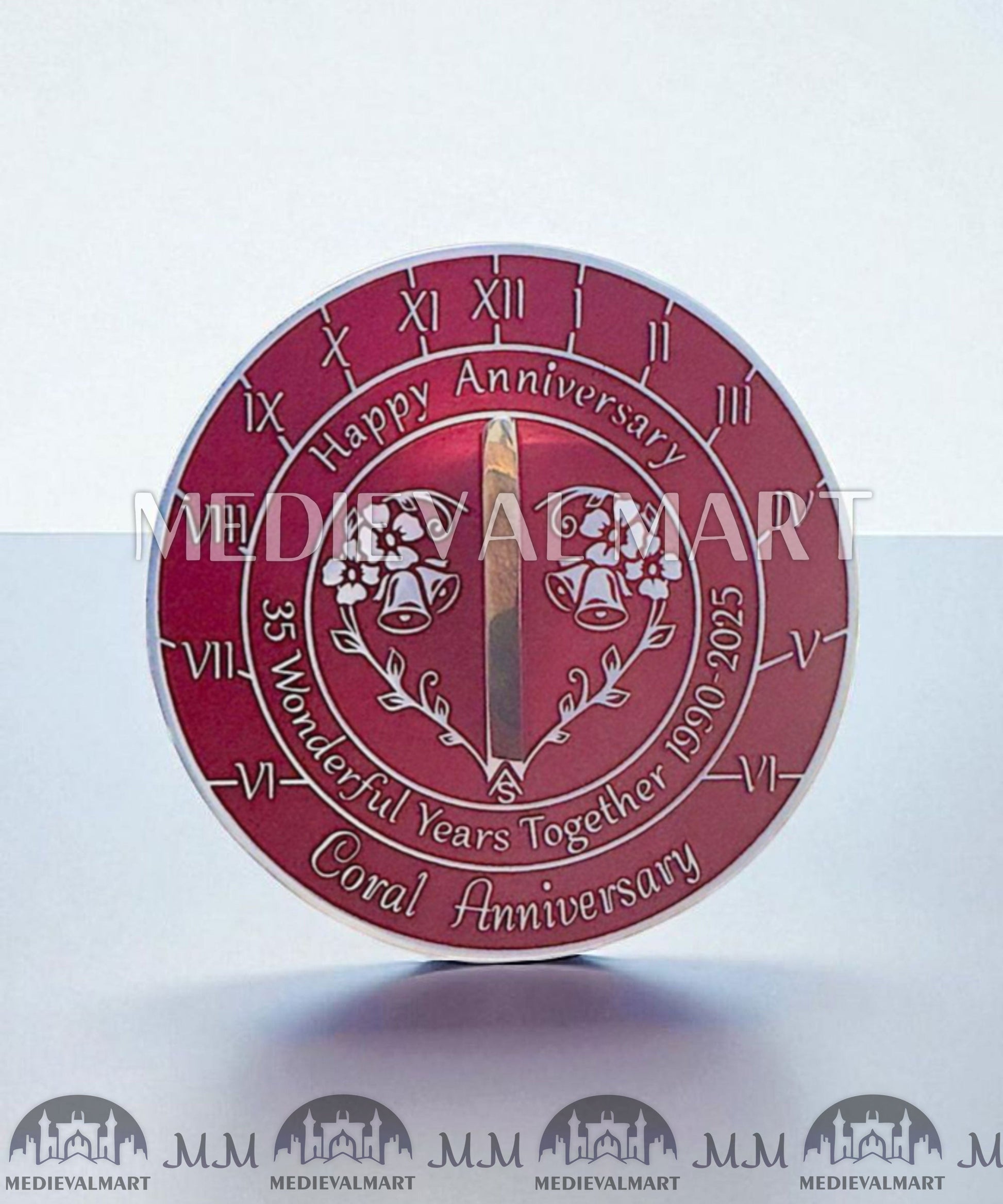 Celebrate thirty-five years of love, devotion, and shared memories with the MEDIEVALMART 35th "Wonderful Years" Coral Anniversary Sundial Clock. Crafted with care and elegance, this sundial clock honors the traditional 35th anniversary, symbolized by coral – vibrant, rare, and enduring, just like a relationship that has grown stronger and more beautiful over the decades.