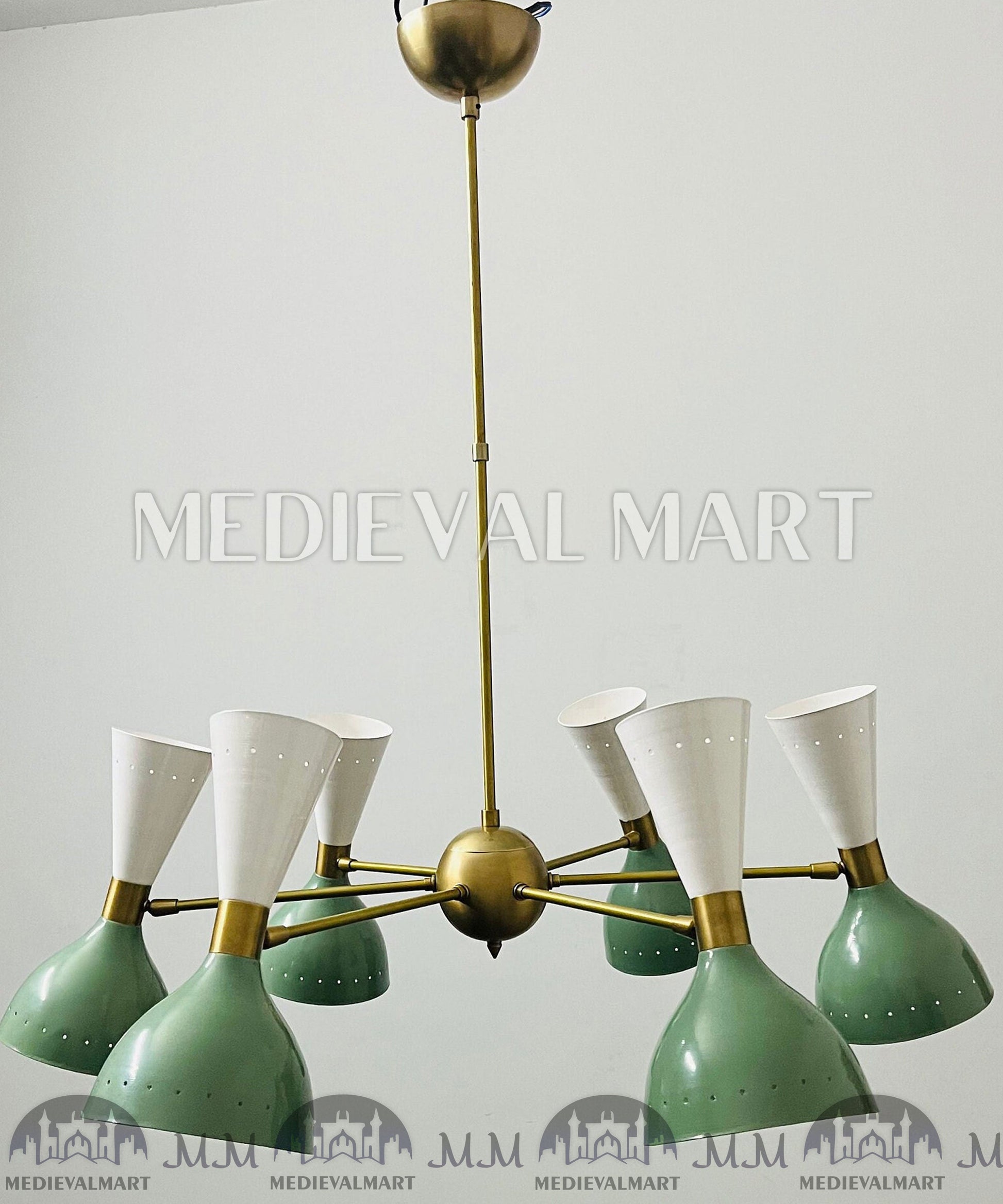 Illuminate your interiors with timeless elegance through the MEDIEVALMART Stilnovo Style Brass Sputnik Chandelier. Designed in true Mid-Century Modern fashion, this handcrafted masterpiece features 6 sculptural brass arms holding 12 radiant light points, creating a bold and balanced display of symmetry and sophistication.