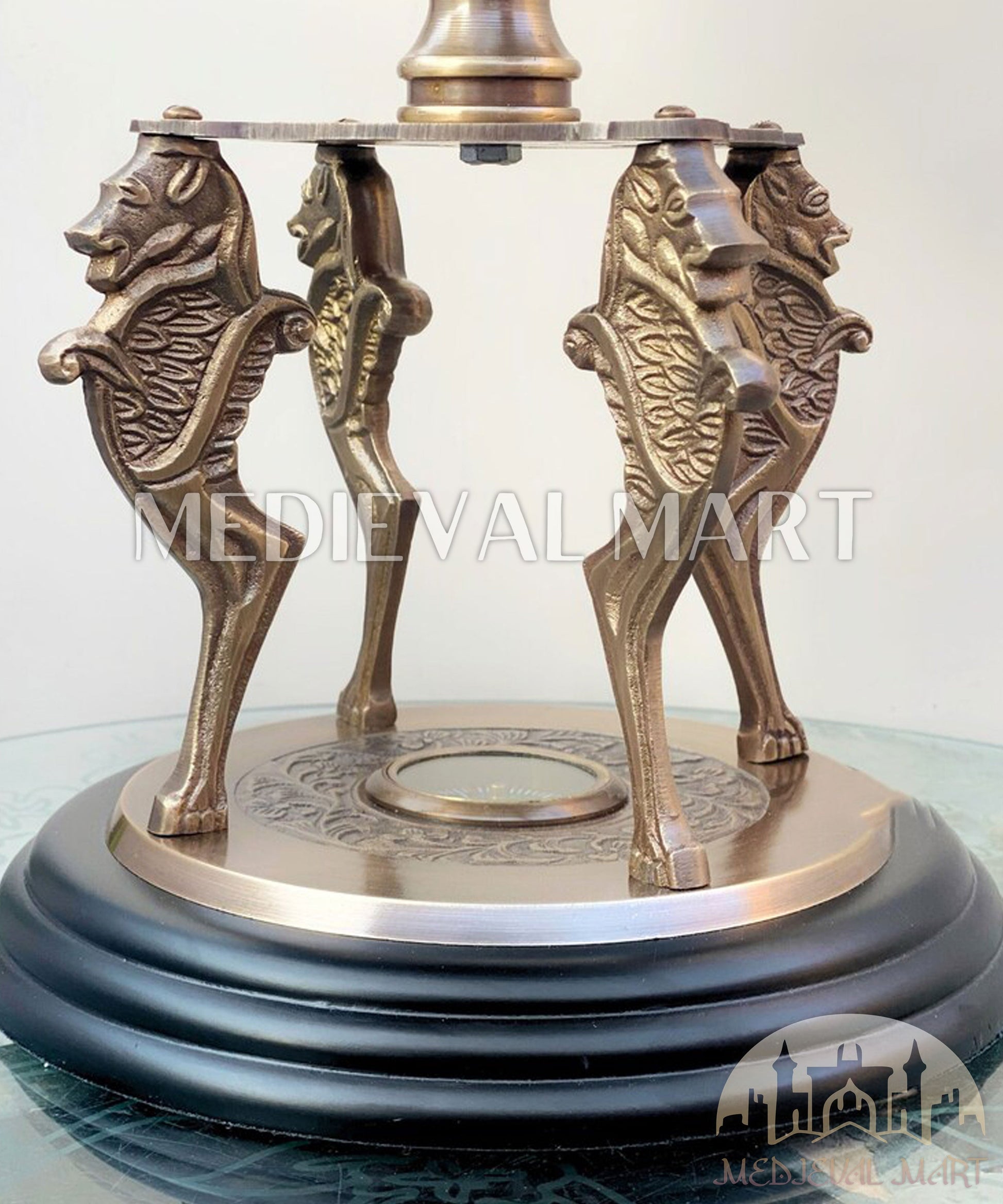 - Material: Solid Brass & Wood Base