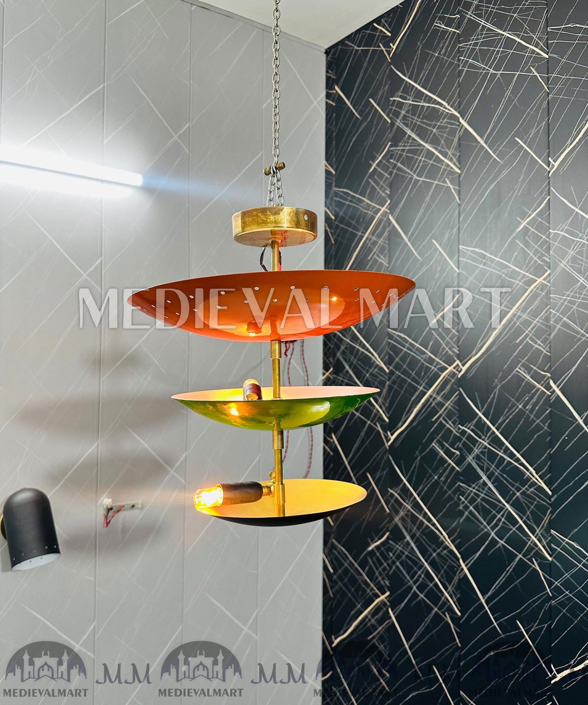 The MEDIEVALMART Customized Modern Brass Pendant Light brings handcrafted elegance and modern design to your home. Made from high-quality solid brass, this ceiling lamp is both durable and visually striking, creating a warm, inviting glow for any room.