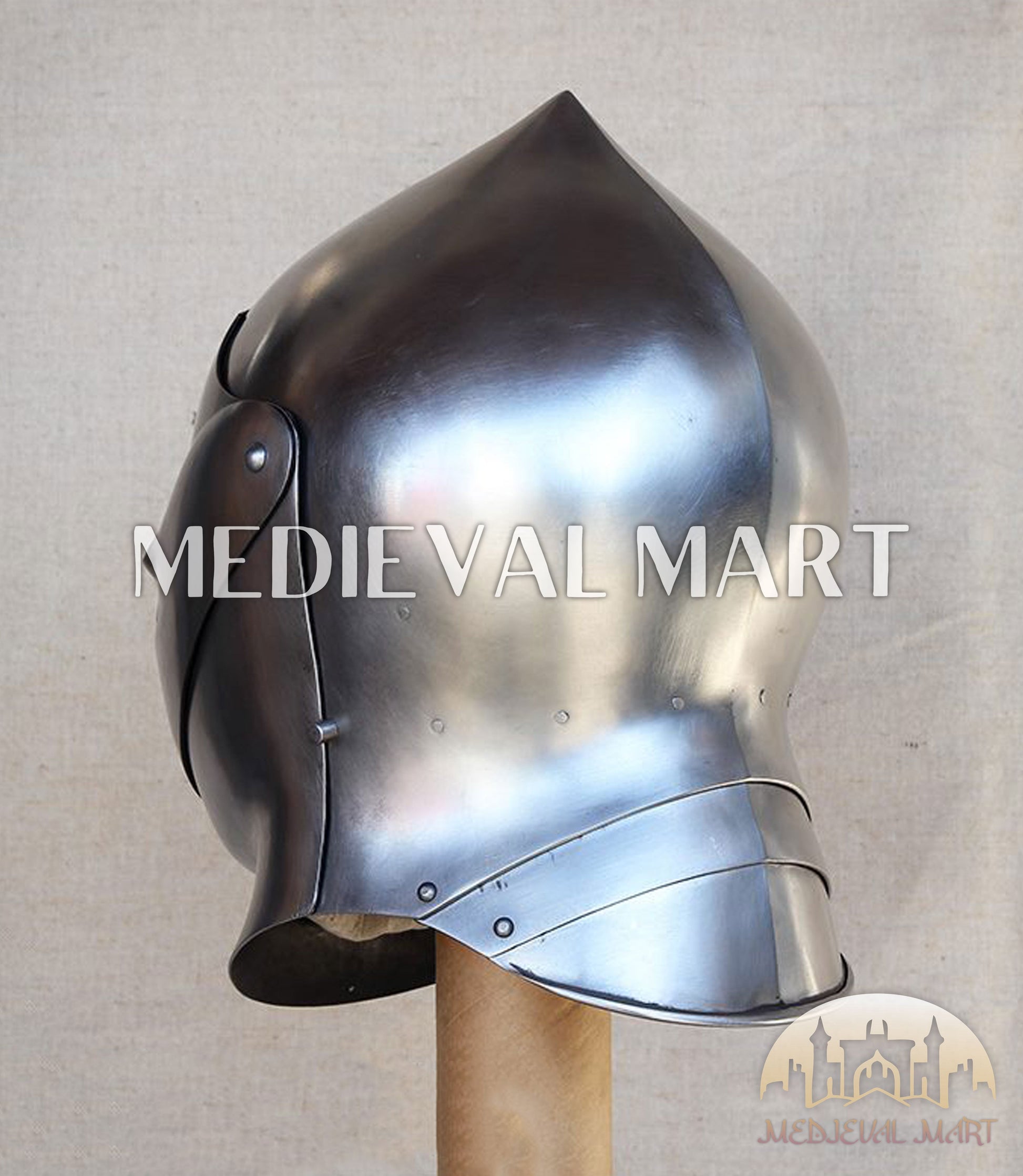 The MEDIEVALMART 15th-Century Gothic Sallet Helmet, crafted in tribute to the fearless Christian knights of Europe. Designed with historical accuracy and battlefield functionality, this helmet embodies the Gothic era’s iconic aesthetics — featuring a graceful slope, extended neck protection, and a partially open face for improved visibility and agility.