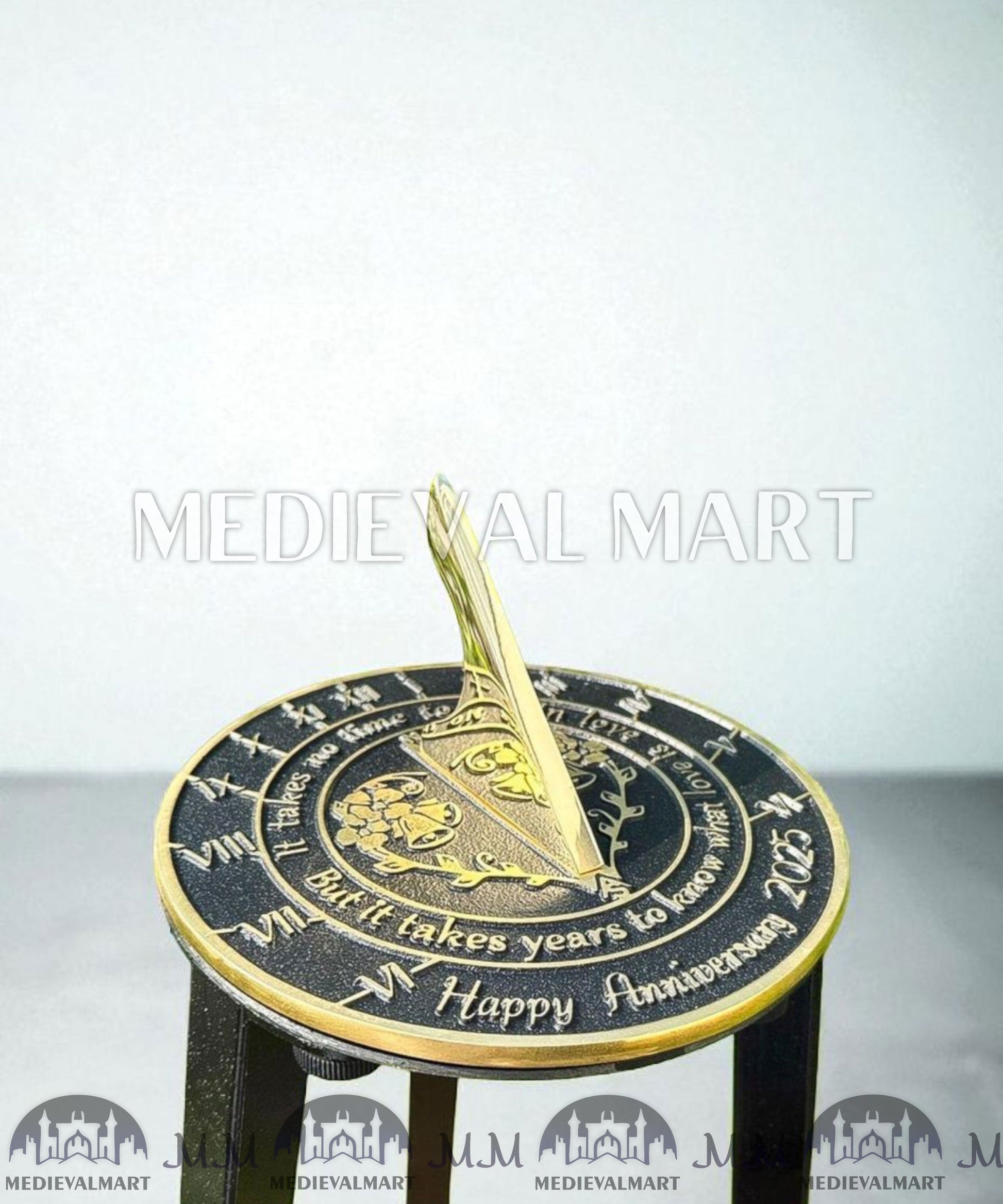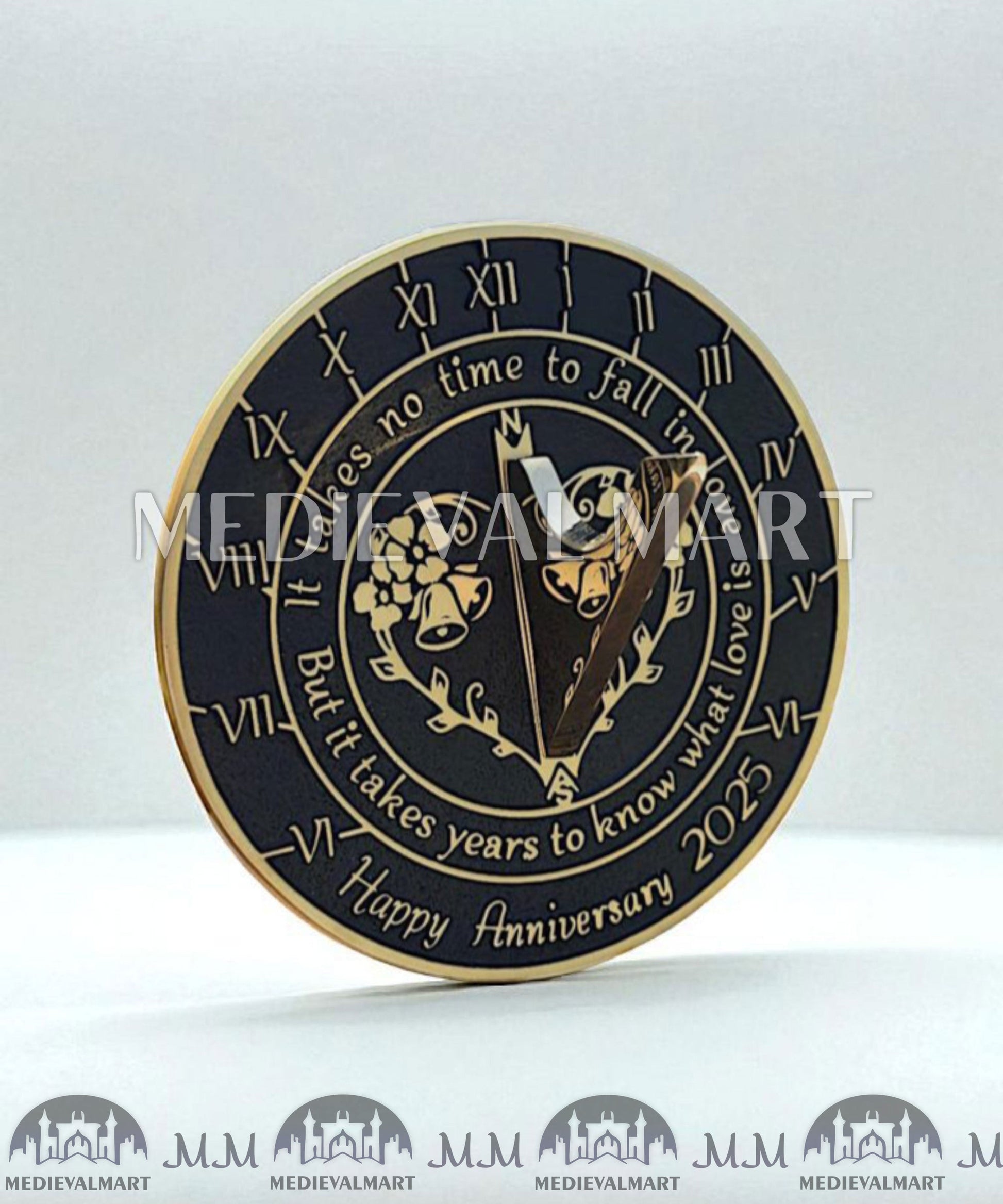 Celebrate the magic of love and togetherness with the MEDIEVALMART "Fall In Love" Happy Anniversary Sundial Clock. Designed with timeless elegance, this exquisite sundial clock is a heartfelt way to honor the beauty of shared moments and the joy of celebrating another anniversary day. Its meaningful message, “Fall In Love,” reminds us that true love is not just about the years spent together but about falling in love with each other again and again.
