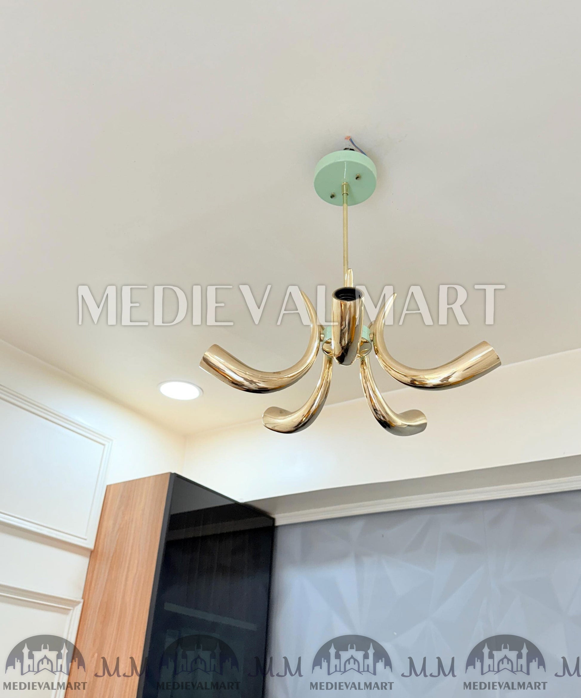 Bring timeless elegance and modern artistry to your home with the MEDIEVALMART Handmade Brass 5-Arm Chandelier. Inspired by classic Mid-Century Modern design, this fixture blends geometric balance and warm brass tones to create a perfect centerpiece for any interior.