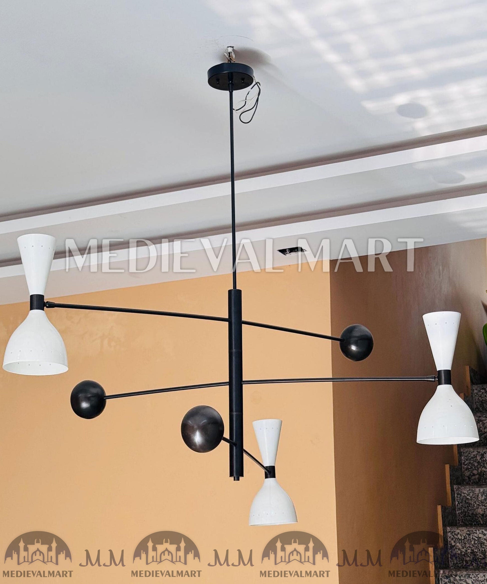 The adjustable arms allow for personalized positioning, creating a balanced and dynamic silhouette suited for any space — from refined dining areas to contemporary living rooms. Its geometric symmetry and polished finish evoke the sophisticated charm of the 1950s Italian Stilnovo era.