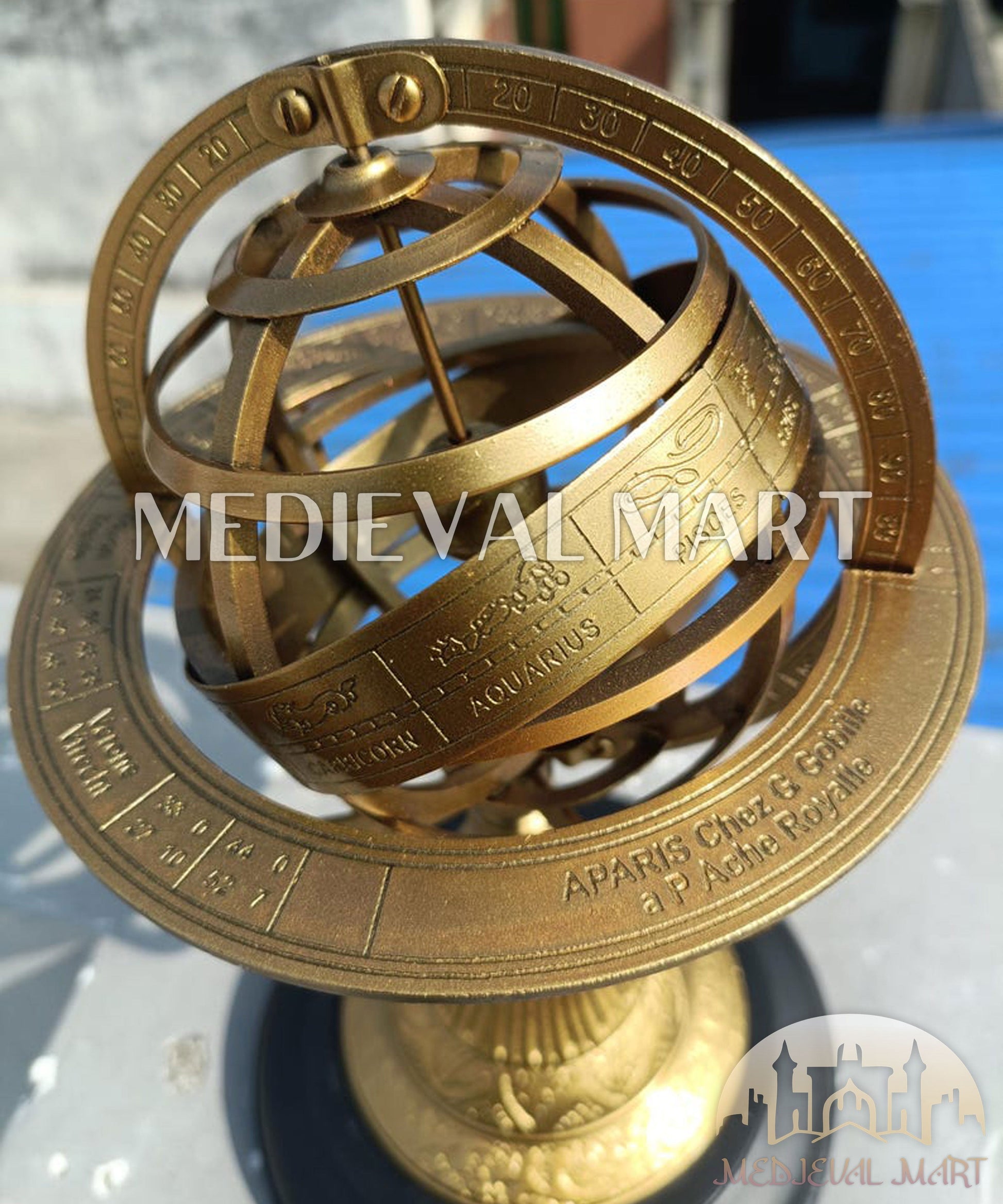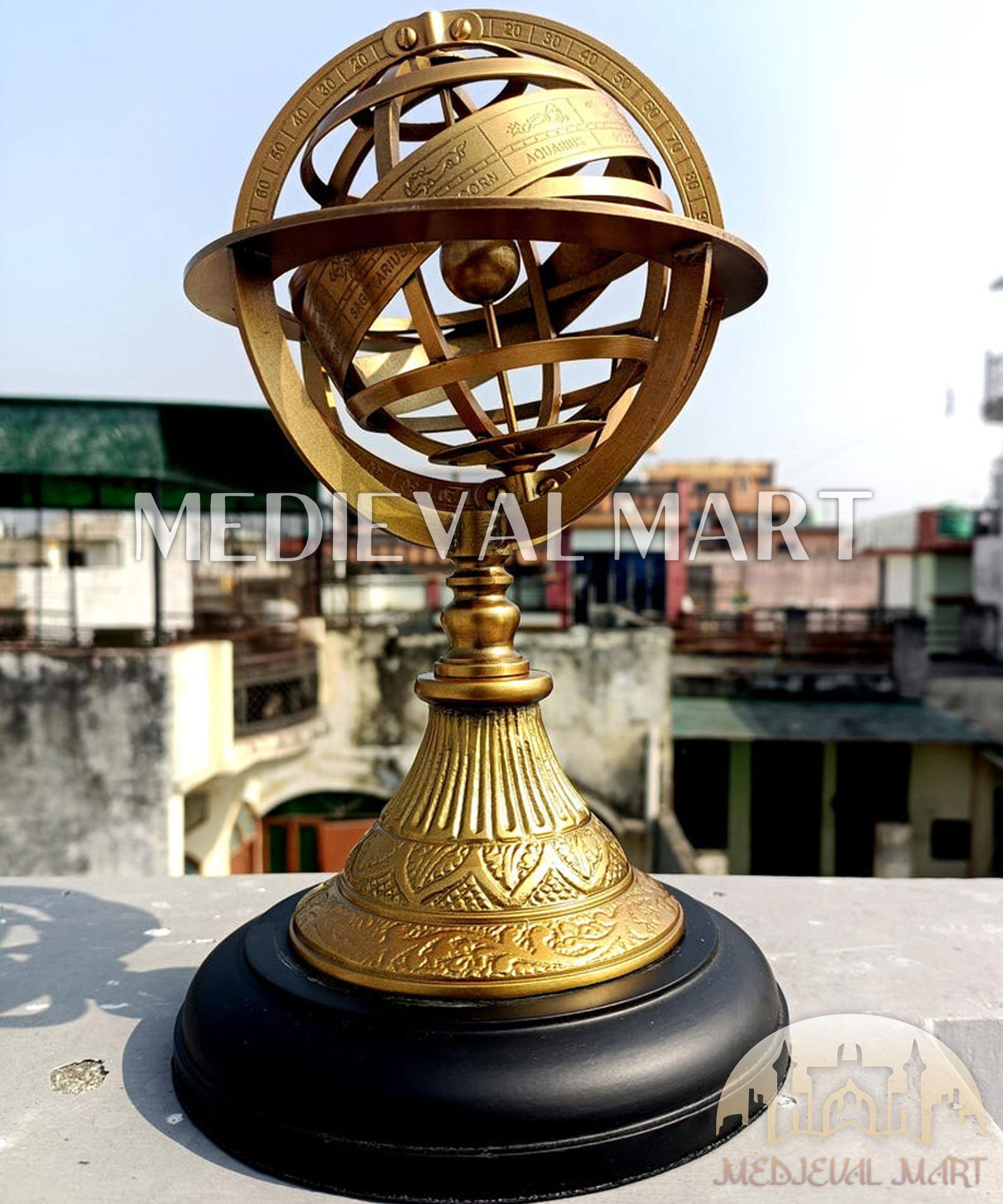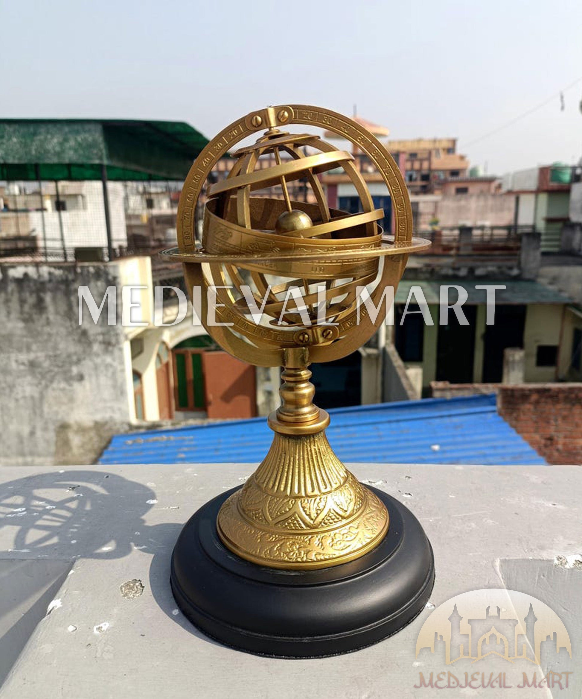 Bring the mysteries of the cosmos into your space with this beautifully crafted Mini Brass Armillary Sphere. Inspired by ancient astronomical instruments, this decorative piece features intricate zodiac engravings and interlocking rings that symbolize the celestial equator, tropics, and ecliptic path of the sun.