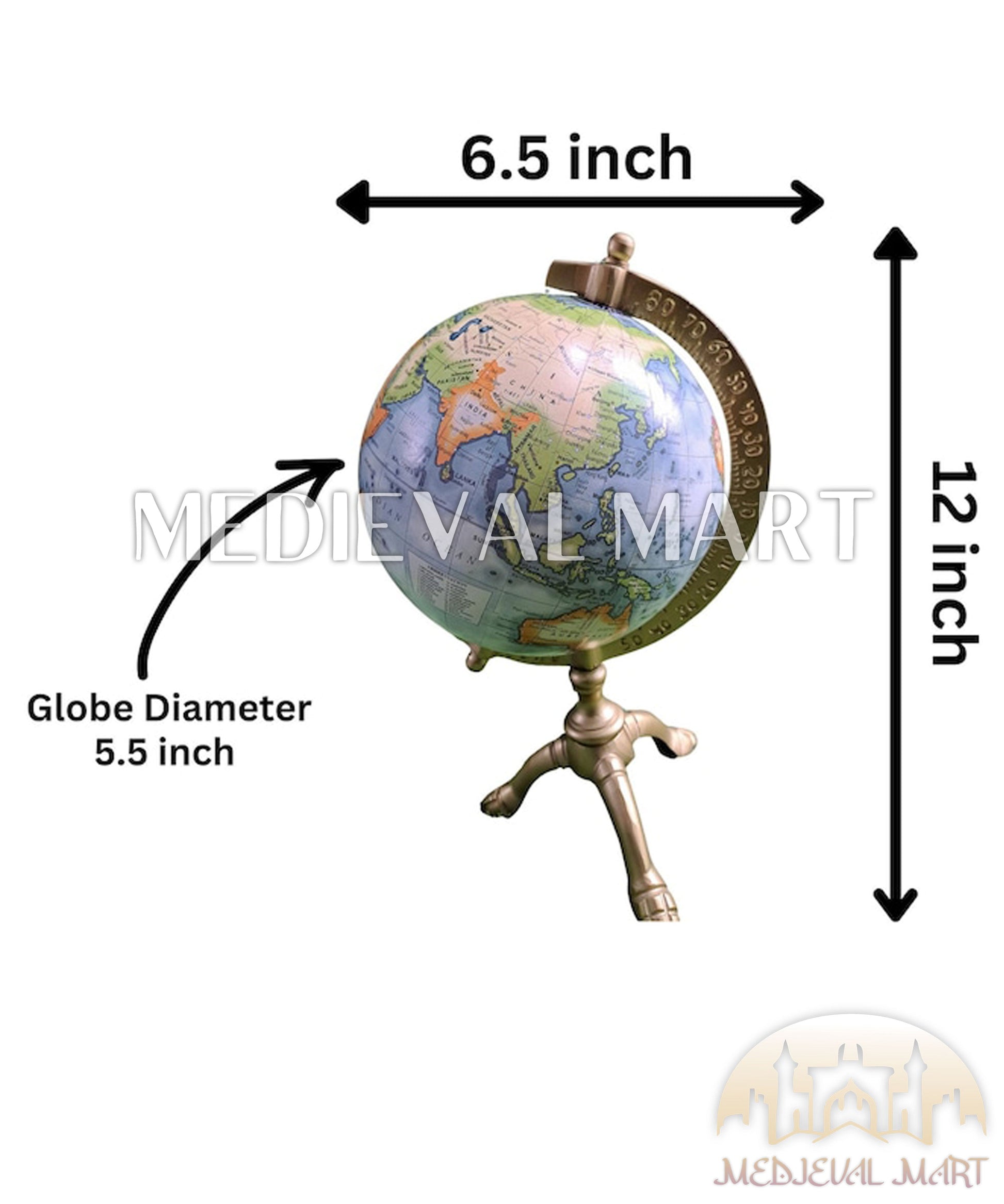 Step into the world of The Crafted Delight with this brand-new desk globe. The globe's design features hand-applied map gores, offering a meticulously detailed and authentic antique map finish that will capture the imagination of any history enthusiast or decorative connoisseur. This globe is an excellent gift for teachers, history buffs, or anyone who appreciates the intricate beauty of world geography displayed in classic style. It's a timeless piece that combines functionality with a storied aesthetic, sure to be treasured for years to come.