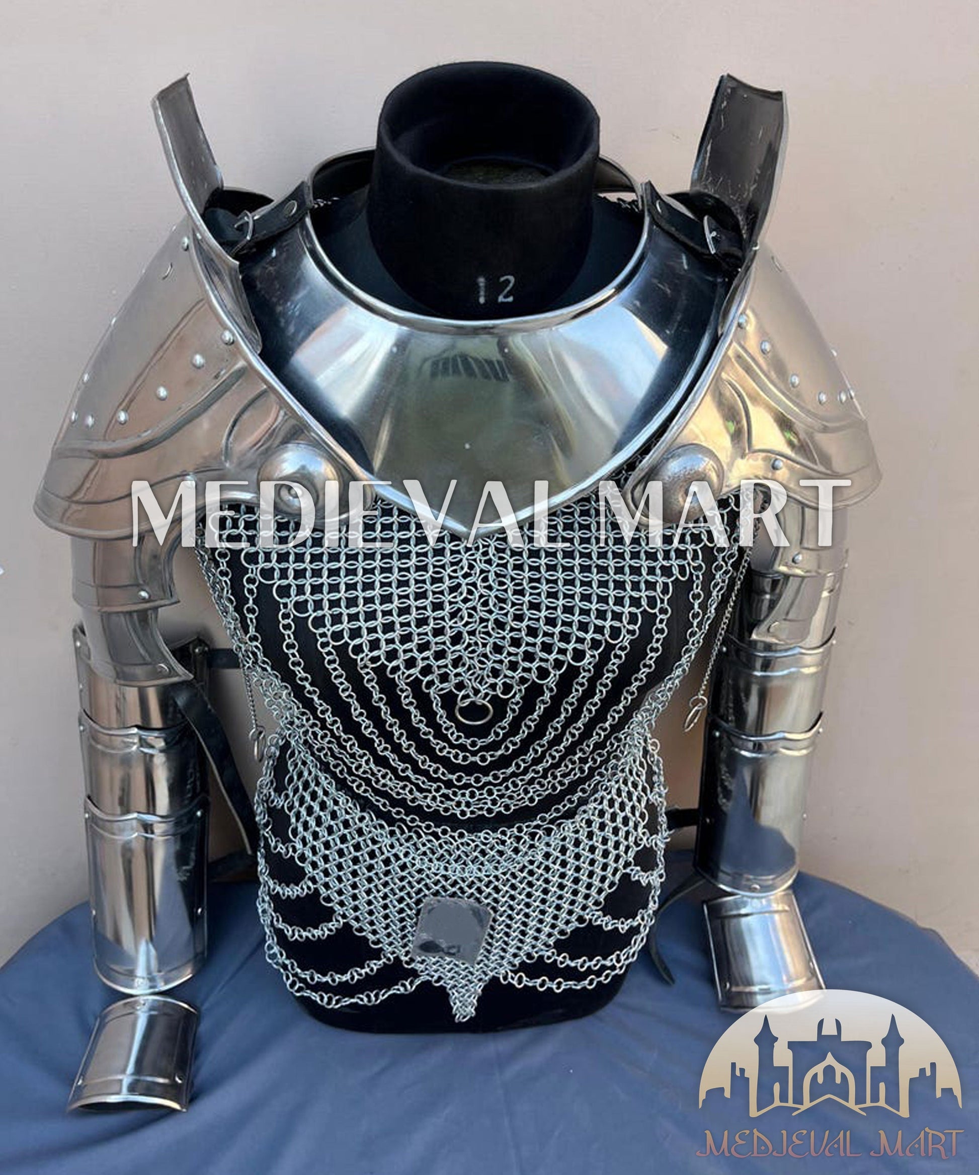 The MedievalMart (Isolara Dragonplate) Women’s Armor with (Moonfire) Chainmail + Arms Armor W/H Skirt is a stunning fusion of strength and elegance. This handcrafted armor set features durable Dragonplate plating, offering superior protection while maintaining a sleek and regal design. The Moonfire chainmail ensures flexibility and comfort, making it ideal for battle or display. The reinforced arms armor enhances defense, while the flowing skirt adds a touch of nobility. Whether for LARP, cosplay, medieval reenactments, or collectors, this armor set embodies the fearless spirit of a warrior queen, blending historical authenticity with fantasy aesthetics.