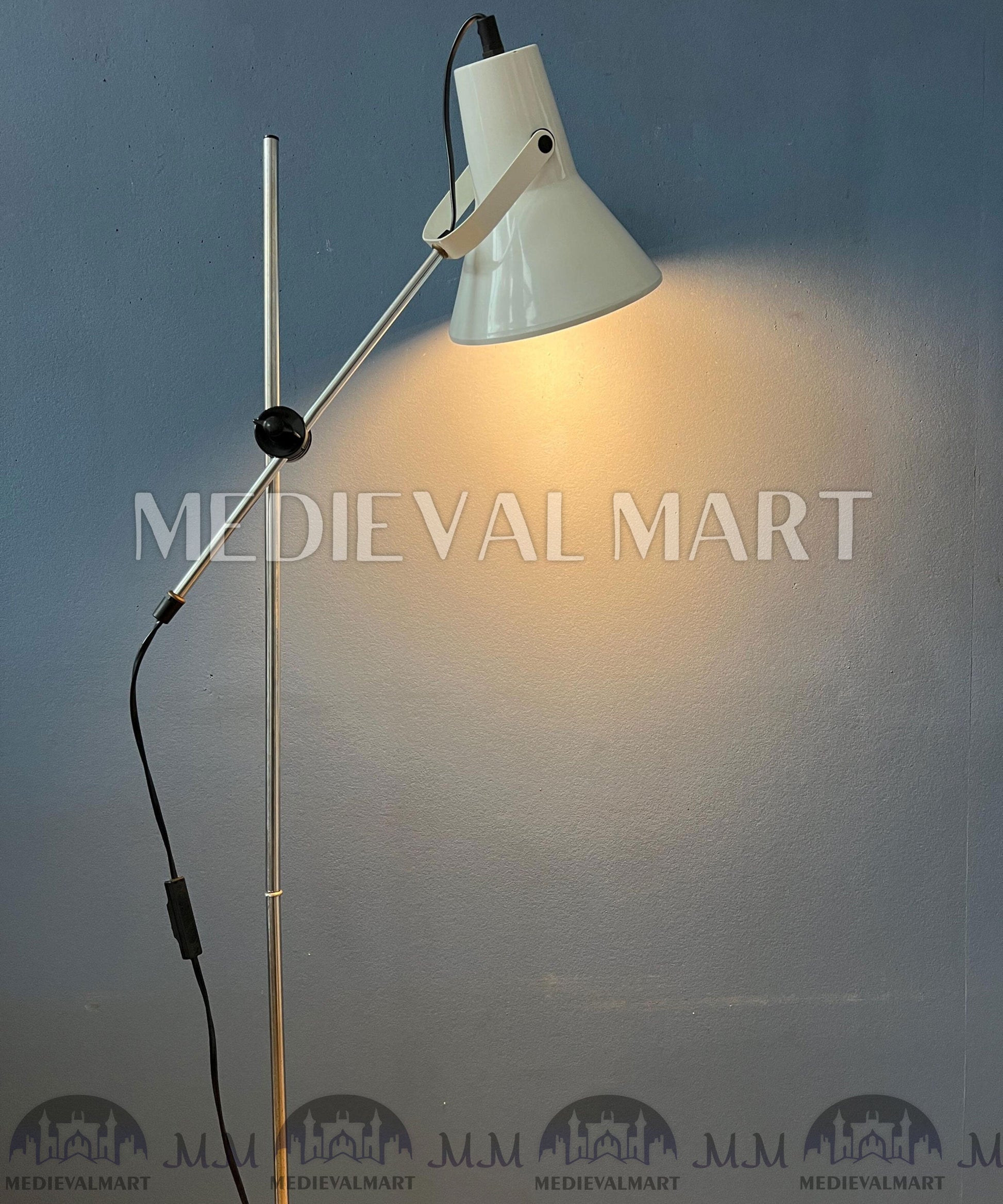 Bring effortless elegance to your home with the MEDIEVALMART Italian Small Vintage White Flexible Floor Lamp, a charming example of mid-century Italian craftsmanship. Featuring a flexible gooseneck design with a sleek white enamel shade, this lamp allows you to adjust the direction of light with ease—perfect for reading corners, desks, or bedside spaces.