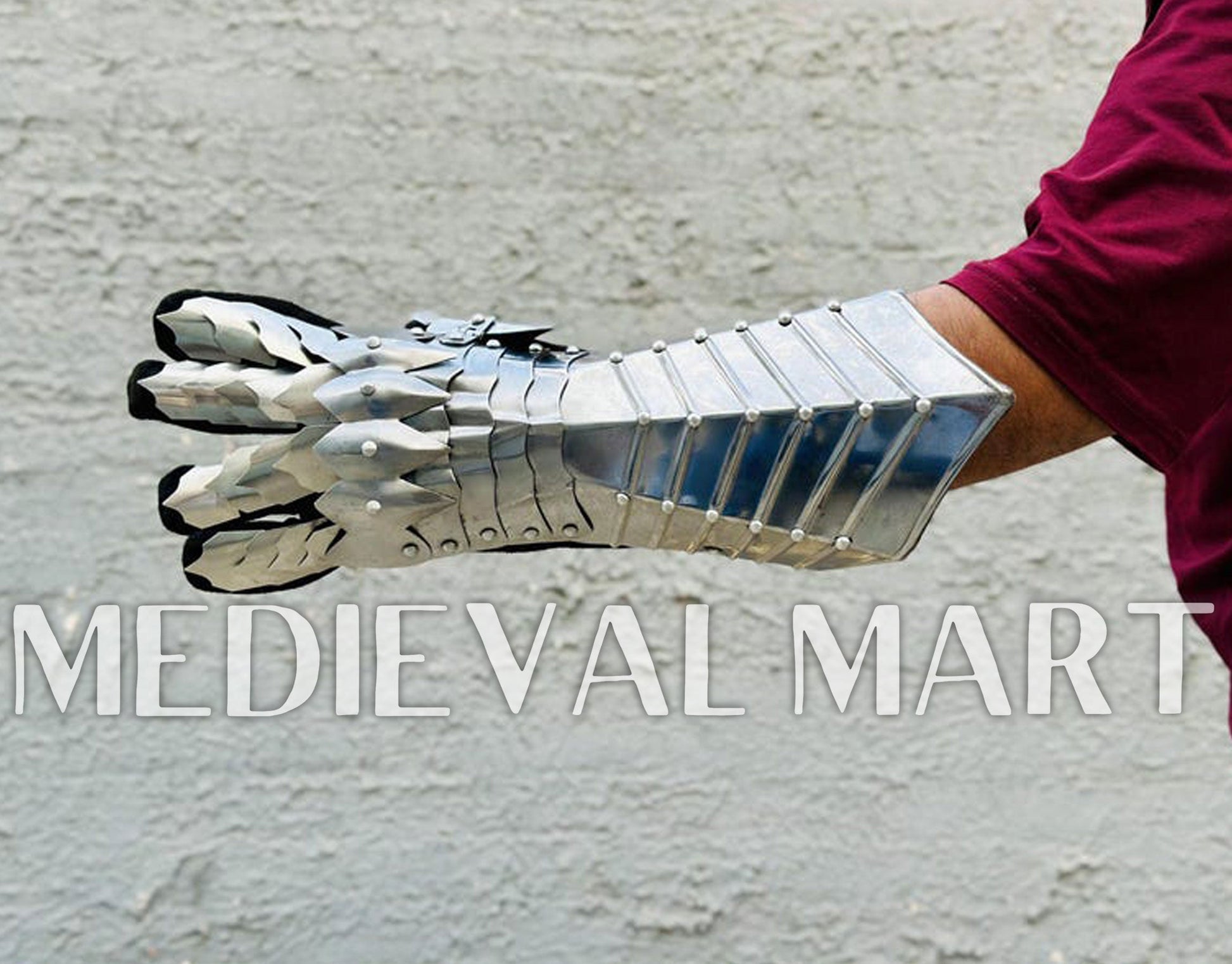Unleash the dark and mysterious aura of the Medieval Nazgul Silver Gloves Set Knight Gothic Gauntlet from Medieval Mart. Crafted with high-quality steel and finished with an elegant silver sheen, these gauntlets embody the fearsome presence of the legendary Nazgul. Designed for both protection and aesthetics, they feature intricate gothic detailing, making them perfect for reenactments, cosplay, or collectors. The articulated plates ensure flexibility and comfort, allowing smooth hand movements in battle or display. Whether you're channeling a dark knight or a mythical wraith, these gauntlets will complete your medieval ensemble with unmatched authenticity. Own the legend with Medieval Mart!