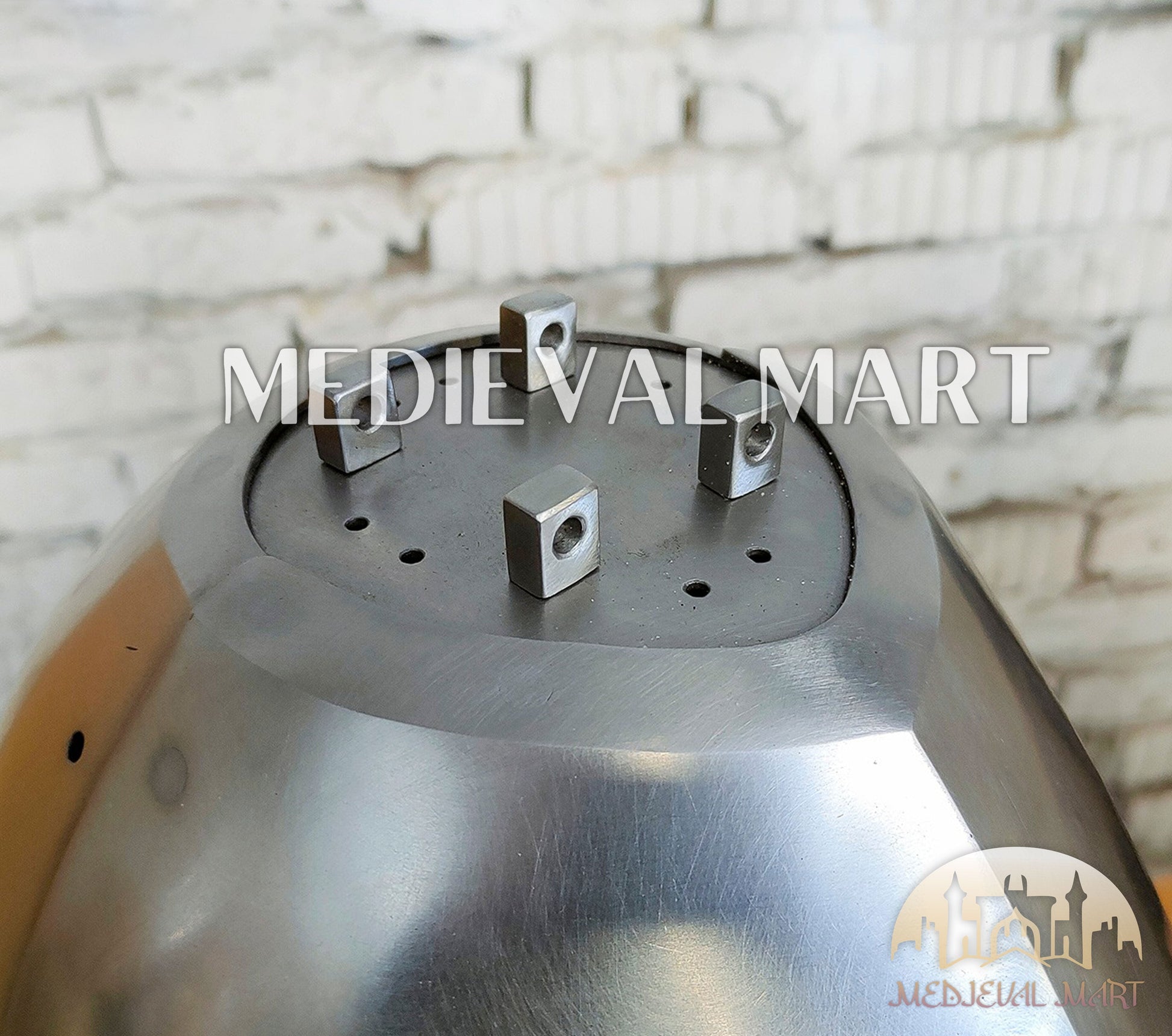 Step into the saga of chivalry and honor with the MEDIEVALMART Great Nicholas "Hawberk" Helmet — a crown forged for the fearless defenders of Christendom. This majestic helmet is a tribute to Saint Nicholas of Myra, protector of warriors and seafarers, now reborn in full medieval might.