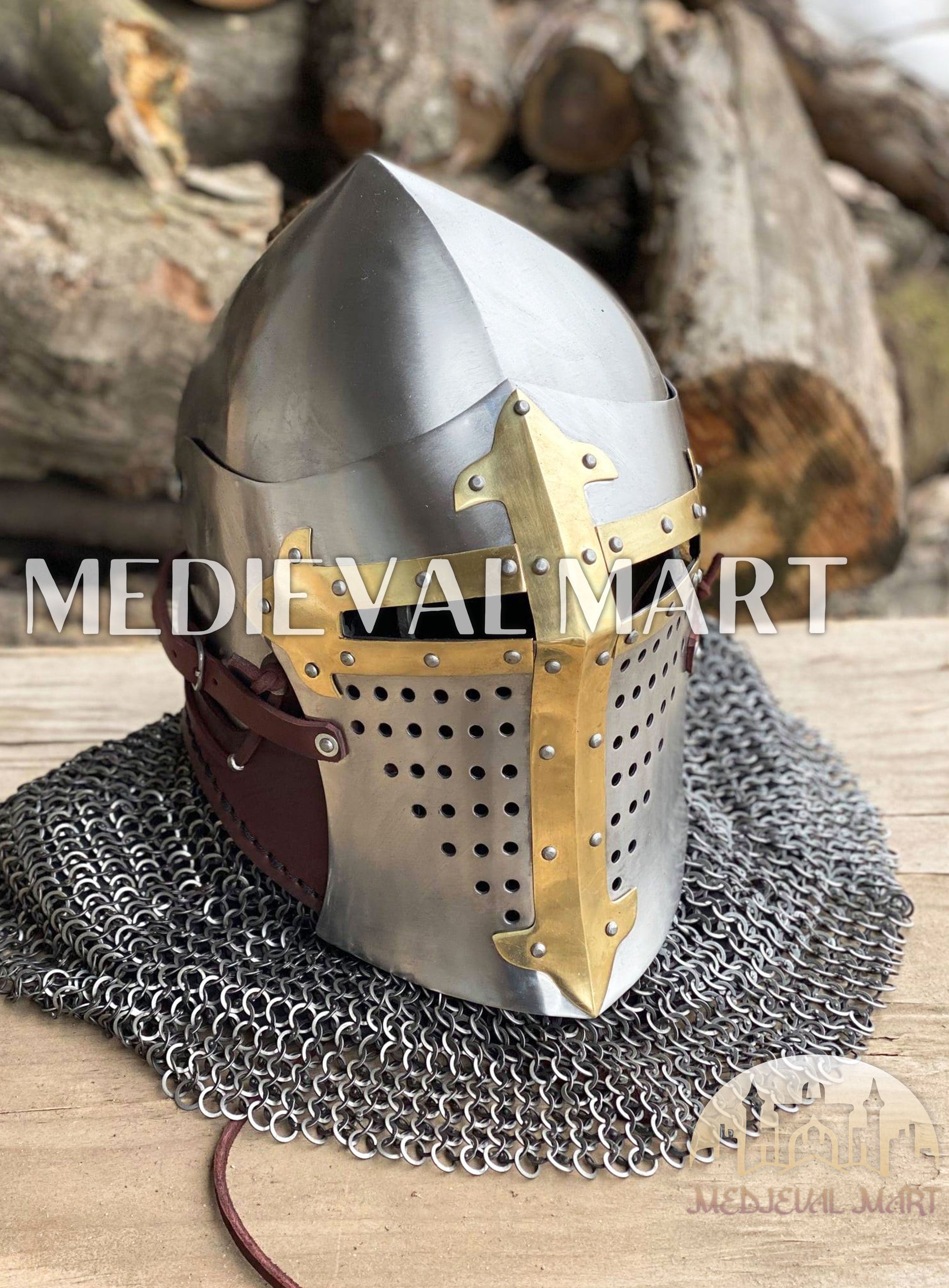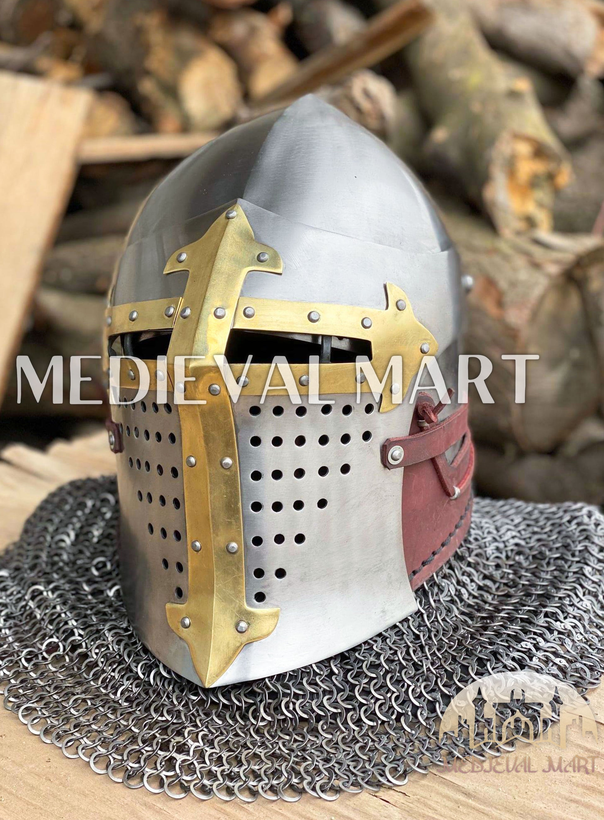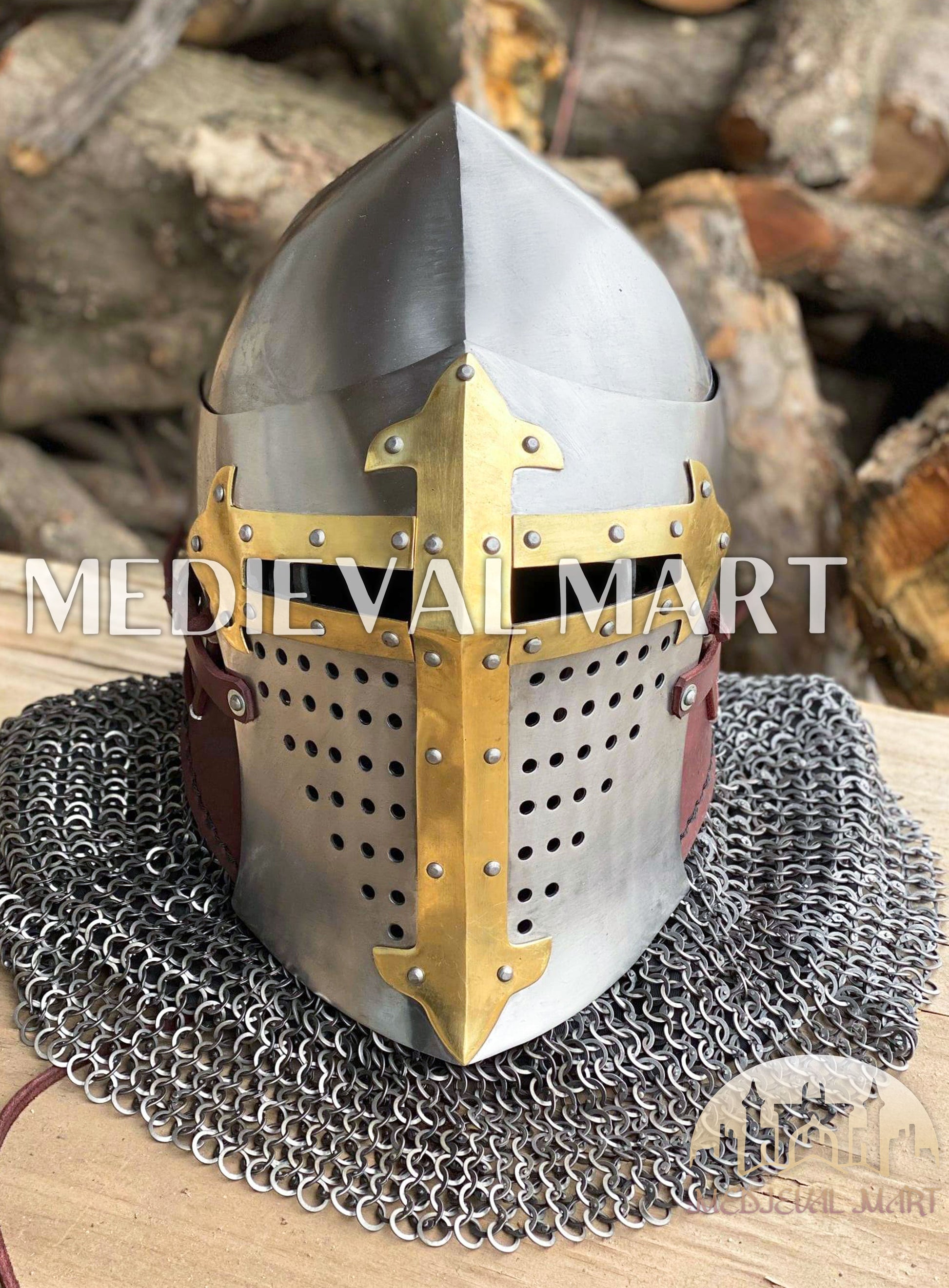 Command the battlefield like a true noble knight with the MEDIEVALMART ROA Buhurt Helmet — a masterpiece forged for warriors who fight with honor and wear their legend in gold. Inspired by royal orders and ancient European brotherhoods, this helmet radiates medieval prestige and combat strength, crafted for those who compete in Buhurt with valor and style.