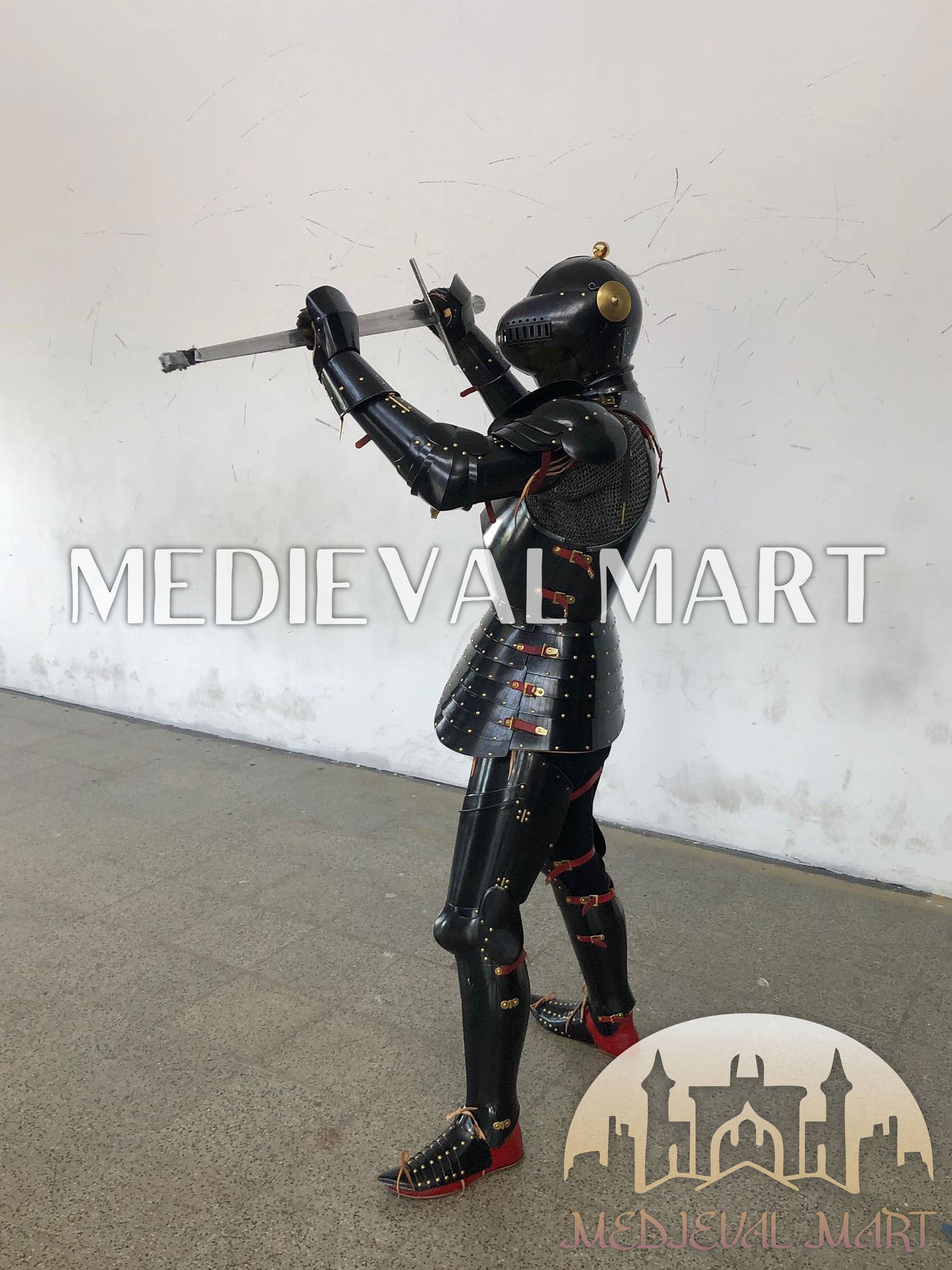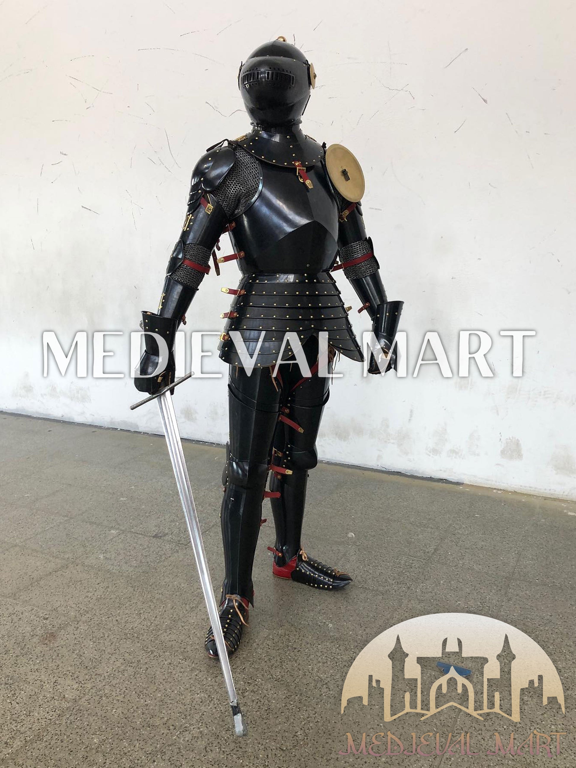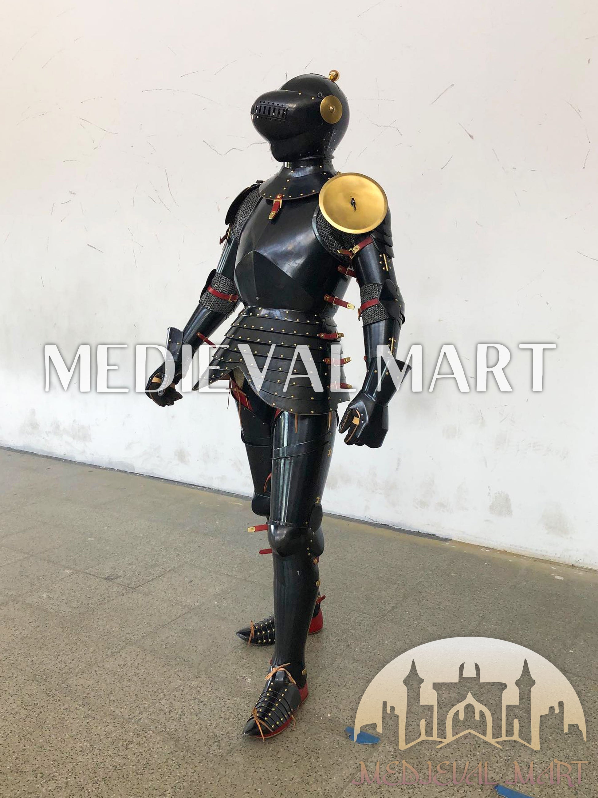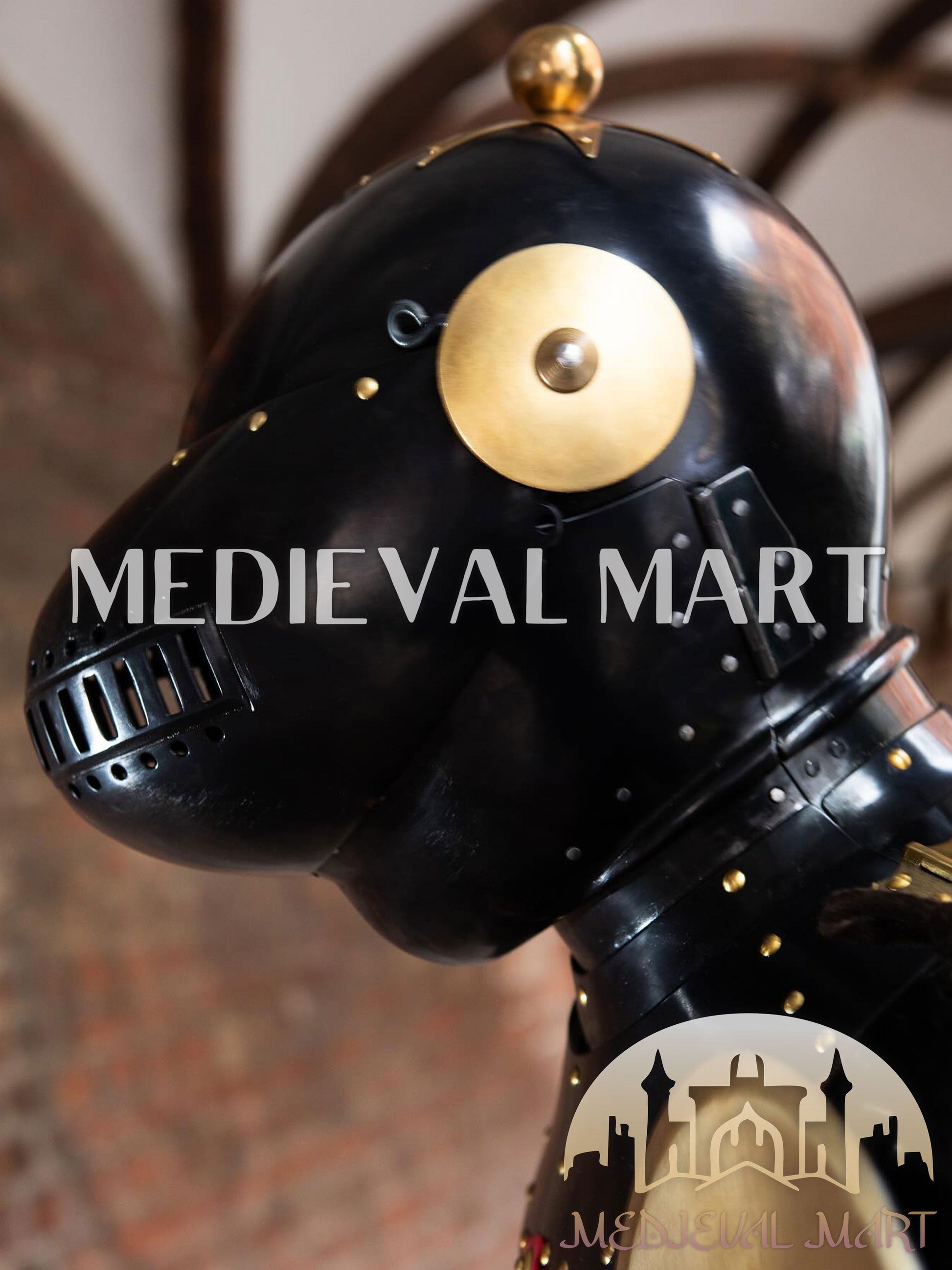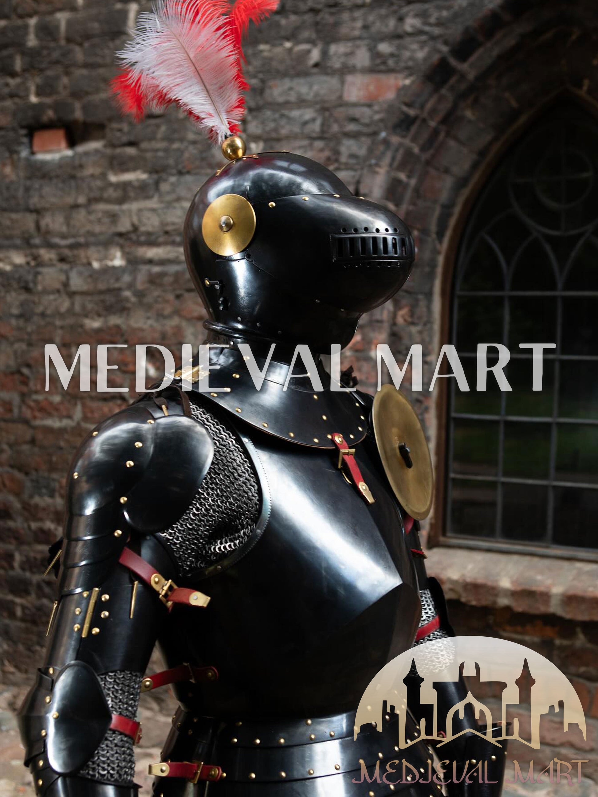 This full armor costume is more than just a medieval display — it’s a statement of power, discipline, and timeless craftsmanship. Designed to reflect the noble aesthetics of both ancient Hellenistic warriors and late medieval European knights, this suit blends historical imagination with authentic armor detail.