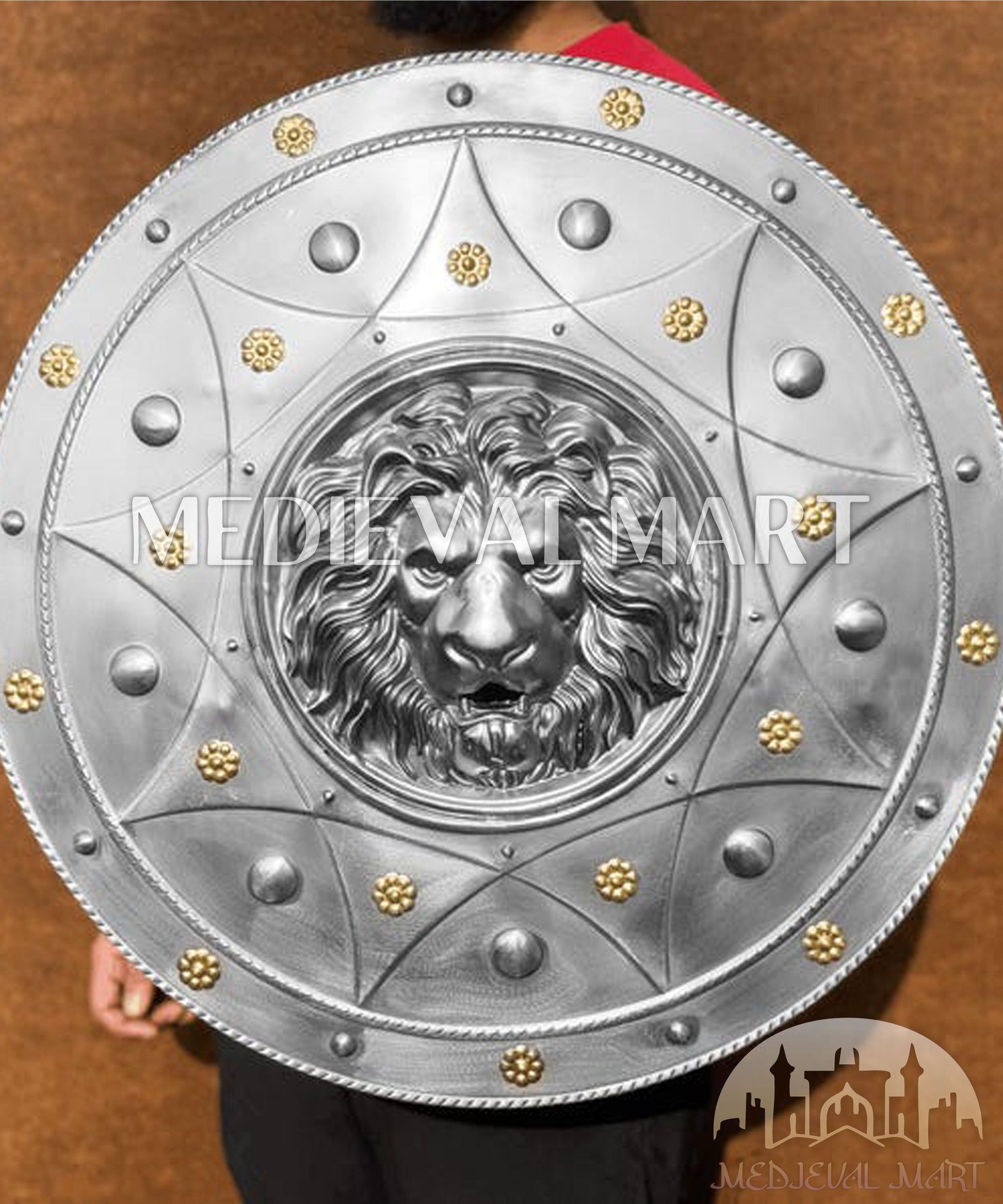 Roar into history with MEDIEVALMART’s Medieval Lion Face Spartan Shield, available in both bold brown and striking silver finishes. Inspired by ancient warriors, this shield blends fierce design with classic craftsmanship — ideal for cosplay, décor, or gifting.