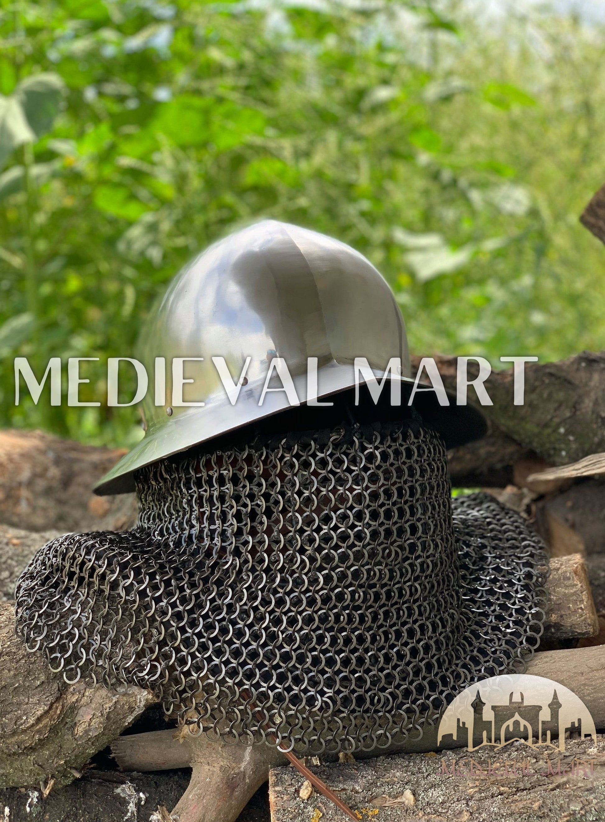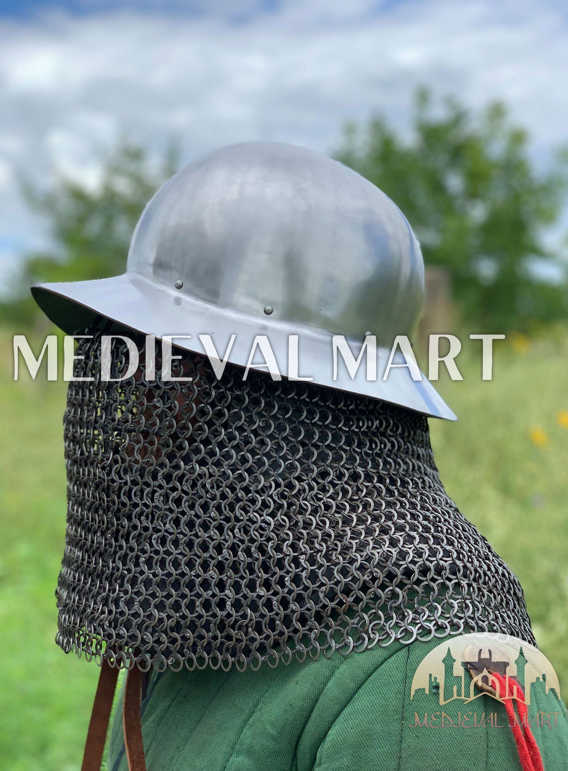 Stand tall like the infantrymen of old with the MEDIEVALMART Celleta Kettle Helmet, a rugged icon of medieval warfare reborn for the modern warrior. Forged for men of steel and spirit, this battle helm combines the wide-rimmed defense of the kettle style with the fierce protection of draping chainmail — shielding head and neck from both blade and flame.