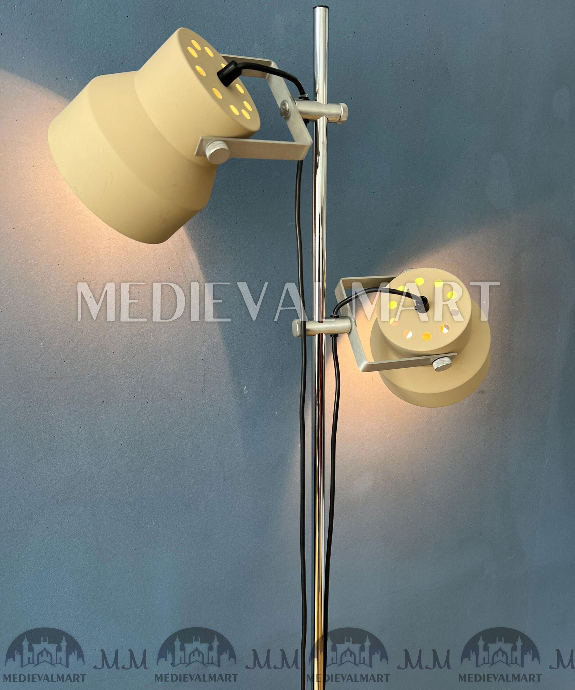 Bring timeless retro charm to your home with the MEDIEVALMART Mid Century Italian Beige Dijkstra Space Age Floor Lamp. This elegant piece reflects the iconic 1970s Dijkstra design, featuring a sleek beige dome shade and a sculptural metal base that embodies the futuristic Space Age aesthetic.