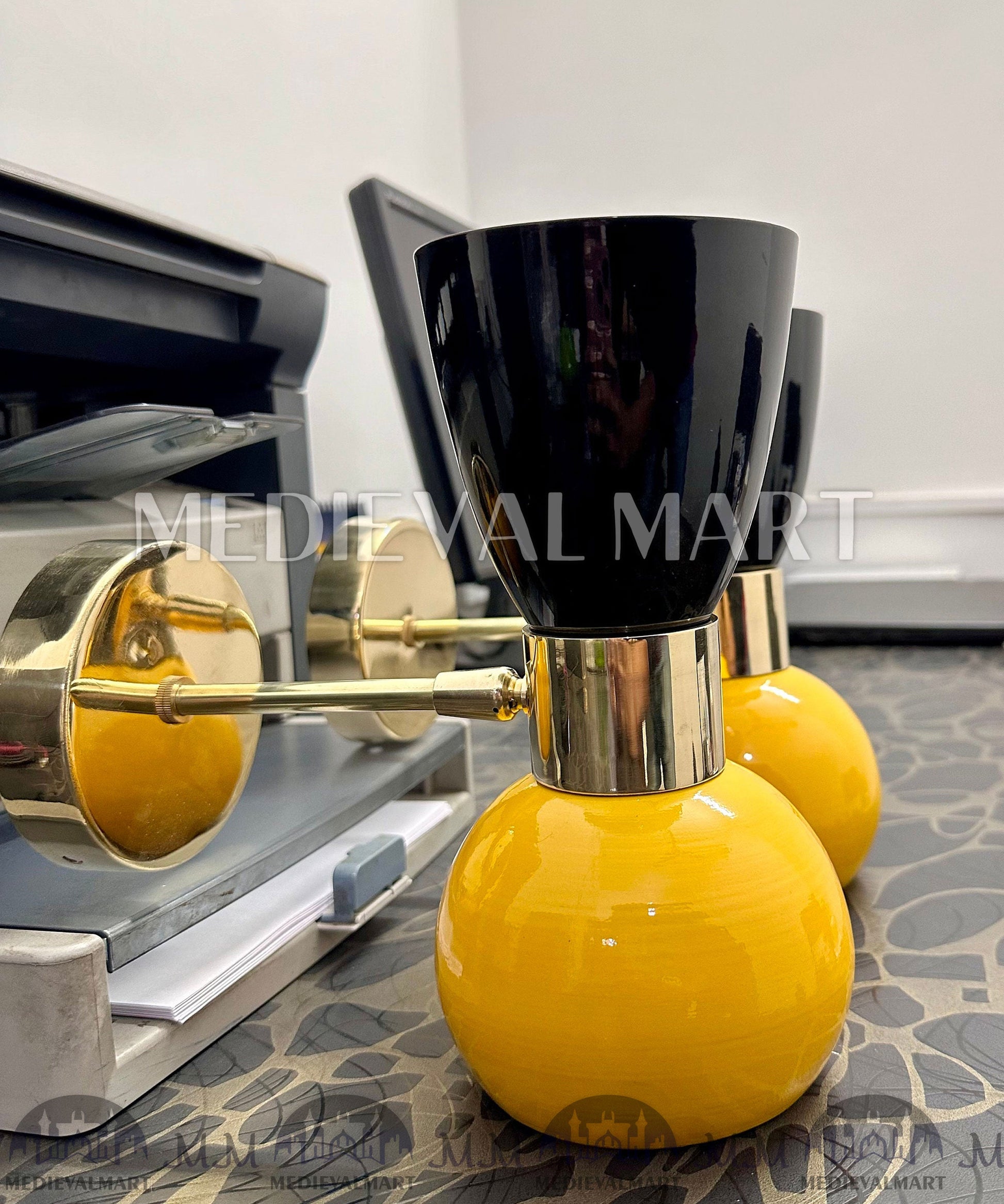 Add timeless elegance to your interiors with the MEDIEVALMART Mid Century Modern Brass Diabolo Wall Lamp.