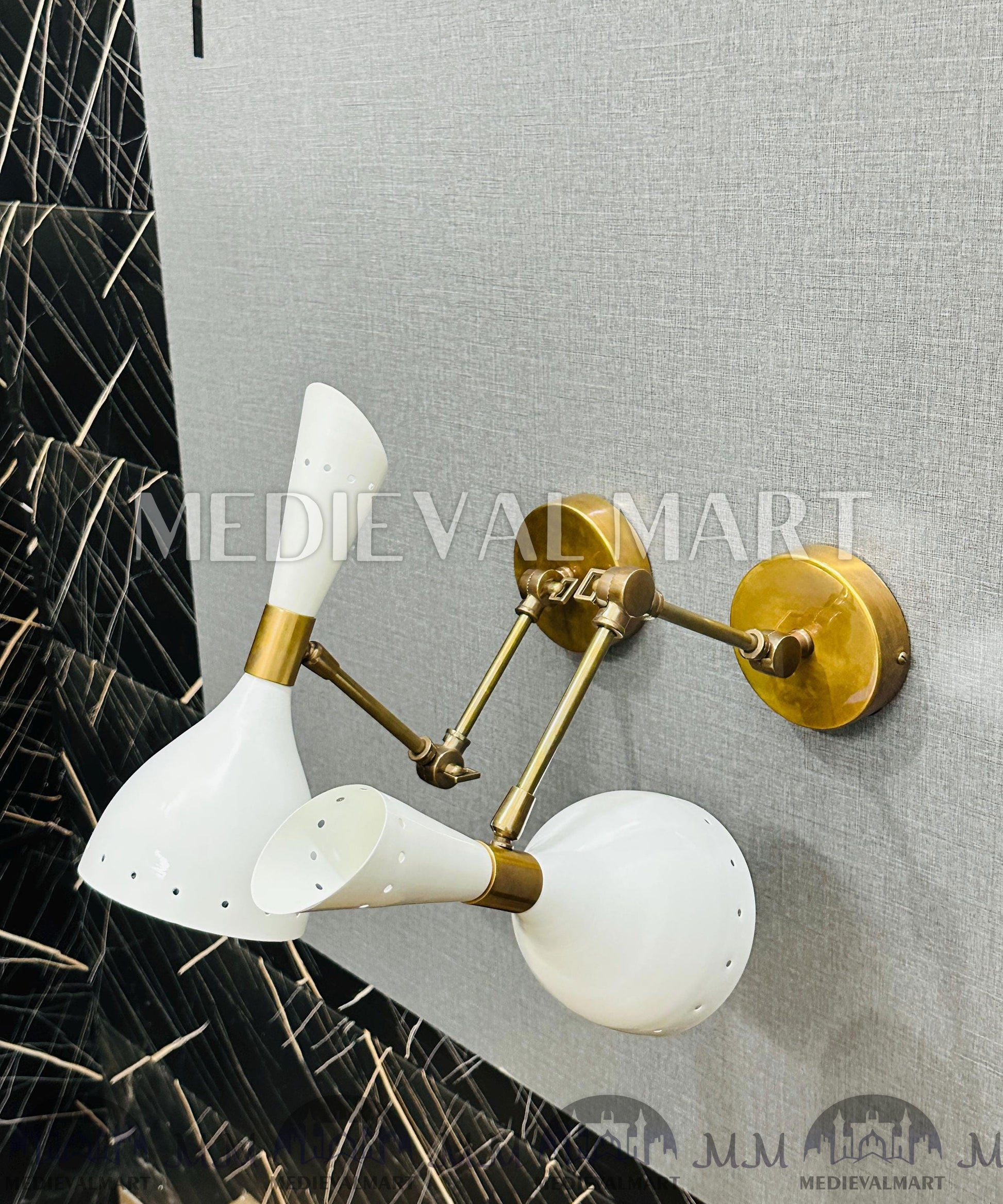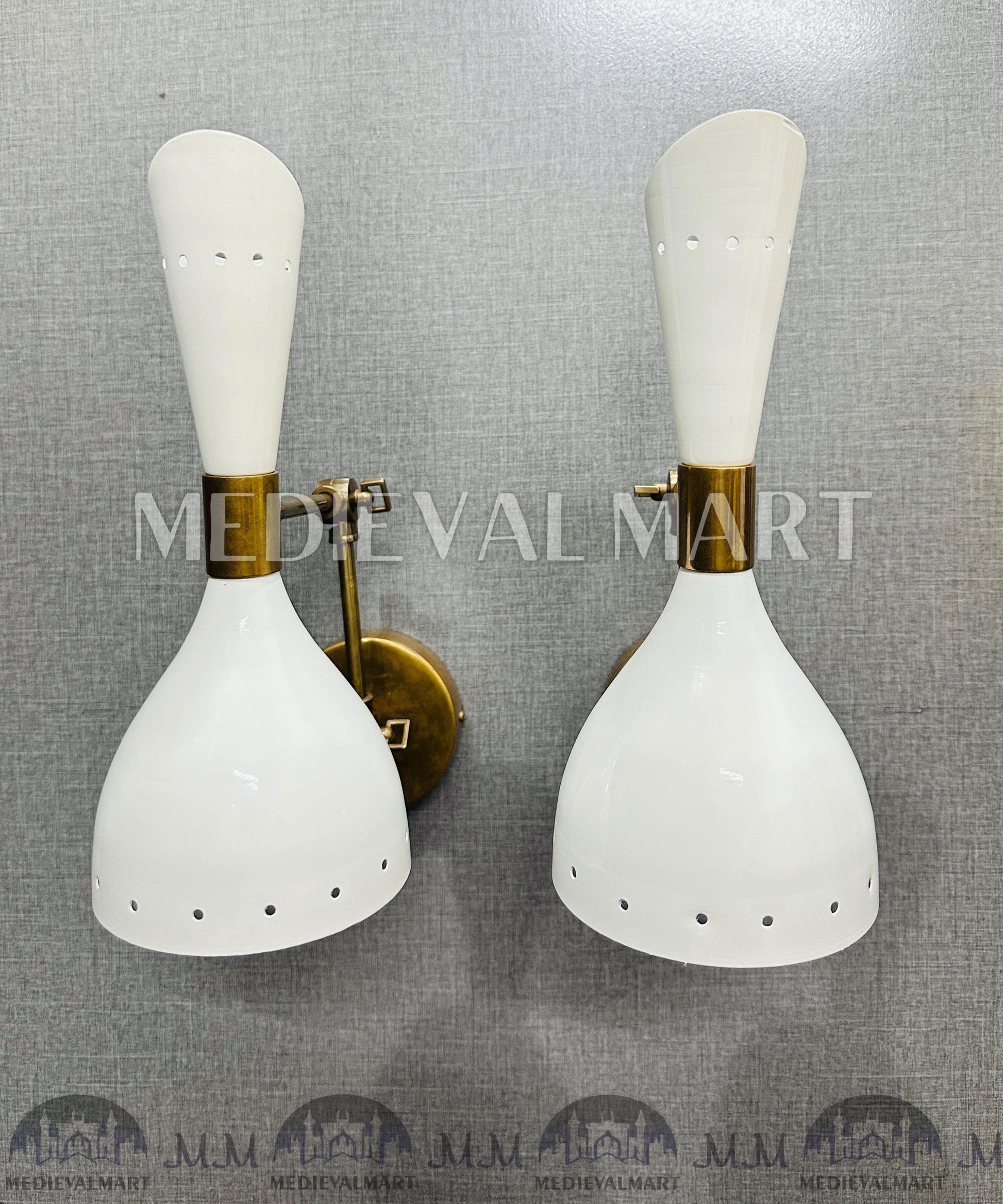 Add sophistication and practicality to your interiors with the MedievalMart Mid Century Italian Stilnovo Wall Sconce Pair. Inspired by classic Stilnovo Italian design, these handcrafted brass sconces combine mid-century elegance with functional versatility.