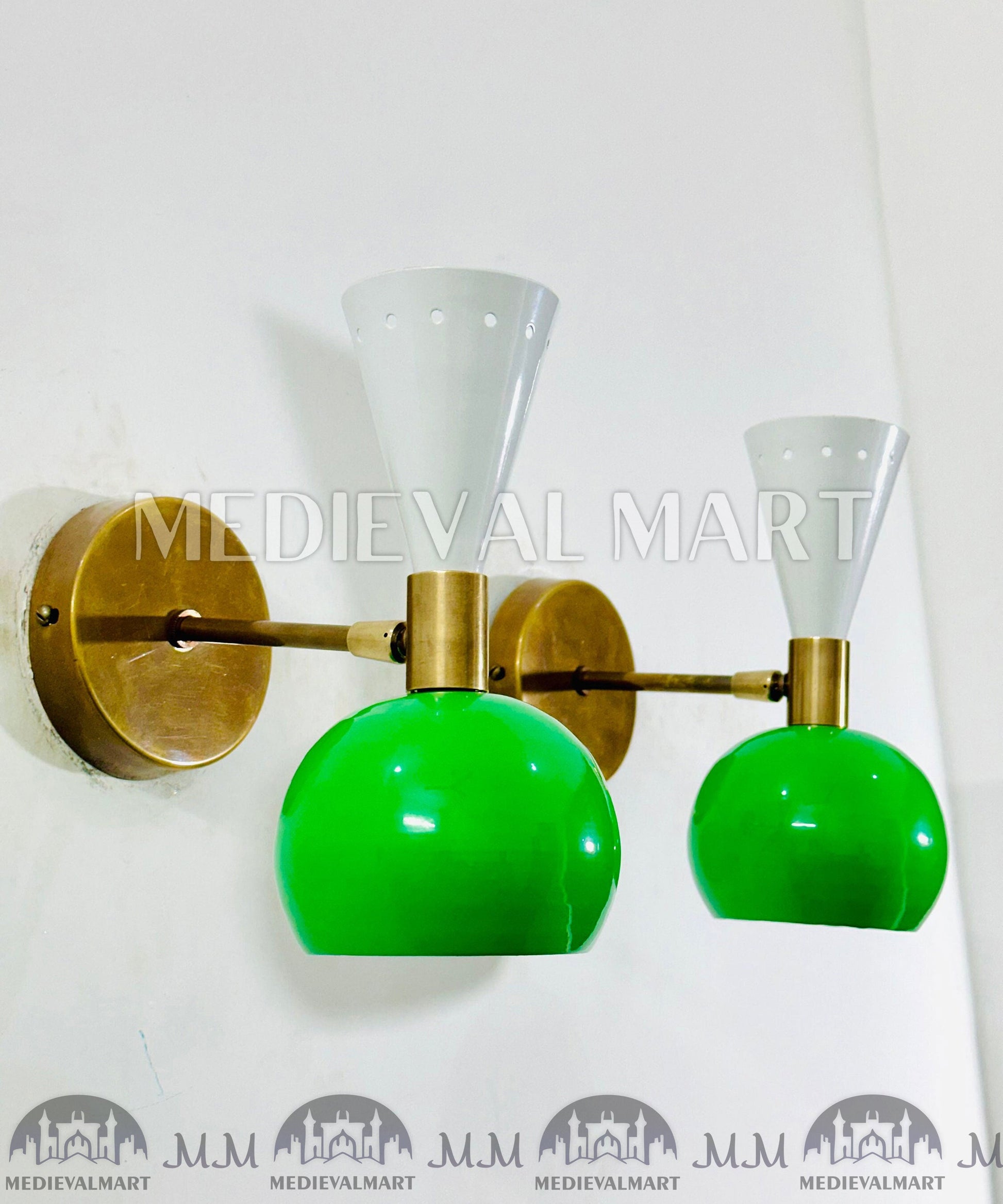 Illuminate your space with the MEDIEVALMART Mid Century Italian Wall Sconce, featuring the iconic Diabolo design in a stylish dual-tone brass finish. Handcrafted with precision, this wall light reflects MEDIEVALMART’s commitment to artisanal quality and mid-century elegance.