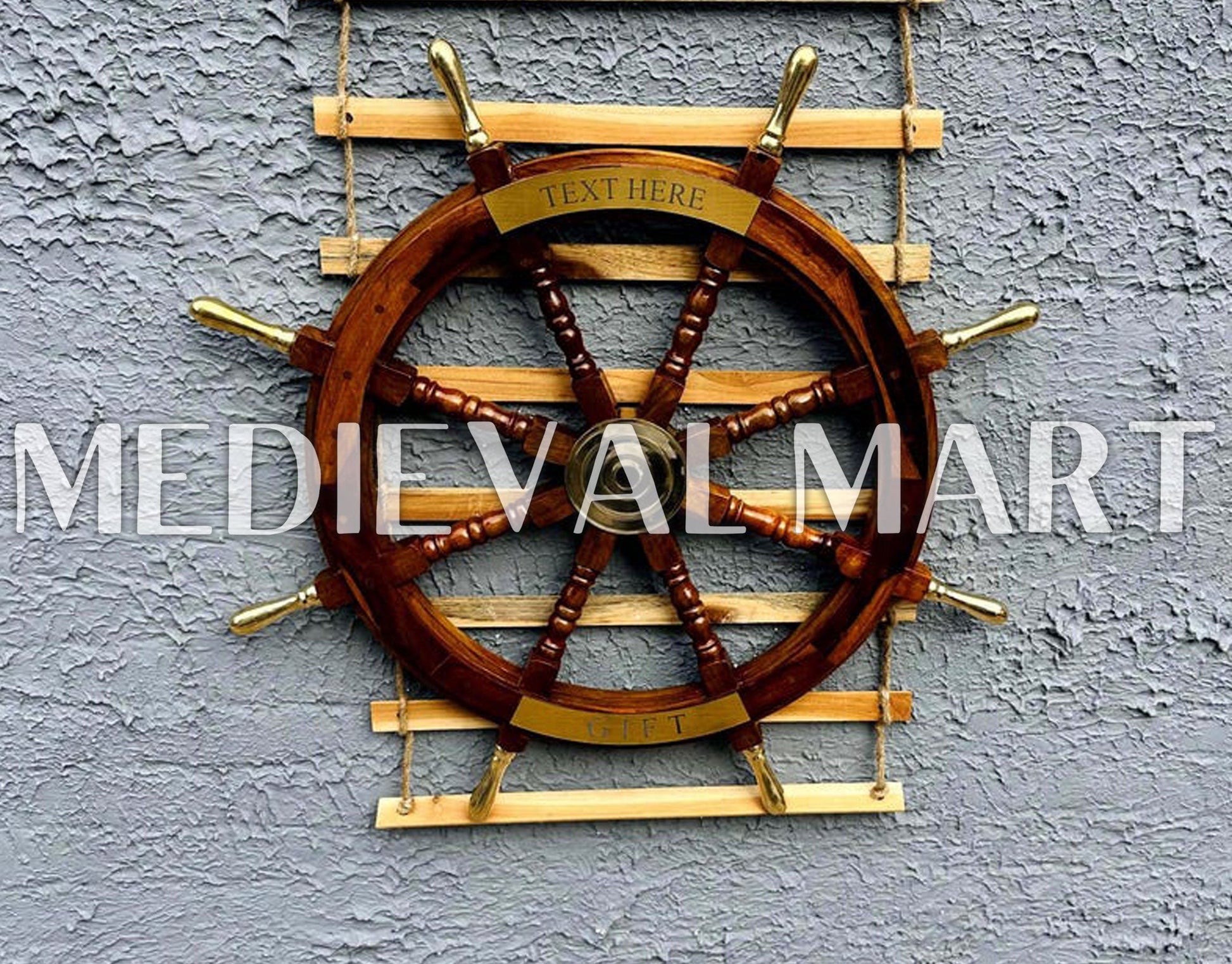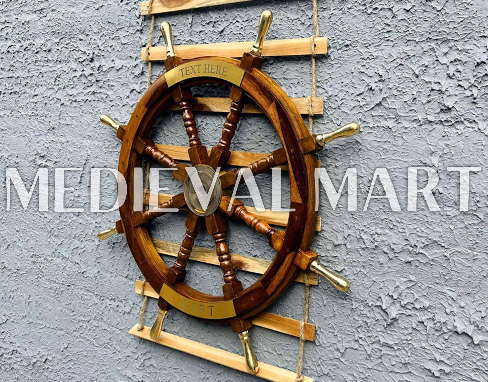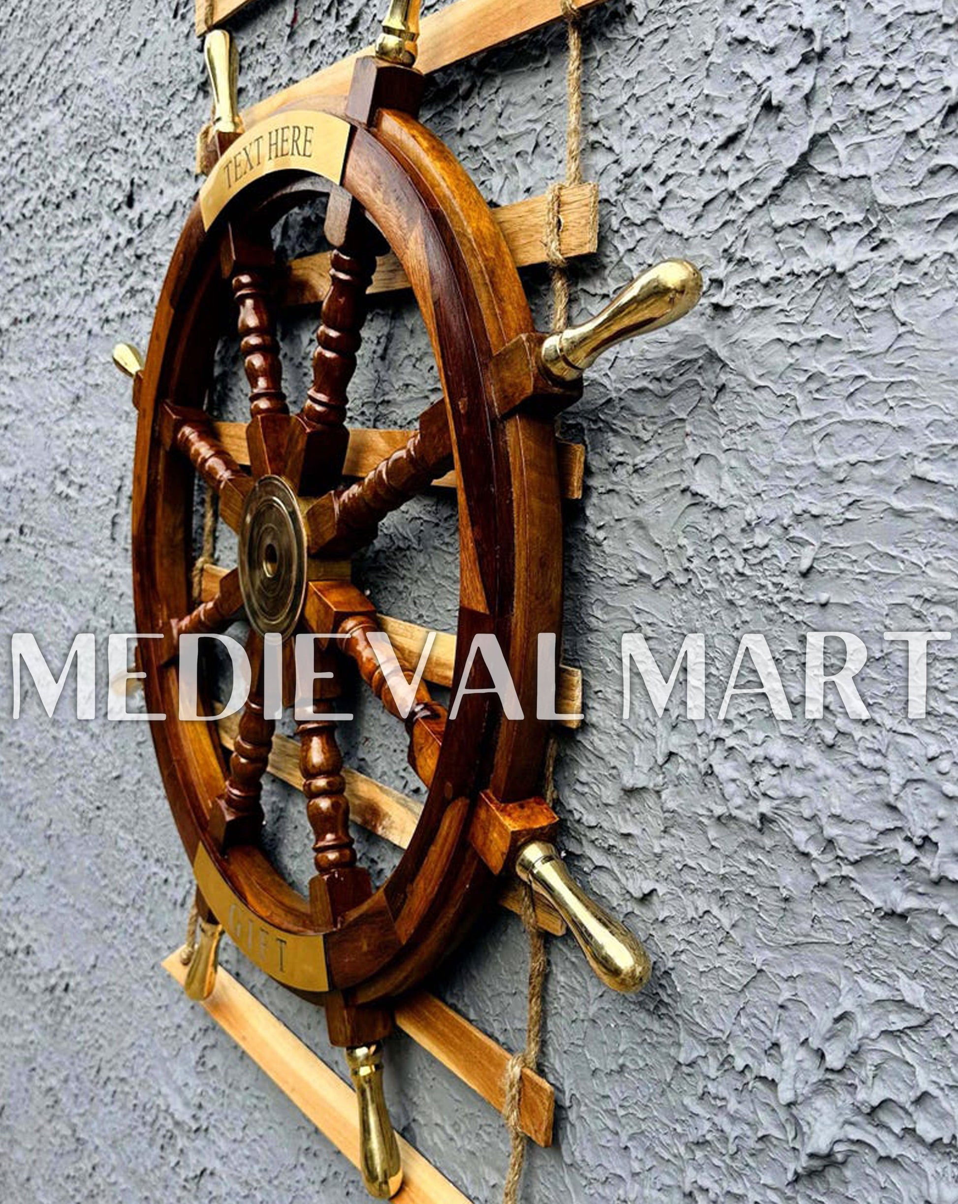 Add a touch of maritime elegance to your space with the Nautical Brass Decoration Ship Wheel – Brown Finish from Medieval Mart. Crafted from high-quality wood and adorned with polished brass accents, this ship wheel embodies the timeless charm of seafaring adventures. The rich brown finish enhances its classic appeal, making it a perfect décor piece for homes, offices, or boats. Designed for durability and authenticity, it features sturdy spokes and a smooth surface. Personal engraving options allow for custom names, dates, or messages, making it a thoughtful gift for nautical enthusiasts. A perfect blend of history and craftsmanship!