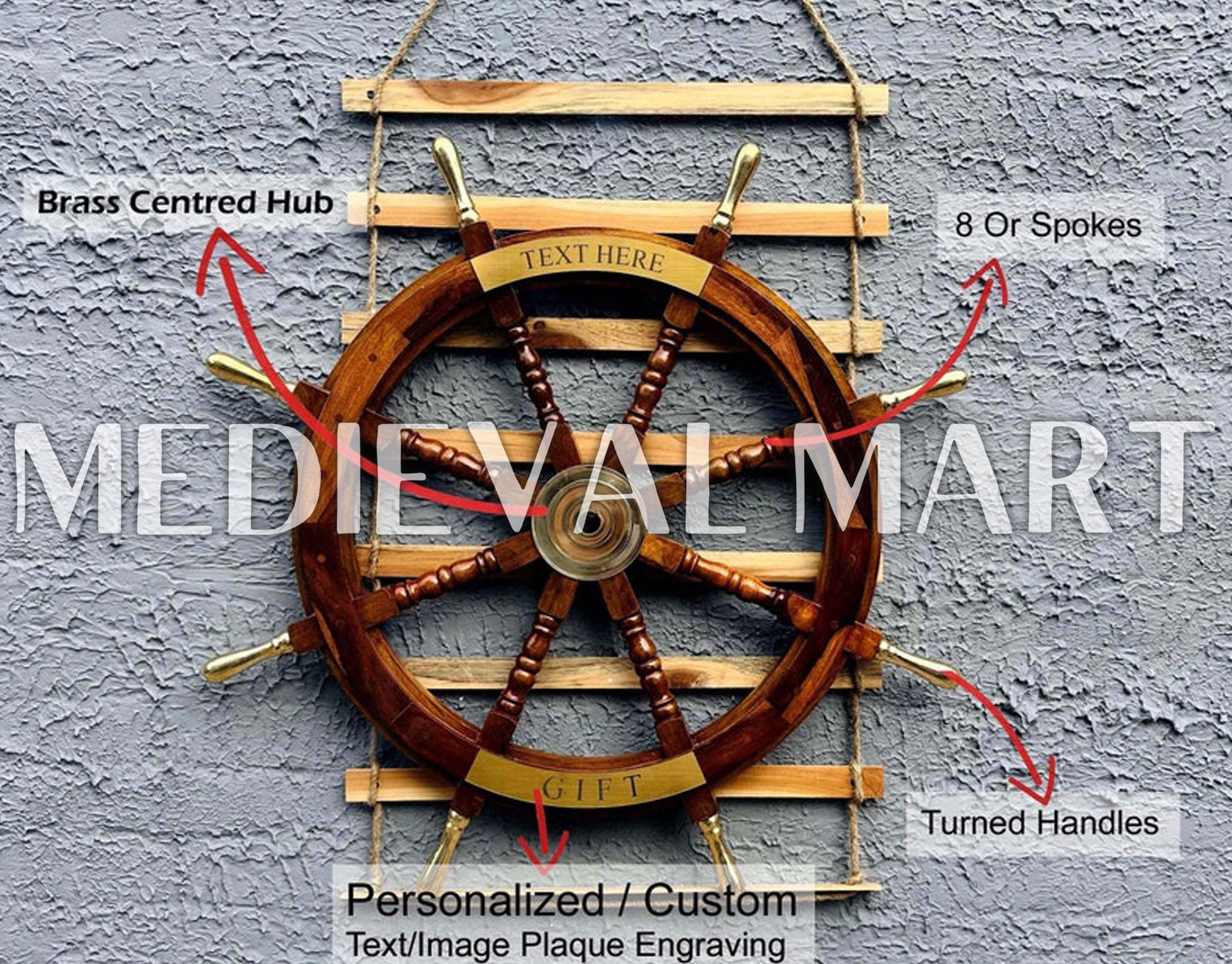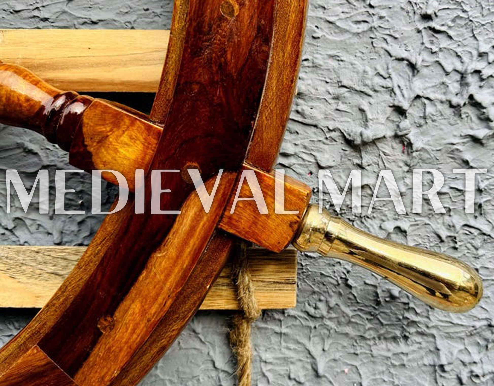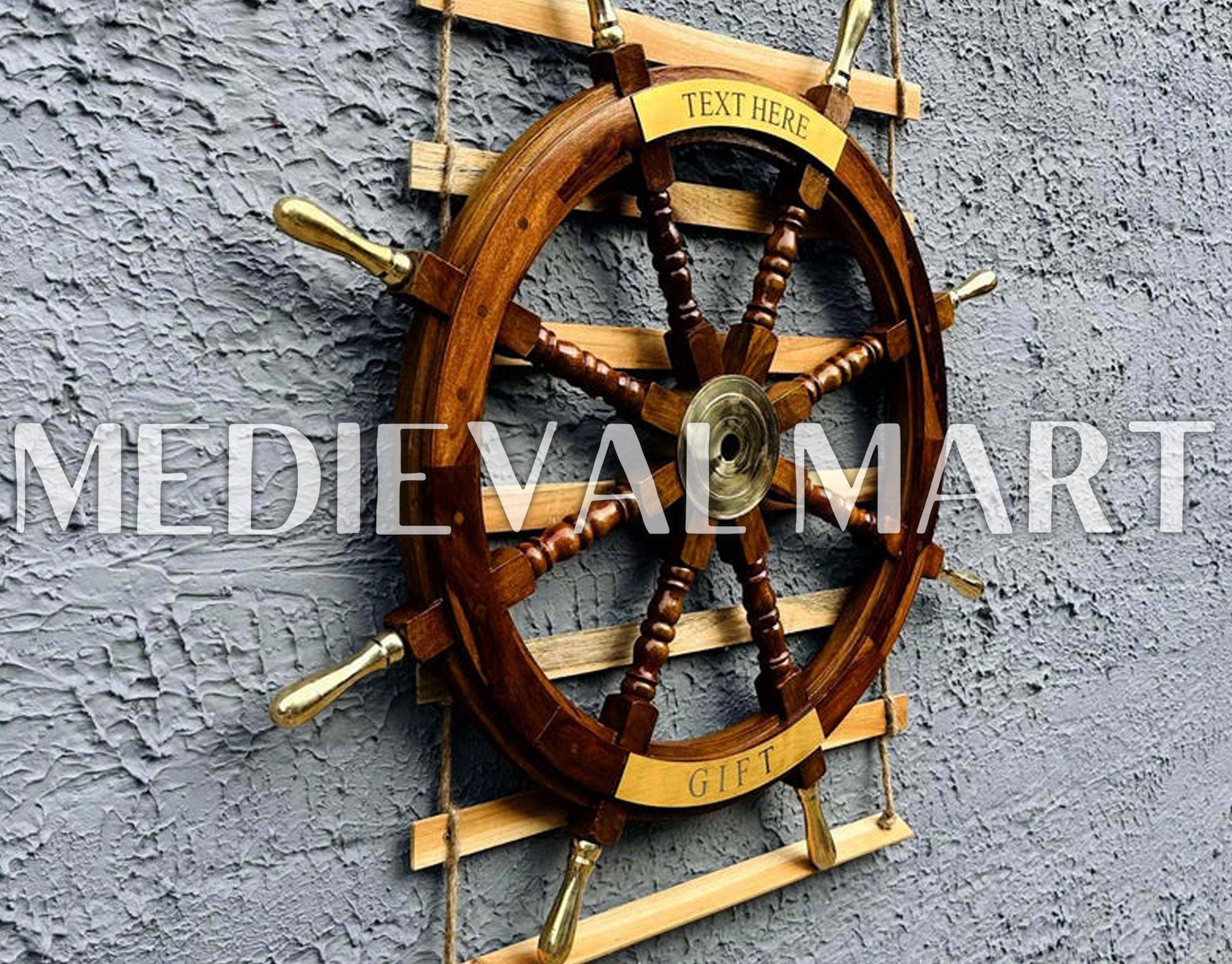 Add a touch of maritime elegance to your space with the Nautical Brass Decoration Ship Wheel – Brown Finish from Medieval Mart. Crafted from high-quality wood and adorned with polished brass accents, this ship wheel embodies the timeless charm of seafaring adventures. The rich brown finish enhances its classic appeal, making it a perfect décor piece for homes, offices, or boats. Designed for durability and authenticity, it features sturdy spokes and a smooth surface. Personal engraving options allow for custom names, dates, or messages, making it a thoughtful gift for nautical enthusiasts. A perfect blend of history and craftsmanship!