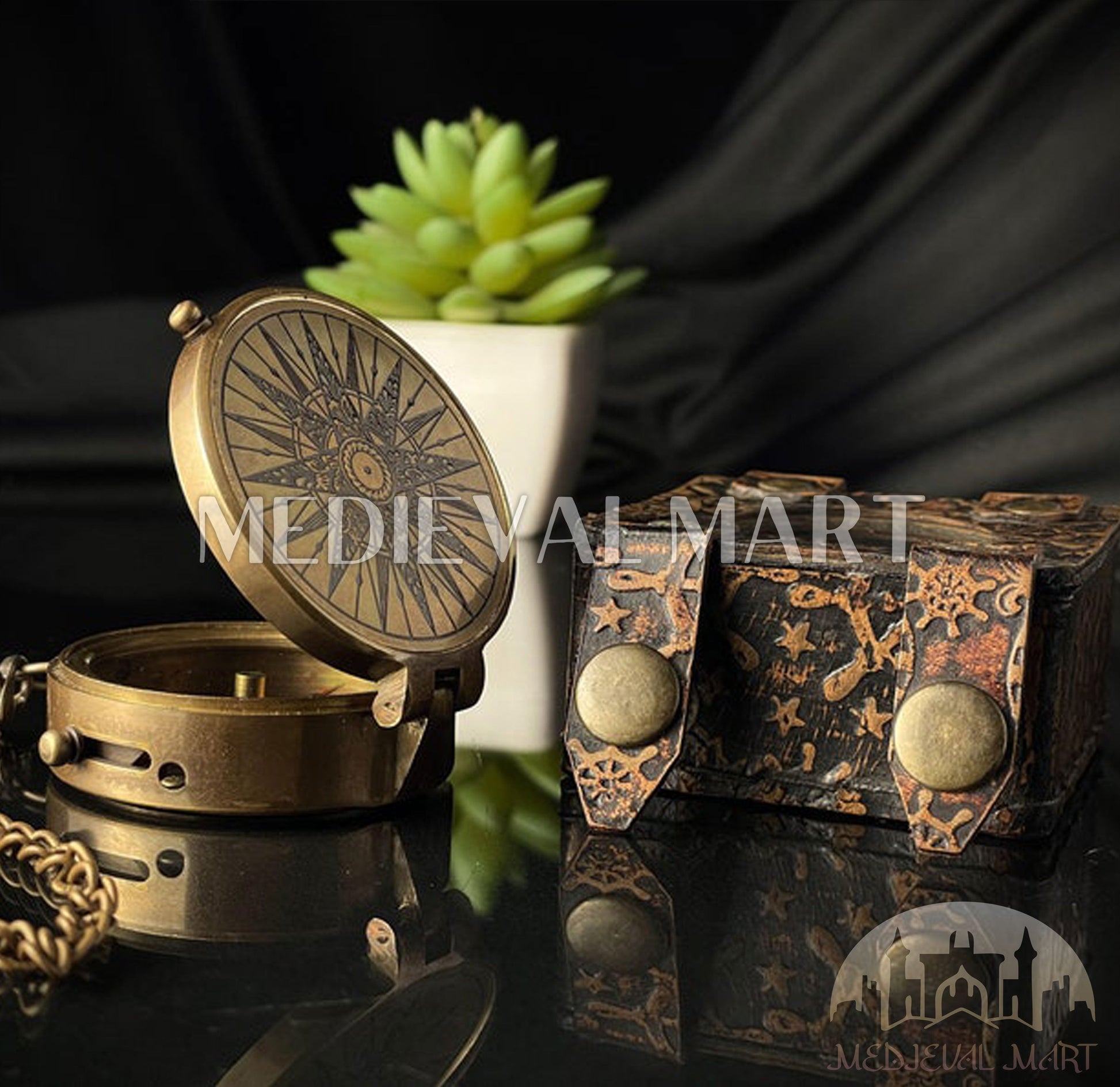 Forge a path through history with this exceptional vintage adventure compass, crafted to honor the fearless spirit of medieval seafarers. Sculpted from pure brass with a brilliant gold finish, this 50mm x 18mm fully functional compass is etched with rugged engravings that tell tales of daring voyages. Personalized with custom engravings, it becomes a legacy piece, embodying strength, direction, and a father’s enduring guidance. Housed in the exclusive Gen-3 leather case (2.5 x 2.5 x 1 inch), with its superior stitching and luxurious feel, this rugged treasure blends grit with elegance. Tailored for Father’s Day, birthdays, or moments of pride, it’s the ultimate gift for Dad, celebrating his role as the compass of your life’s greatest adventures.