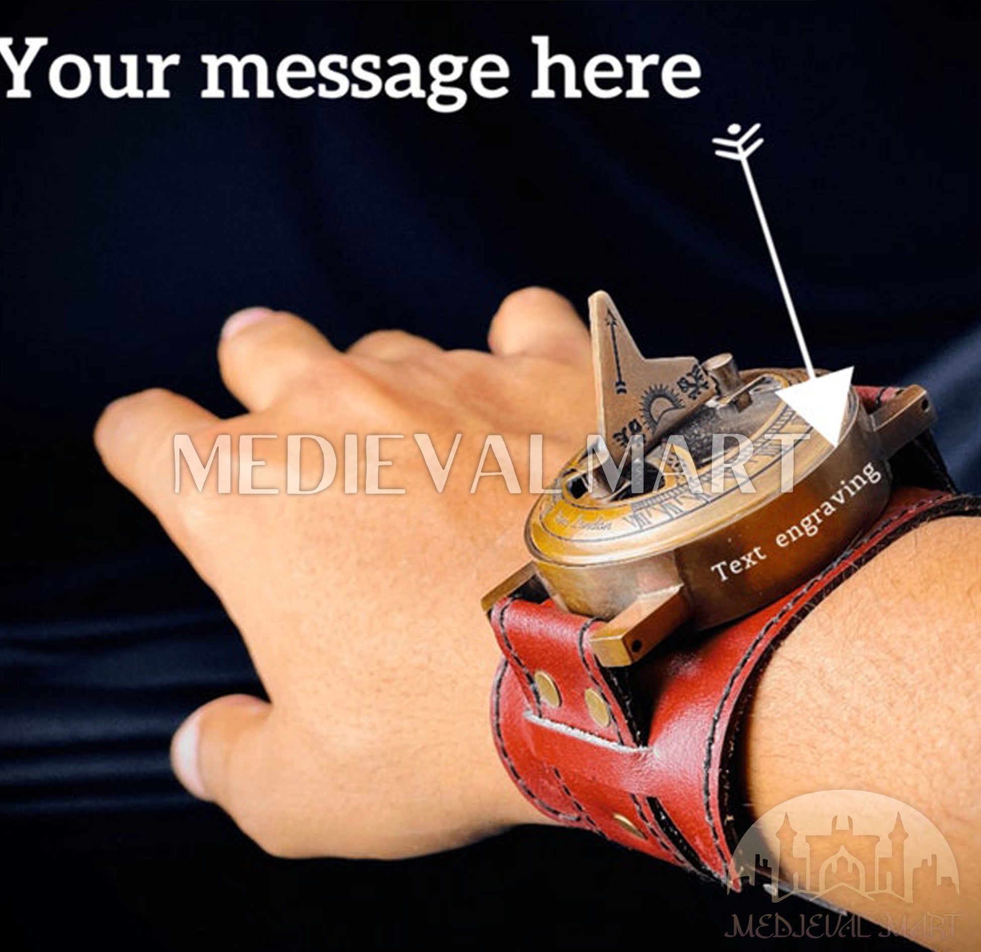 Chart the stars and time with this masterful nautical sun clock compass hand watch, inspired by the celestial navigators of the medieval seas. Handcrafted from pure brass with a luminous gold finish, this 50mm timepiece fuses a fully functional compass with an intricately designed sundial and classic watch face, its detailed engravings capturing the essence of exploration. Personalized with custom engravings, it becomes a bespoke keepsake, symbolizing direction, ambition, and enduring strength. Secured with a hand-stitched leather strap for comfort and rugged charm, this sophisticated piece is crafted to last. Perfect for birthdays, anniversaries, or moments of admiration, it’s an unforgettable gift for him, honoring his role as the guiding force in life’s epic voyages.