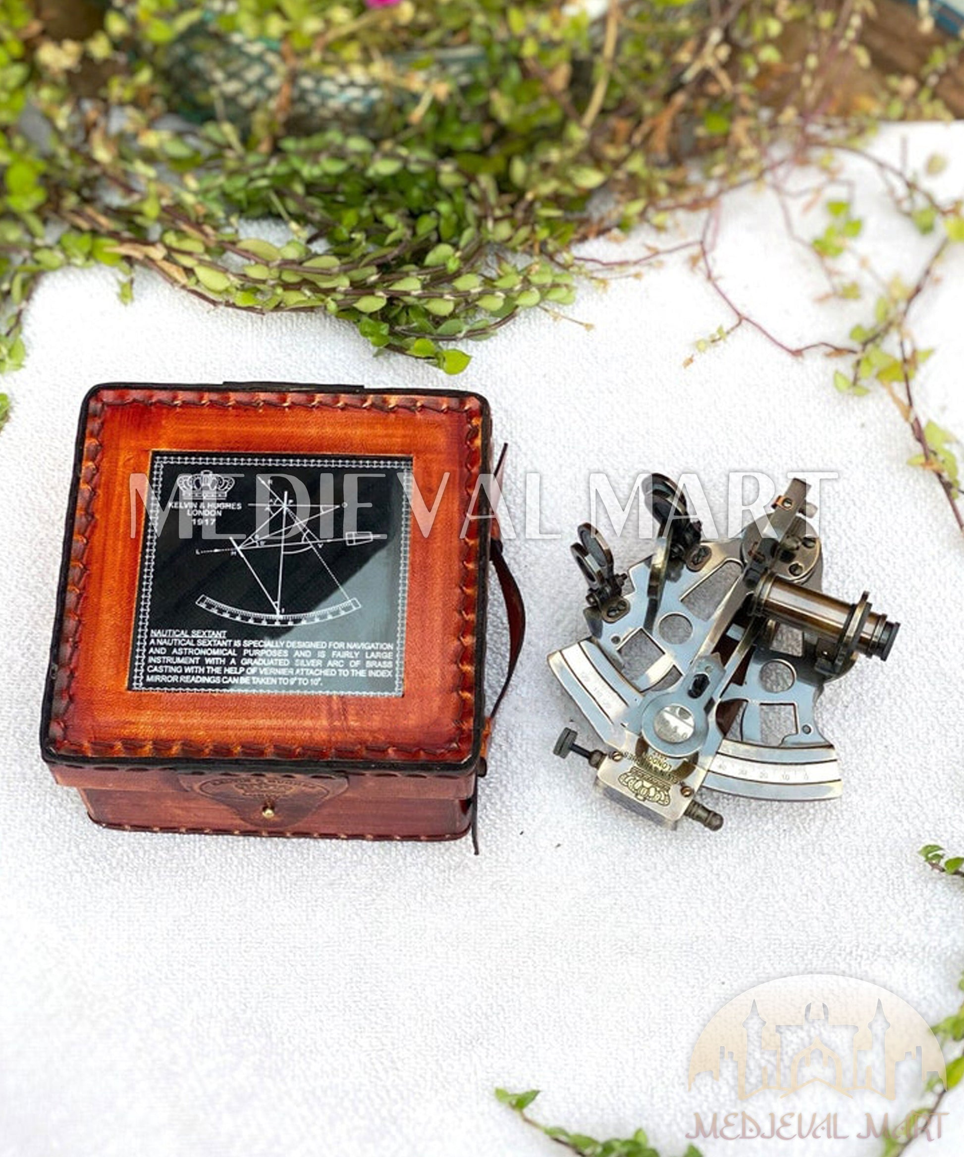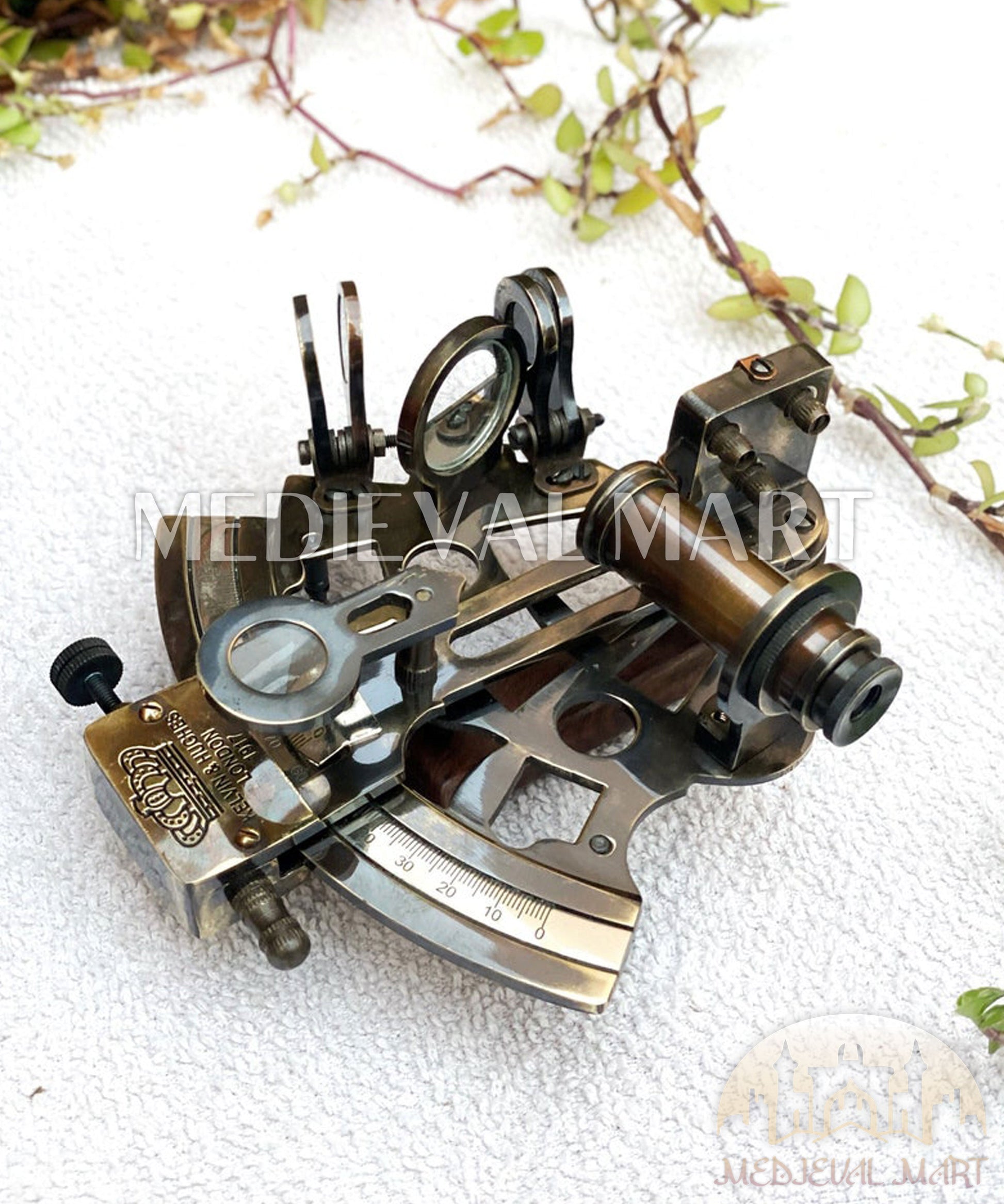 🎁This absolutely beautiful and functional brass sextant with a antique Brass finish. This Brass Sextant is made from premium quality Brass. This sextant is best In The world to give you precise result that helps you measure the Horizon, Longitude and Latitude. FRAME :- The frame is the main structure of the sextant, usually made of metal such as brass. It consists of a sturdy, curved frame with a graduated scale. INDEX ARM :- The index arm is a movable part of the sextant attached to the frame. It can be adjusted to measure angles between celestial bodies and the horizon. TELESCOPE :- A small telescope is mounted on the sextant to help the navigator sight the celestial bodies accurately. The telescope often has adjustable magnification to enhance visibility. HORIZON MIRROR :- The horizon mirror is a half-silvered mirror mounted at a 45-degree angle to the frame. It reflects the image of the horizon into the telescope. INDEX MIRROR :- The index mirror is attached to the index arm and reflects the image of the celestial body into the telescope.