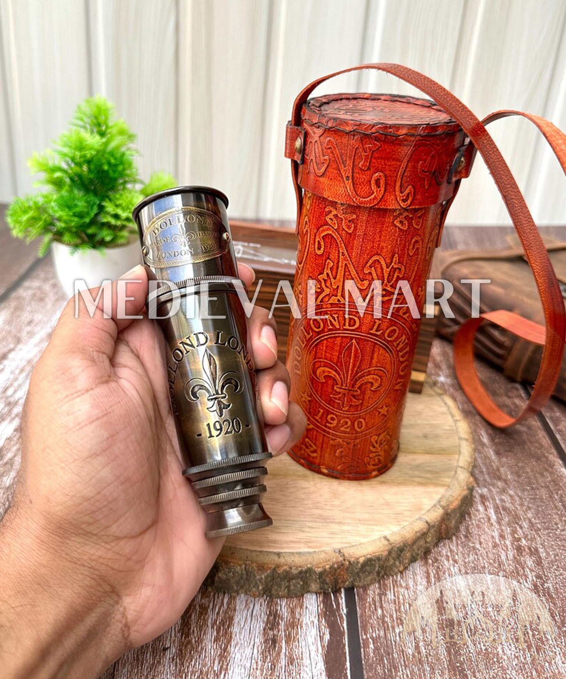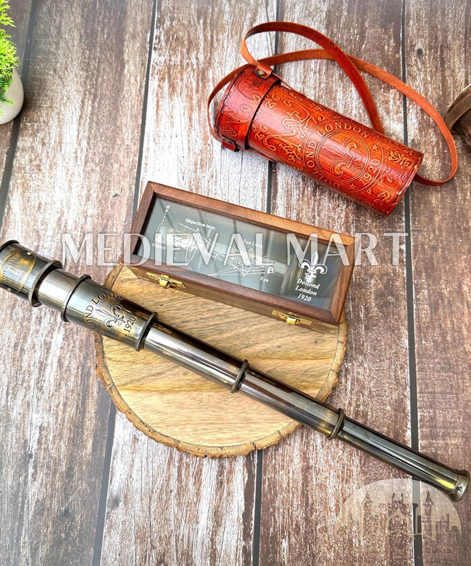 Discover the spirit of adventure with the MEDIEVALMART Nautical Royal Marine Brass Telescope, a handcrafted collectible inspired by maritime tradition and steampunk aesthetics. Made from premium solid brass with a polished antique finish, this telescope is both a working optical instrument and a stylish décor piece.