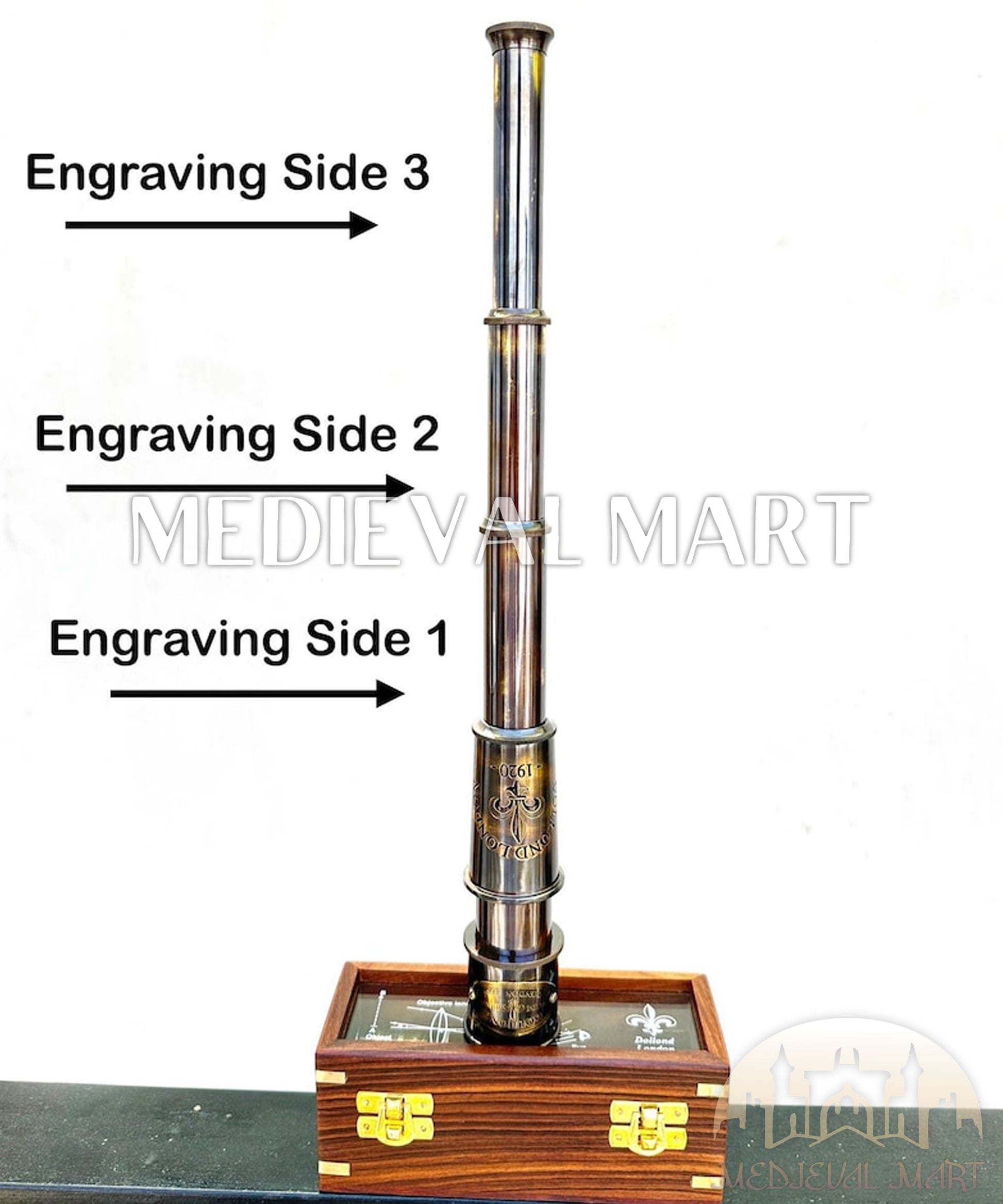 Step into a world of timeless elegance with our exquisite antique-style 14-inch long telescope. Crafted with precision and encased in polished brass, this telescope is a true collector's gem. To add a personal touch, we offer customization options that will elevate its allure even further.