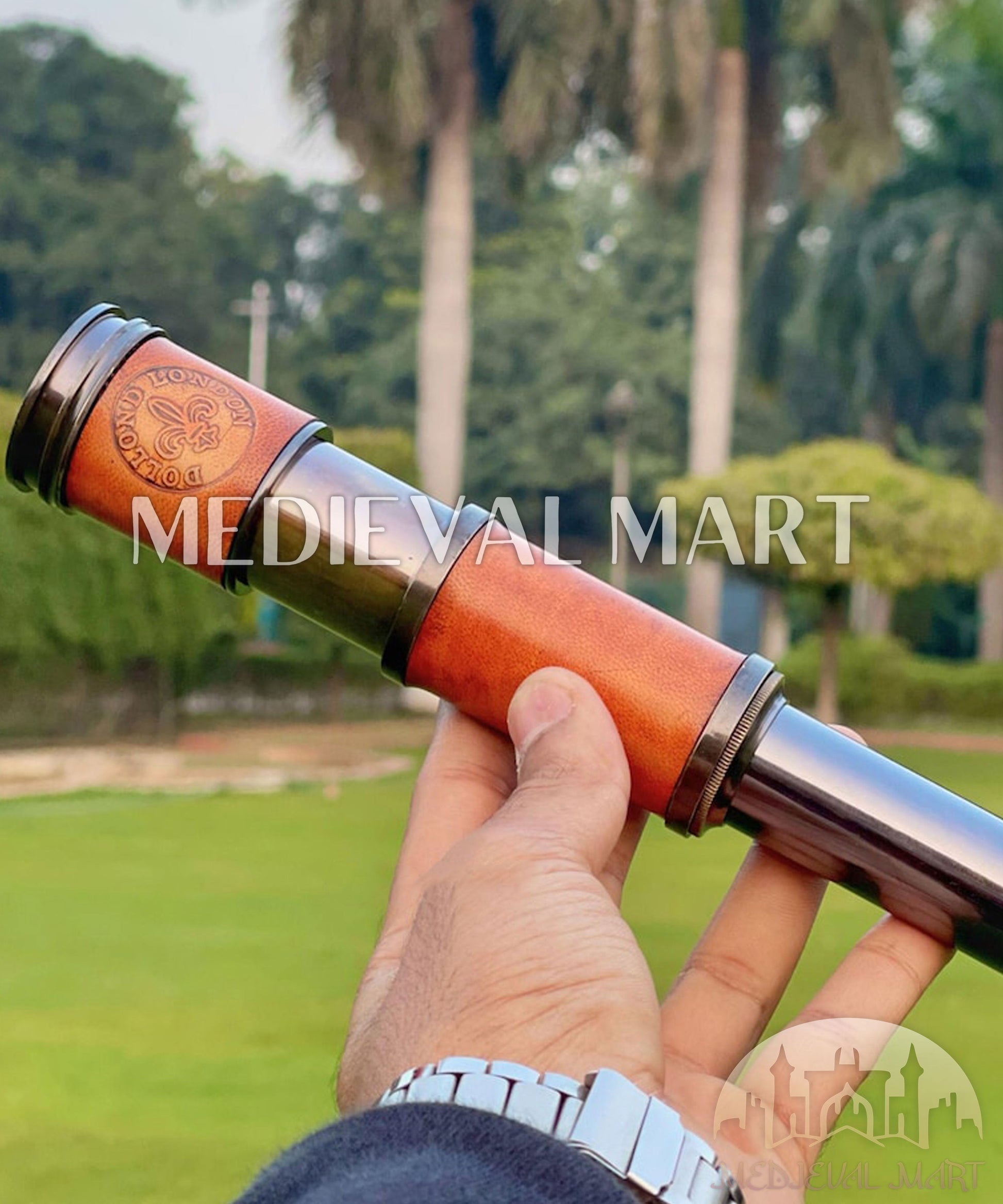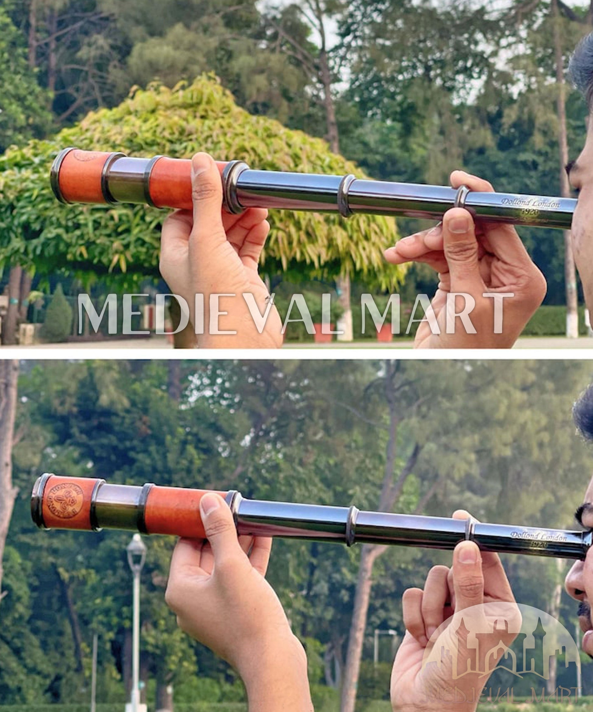 The brass elements give the telescope a classic, nautical feel, evoking the age of exploration and adventure. The leather helps protect the brass from wear while offering a more ergonomic design. It can be extended or adjusted to various lengths, allowing for better magnification of distant objects. Whether for collectors, outdoor enthusiasts, or those with a penchant for historical maritime instruments, this telescope offers both functionality and a sense of timeless craftsmanship.