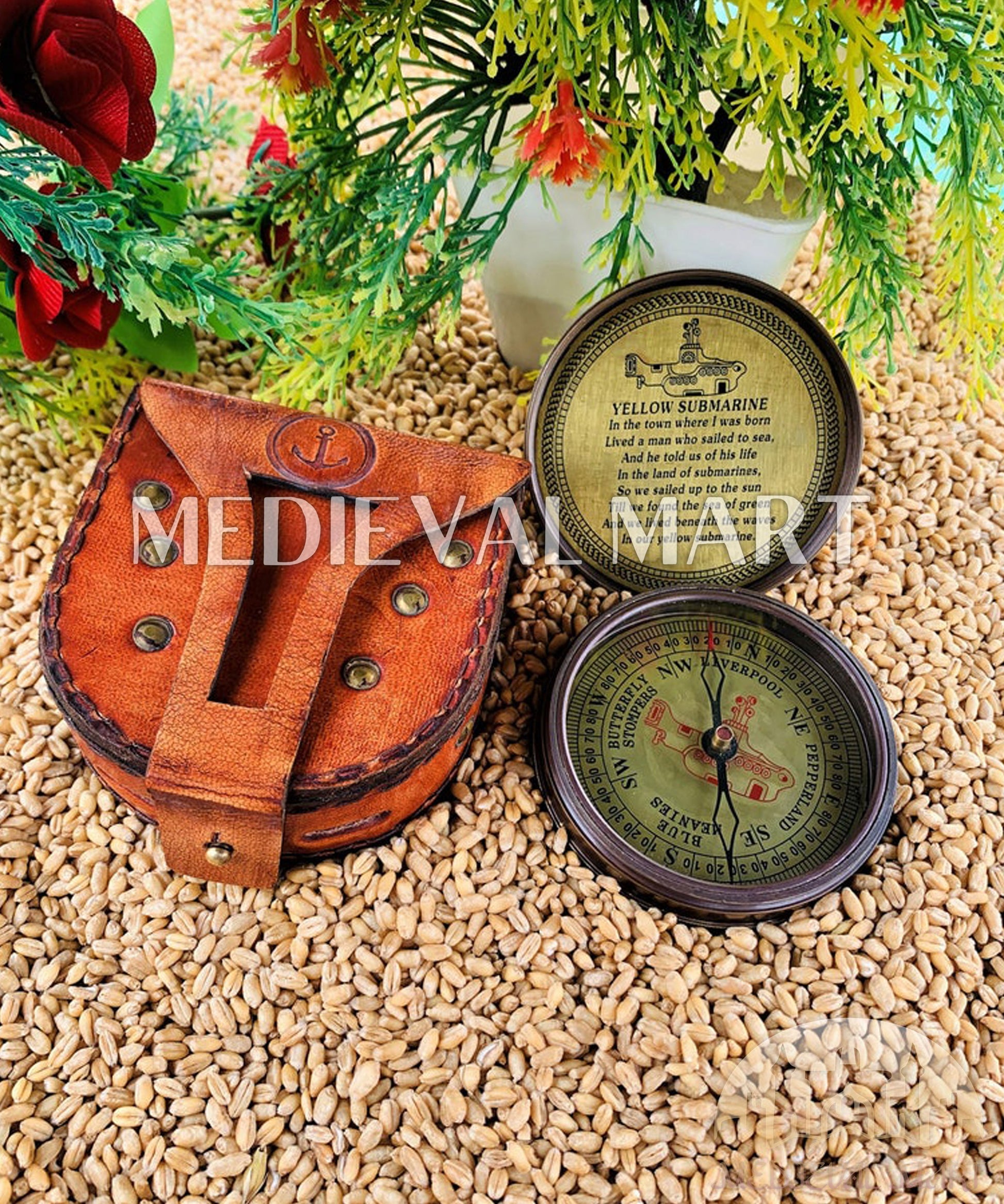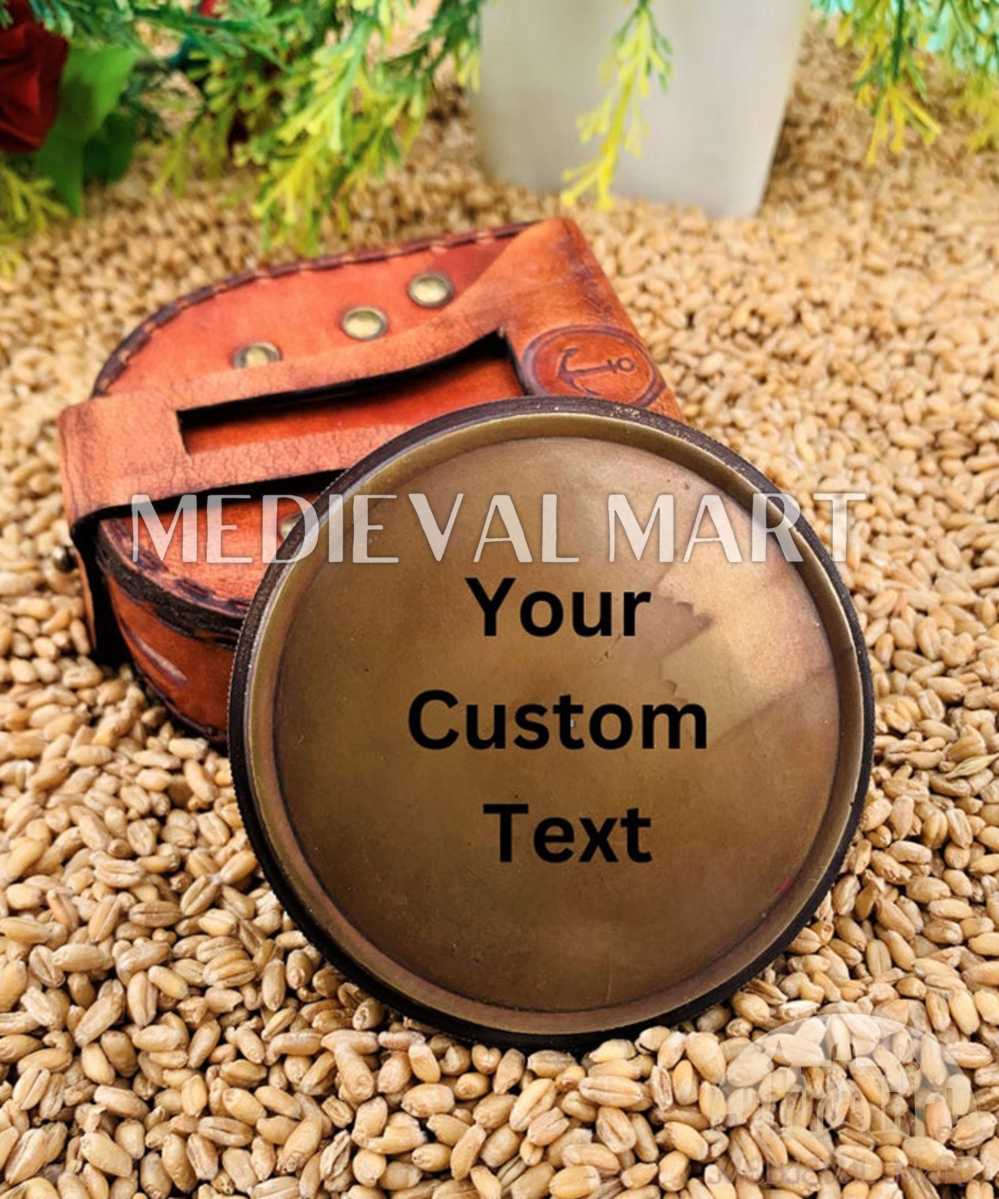 Embark on a timeless voyage with this exquisitely crafted vintage working compass, inspired by the intrepid navigators of the medieval maritime era. Forged from pure brass with a rich antique finish, this 50mm x 18mm fully functional compass is adorned with intricate engravings, evoking the rugged charm of ancient seafaring. Personalized with custom engravings, it becomes a cherished heirloom, symbolizing guidance, unity, and enduring love. Encased in a luxurious, hand-stitched leather case (2.5 x 2.5 x 1 inch), this elegant keepsake radiates vintage sophistication and unmatched durability. Perfect for anniversaries, birthdays, or heartfelt milestones, it’s a profound gift for Mom and Dad, encapsulating adventure, legacy, and the shared journey of family.