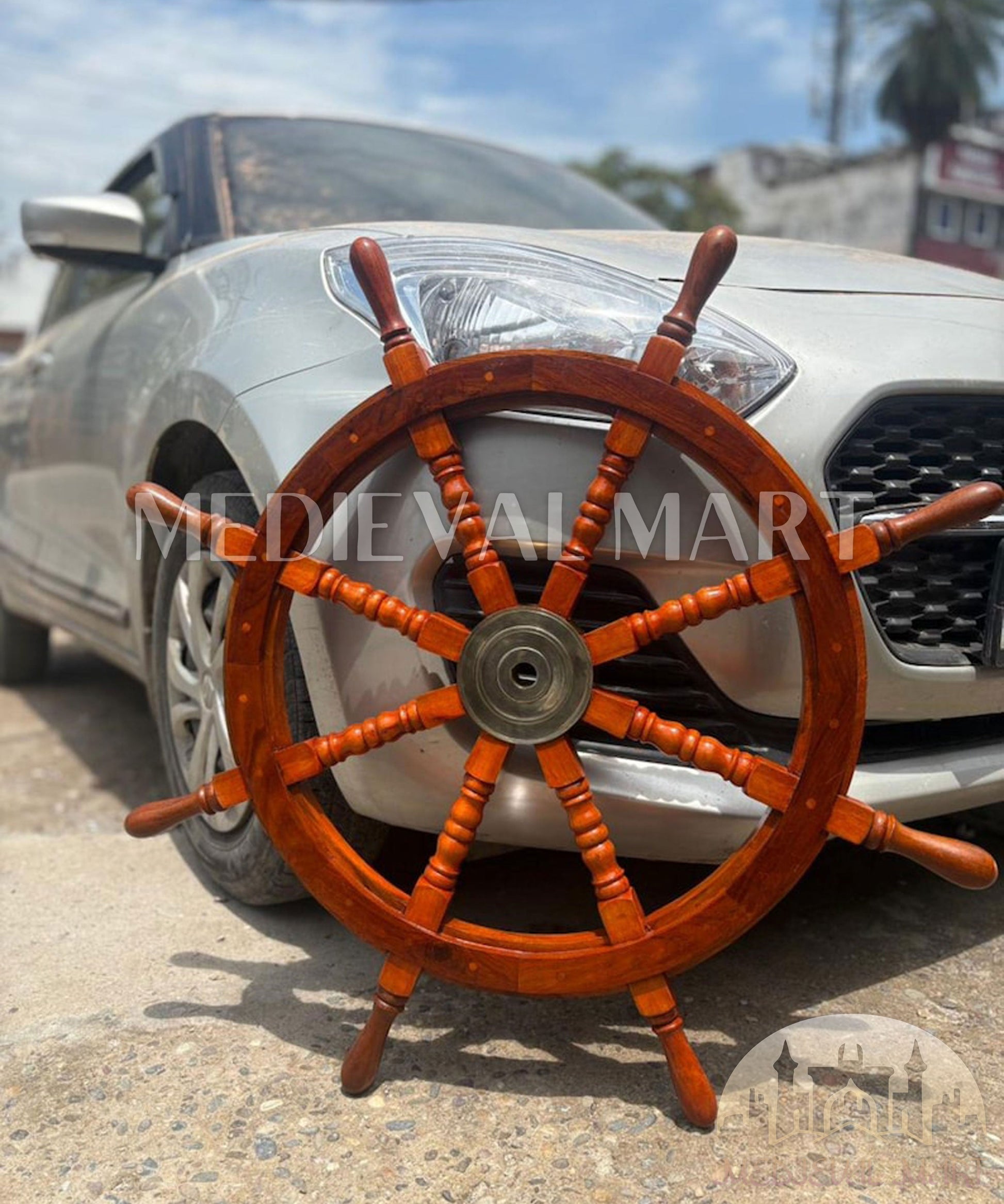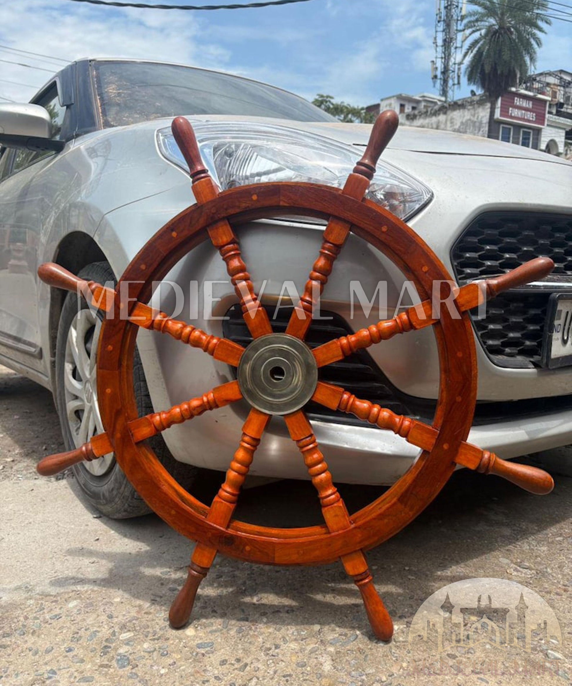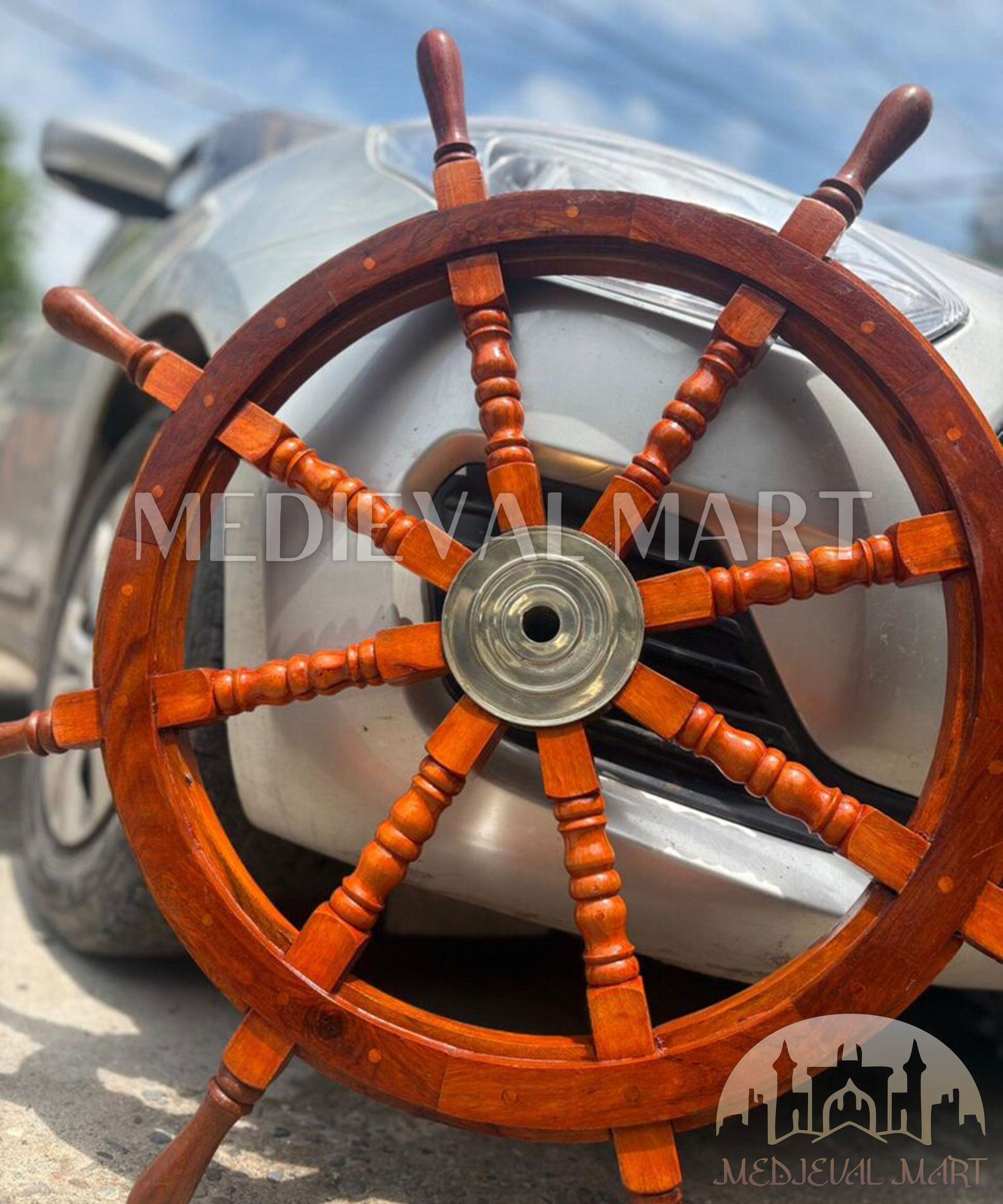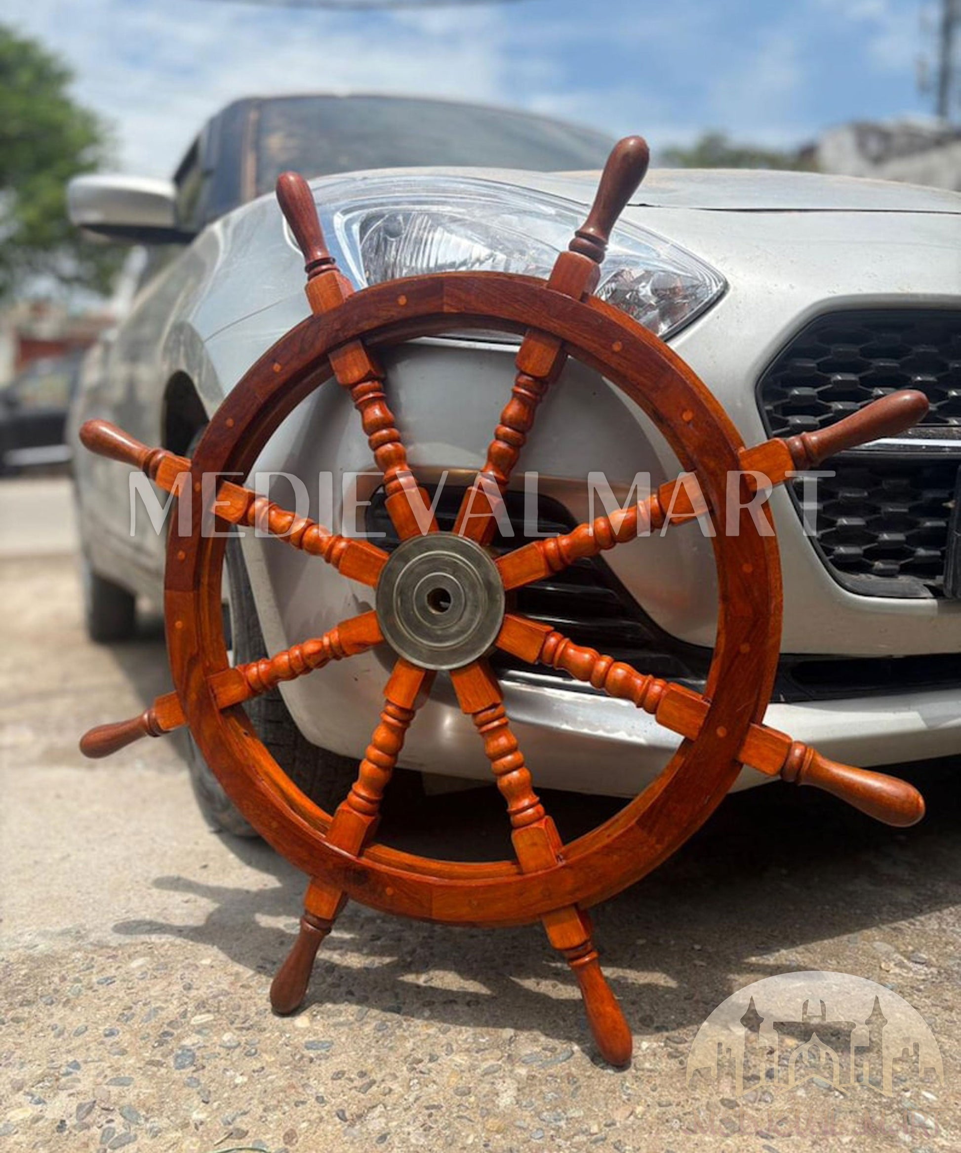 Bring a classic maritime charm to your space with this nautical wooden brown ship wheel from MEDIEVALMART. Crafted with high-quality wood and polished for a smooth finish, it perfectly replicates the look of traditional ship wheels. Ideal for wall décor, themed rooms, restaurants, or offices, it adds a touch of vintage seafaring spirit. Lightweight yet durable, this decorative wheel is easy to hang and instantly transforms any wall into a nautical statement piece. A thoughtful gift for sailors, collectors, or sea lovers, it blends tradition with timeless elegance.