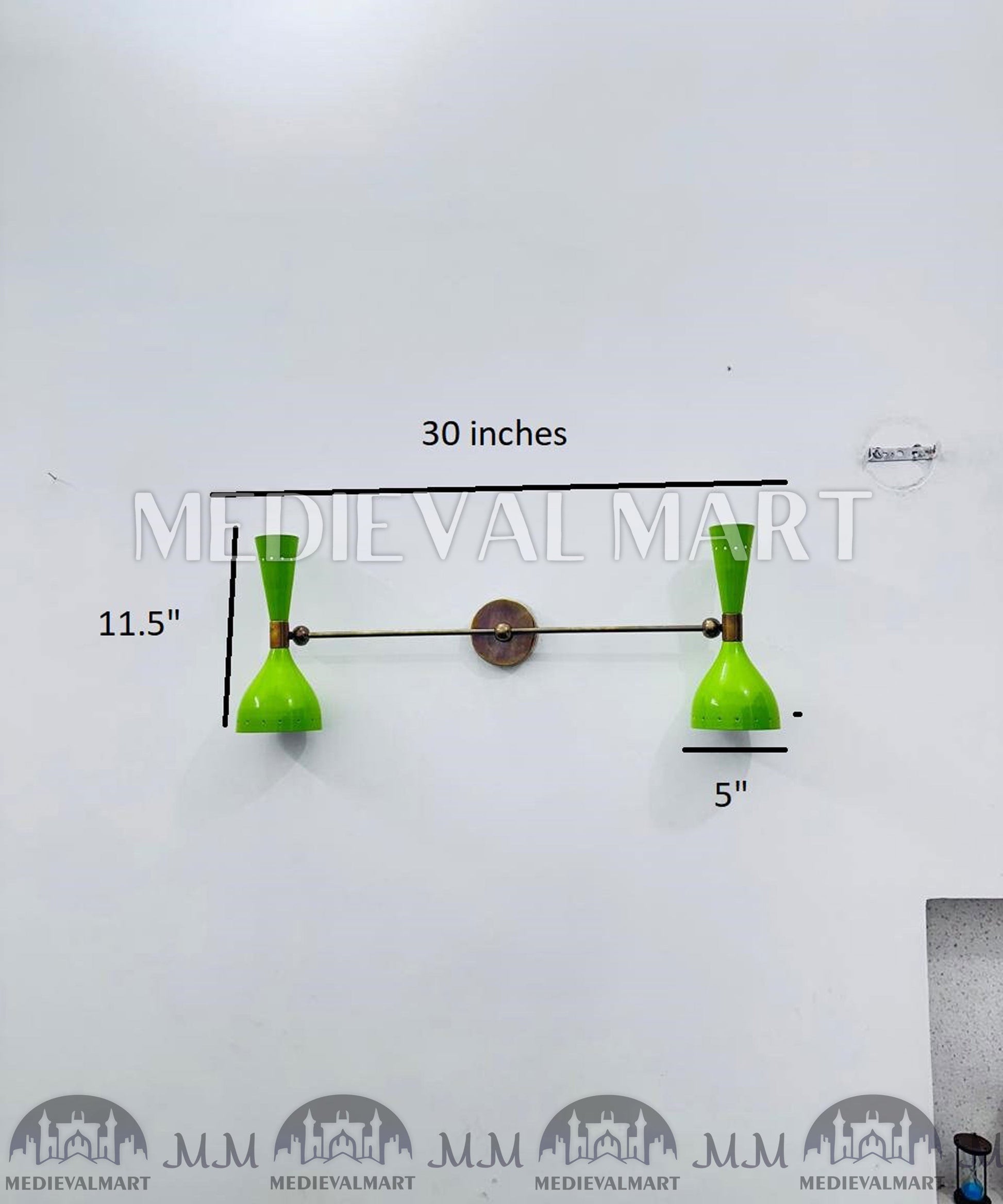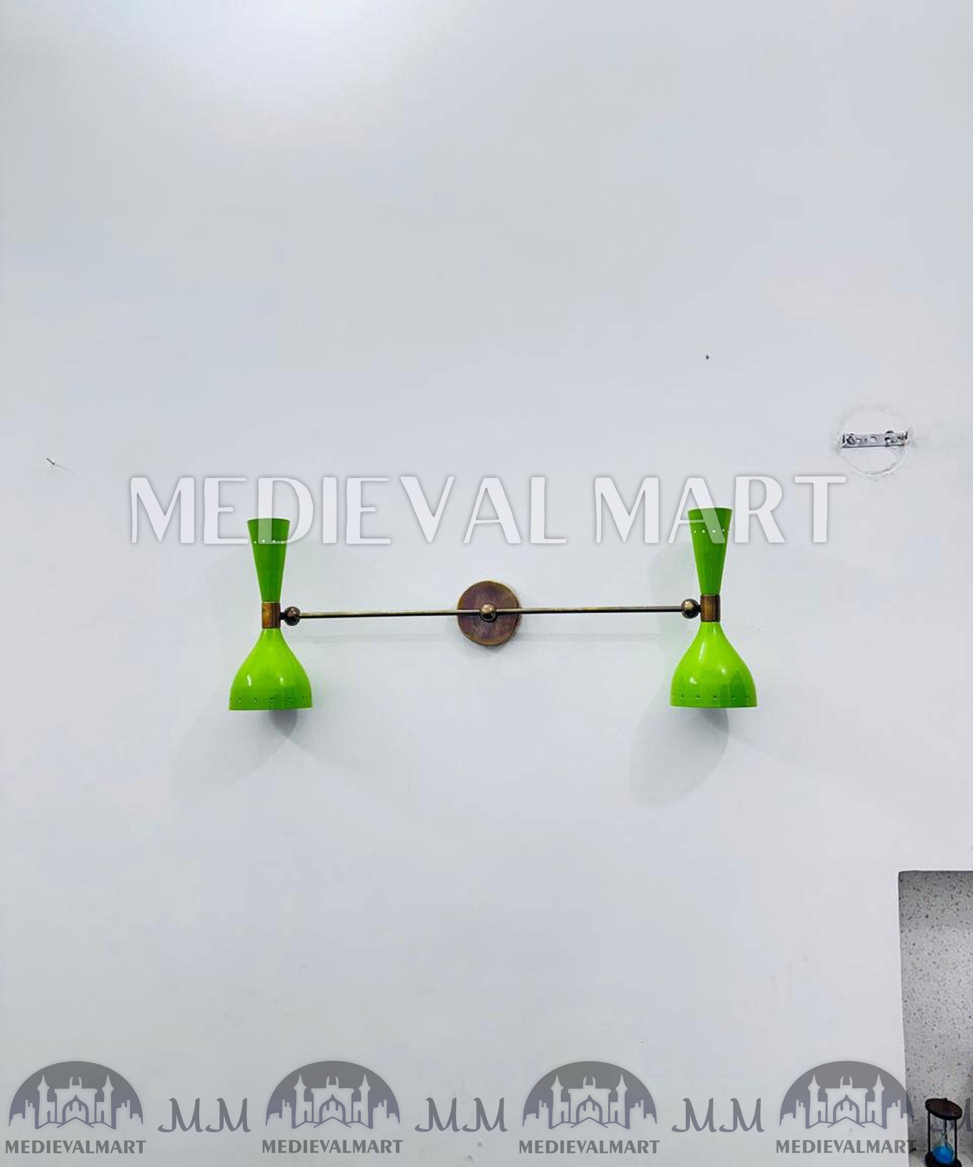 Add timeless charm to your space with the MEDIEVALMART Olive Green Diabolo Wall Sconce, a Mid-Century Italian Brass Light designed to capture the sophistication of 1950s décor. This handcrafted wall lamp features the signature Italian Diabolo double-cone design, known for its graceful silhouette and ambient glow.