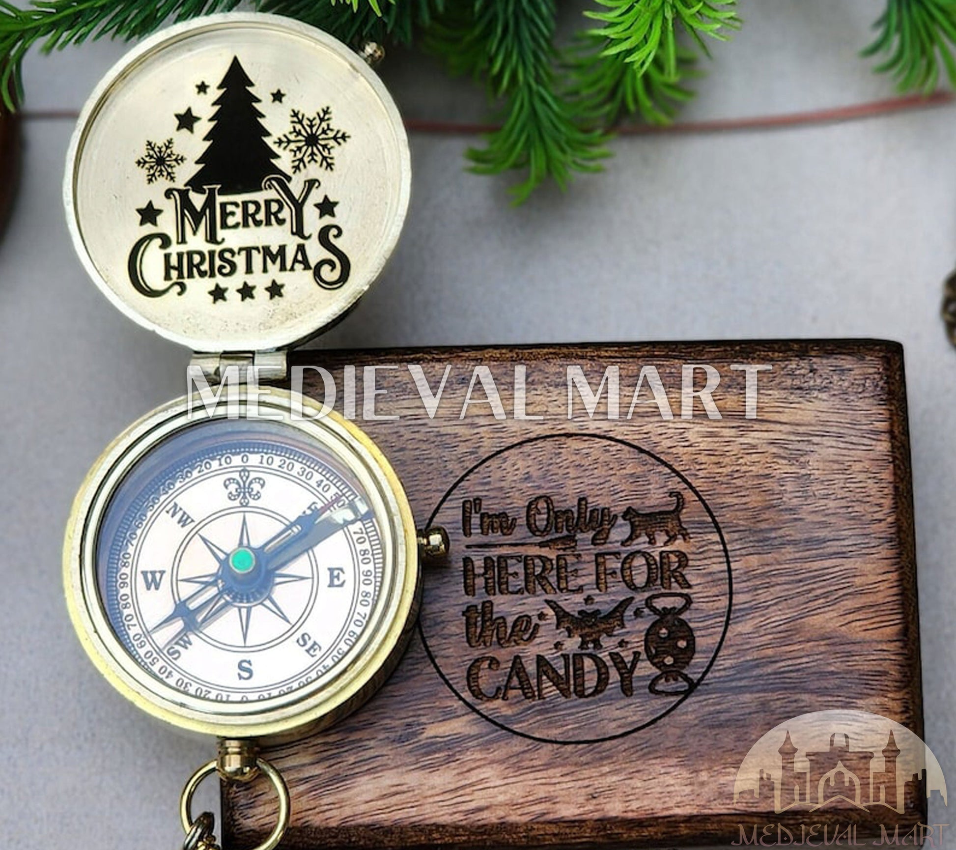 Light the way this holiday season with this magnificent nautical brass compass, crafted to evoke the guiding stars of medieval mariners. Forged from pure brass with a choice of luminous gold or warm bronze finish, this 50mm fully functional compass is adorned with intricate engravings, radiating the spirit of exploration and hope. Personalized with custom engravings, it becomes a festive keepsake, symbolizing guidance, love, and the joy of togetherness. Nestled in a handcrafted Gen-2 wooden case (2.5 x 2.5 x 1 inch), with its polished grain and refined warmth, this treasure shines with seasonal charm. Perfect for Christmas, it’s a heartwarming gift to share with loved ones, celebrating the journey of family under the winter’s guiding light.
