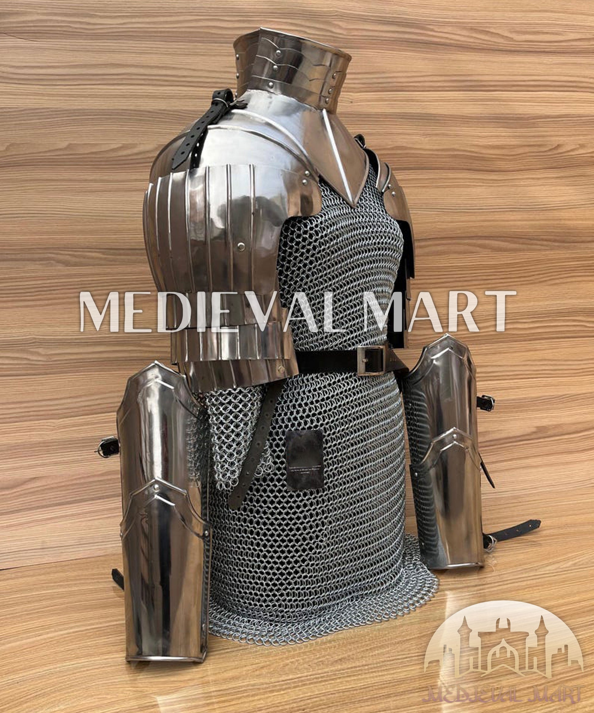 The MedievalMart (Solmara Knightward) Women’s Armor with (Blazing Fury) Chainmail Armor is a stunning fusion of strength and elegance, crafted for the fiercest warriors. Featuring intricately designed plate armor paired with Blazing Fury chainmail, this set offers superior protection and mobility in battle. The fiery, battle-hardened finish gives it a bold and commanding presence, perfect for LARP, medieval reenactments, cosplay, or display. Designed for durability, comfort, and style, this armor ensures the wearer stands out as a true knight. Whether defending a kingdom or embracing the warrior’s spirit, the Solmara Knightward Armor is the ultimate symbol of power.