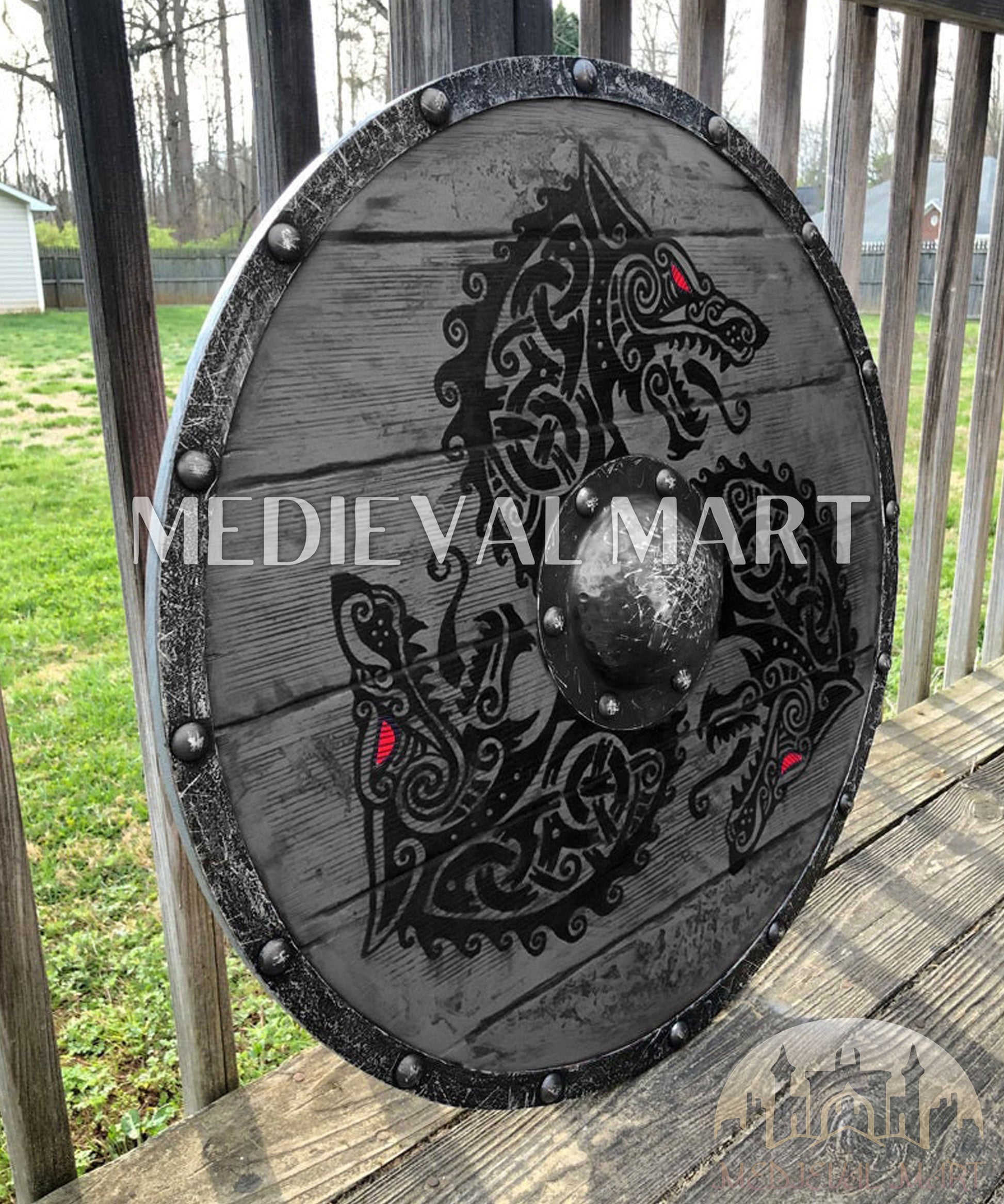 Embrace the strength and power of Fenrir with the MEDIEVALMART Viking’s Fenrir Gray Athena’s Authentic Battleworn Viking Wooden Shield. Crafted with meticulous attention to detail, this shield showcases a rugged, battleworn design with a striking gray Athena’s motif that pays tribute to Norse mythology. Made from premium wood, it offers both durability and unique aesthetic appeal.