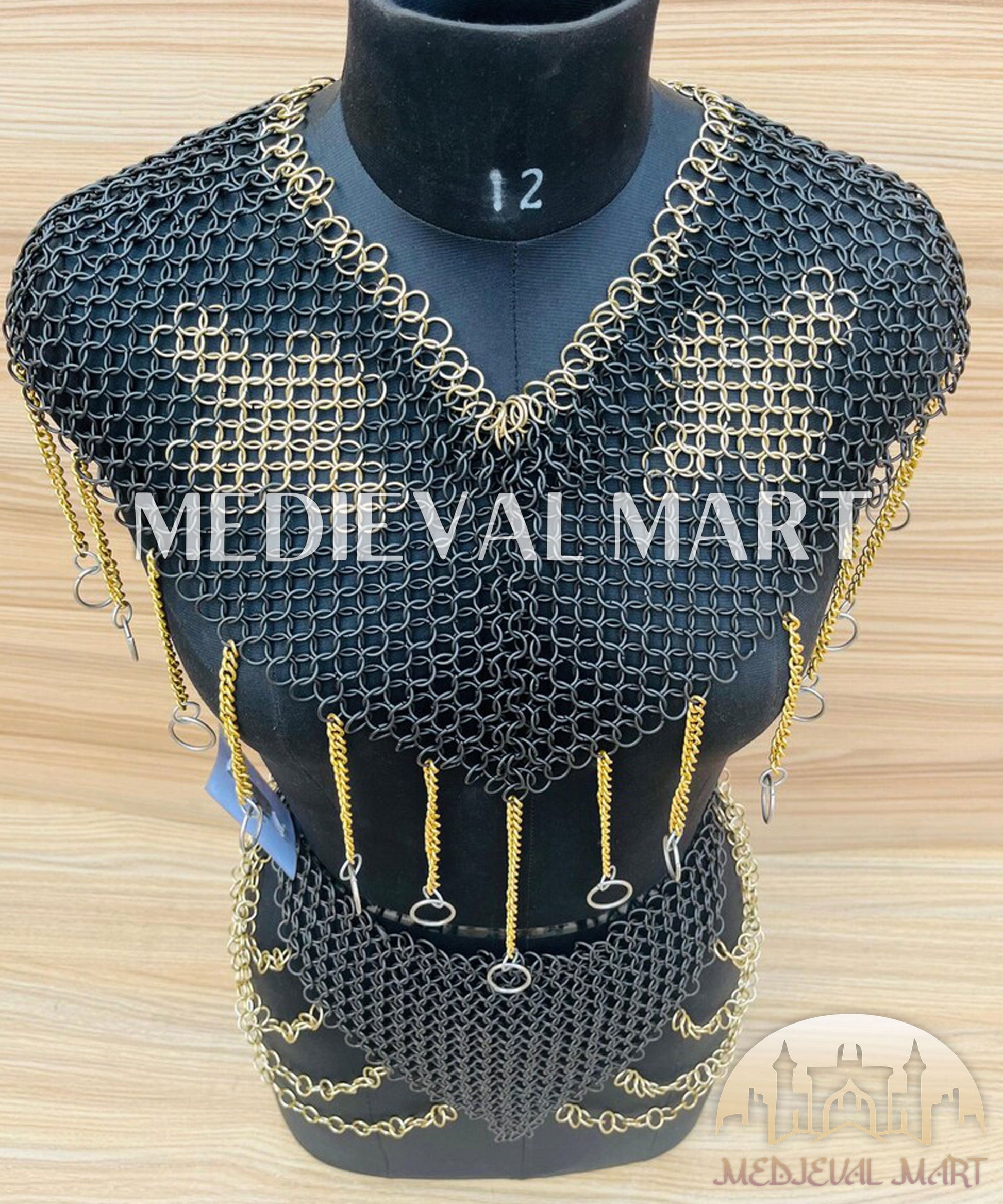 The MedievalMart Women’s Black (Sable Knight) Chainmail Armor with Skirt is a stunning blend of elegance and battlefield readiness. Crafted from high-quality blackened steel rings, this armor offers superior durability and protection while maintaining a sleek, commanding appearance. The attached chainmail skirt adds an extra layer of defense and enhances the warrior aesthetic. Designed for LARP, cosplay, SCA battles, and medieval reenactments, this armor ensures comfort and flexibility in combat. Whether portraying a dark knight, a fierce shieldmaiden, or a legendary warrior, the Sable Knight Chainmail Armor is the ultimate choice for battle-hardened heroines.