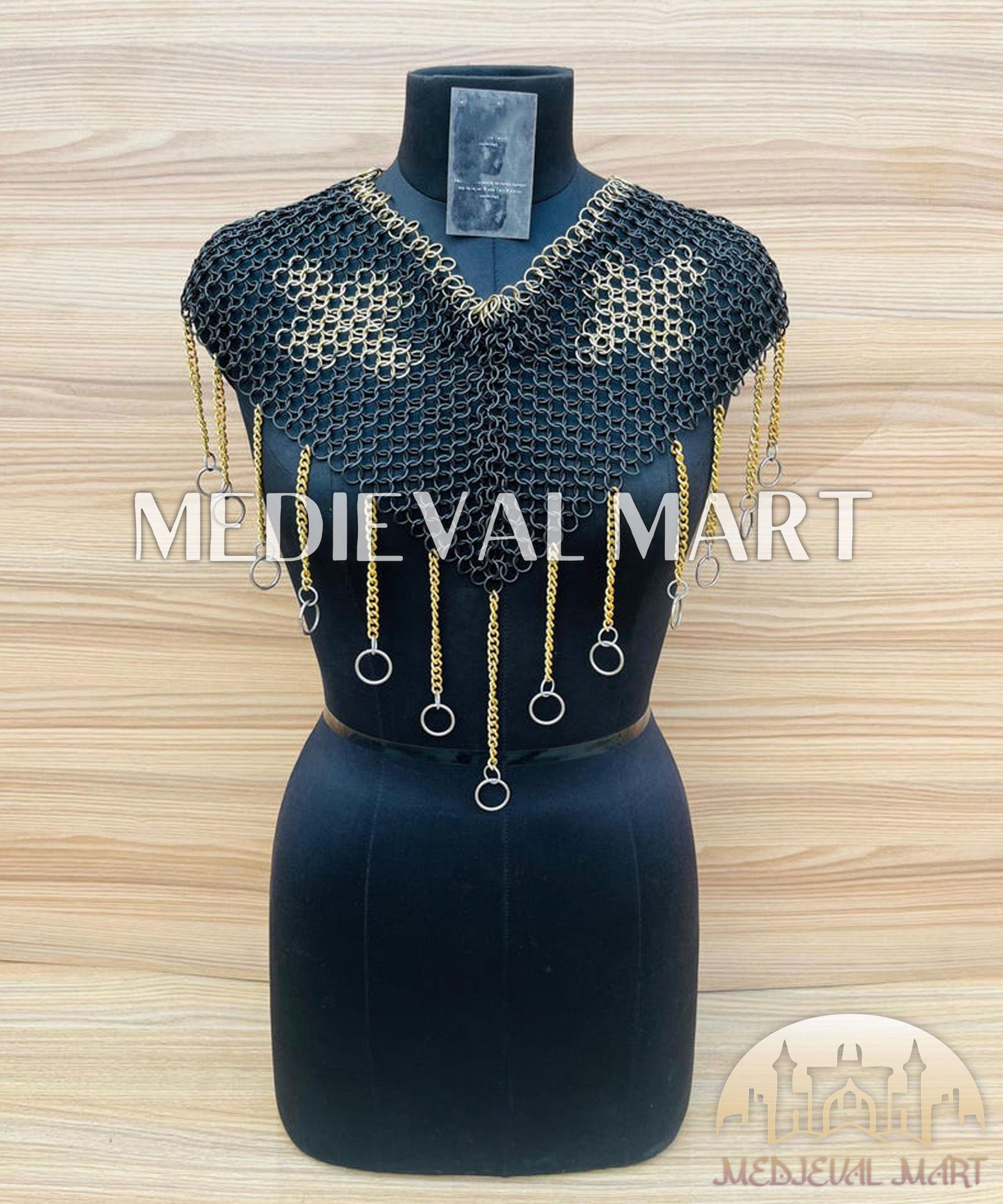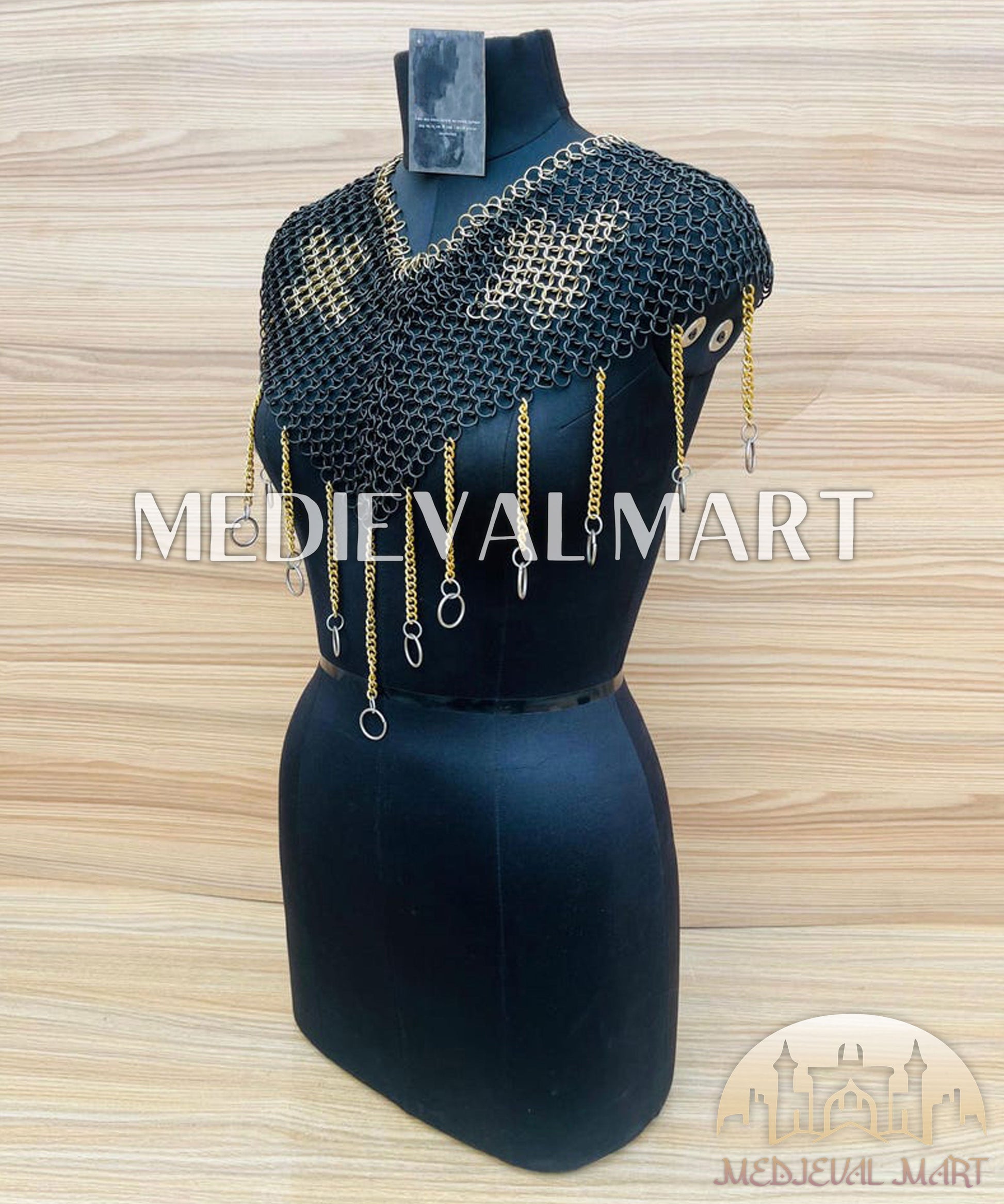 The MedievalMart Women’s Silver (MoonFire) Chainmail Armor Without Skirt is a stunning blend of elegance and battle-ready craftsmanship. Made from high-quality silver-finished steel rings, this armor offers superior durability, flexibility, and lightweight comfort. Designed for LARP, cosplay, SCA battles, and medieval reenactments, it ensures both protection and ease of movement. The MoonFire Chainmail embodies the grace of a warrior while maintaining an eye-catching, polished look. Whether you’re a shieldmaiden, an elven warrior, or a noble knight, this armor is perfect for bringing your medieval fantasy to life with unmatched authenticity and style.