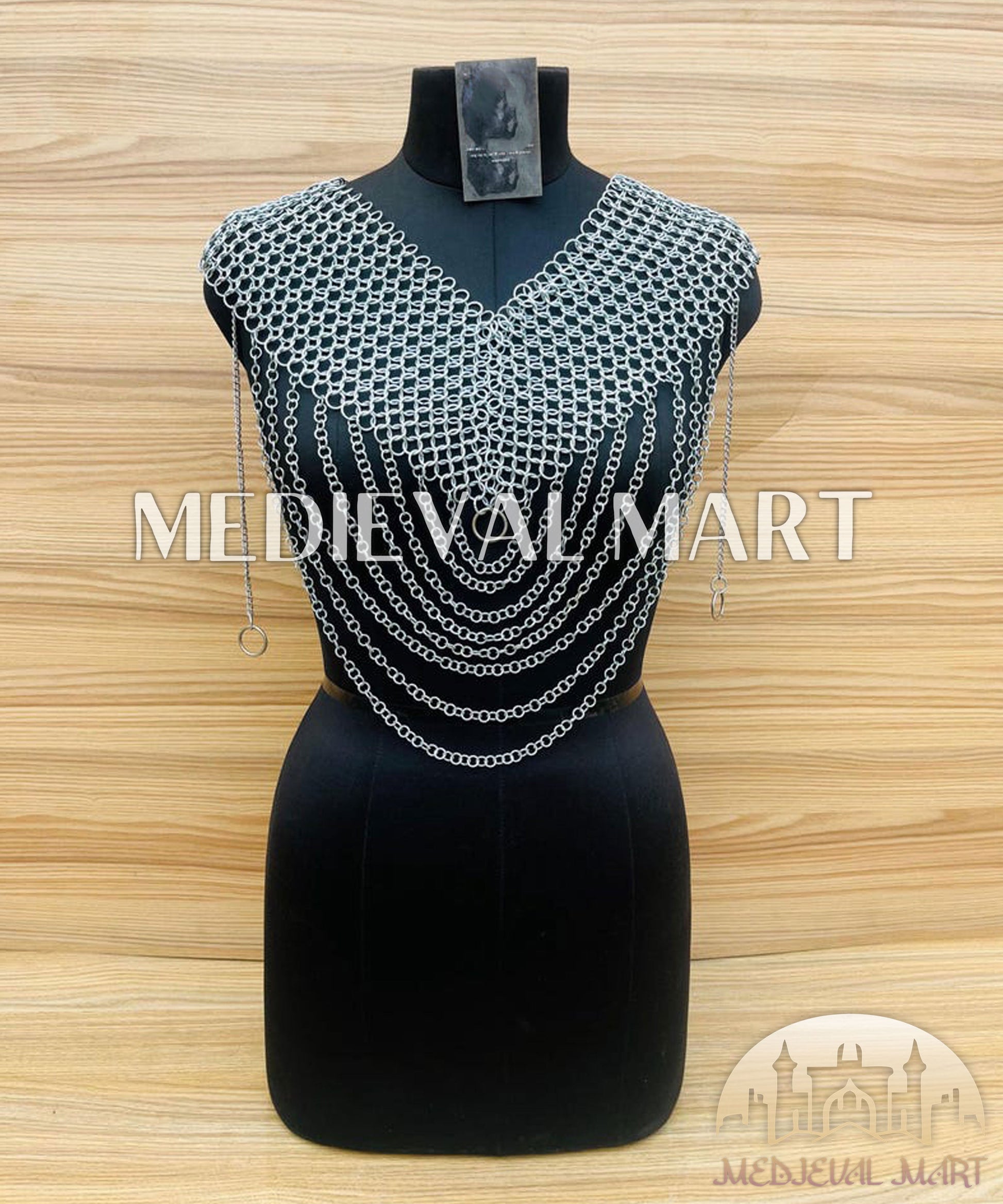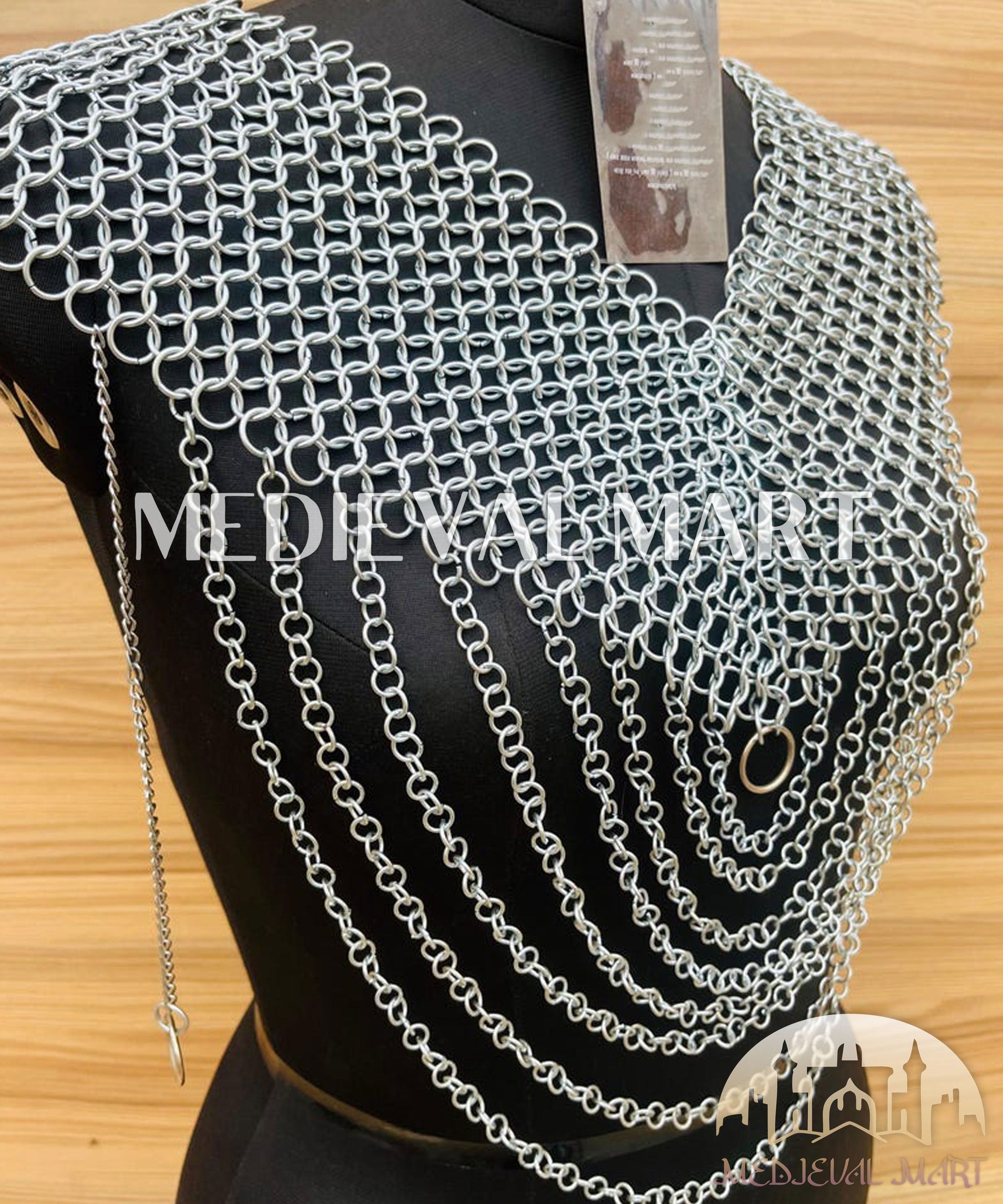 The MedievalMart Women’s Silver (MoonFire) Chainmail Armor Without Skirt is a stunning blend of elegance and battle-ready craftsmanship. Made from high-quality silver-finished steel rings, this armor offers superior durability, flexibility, and lightweight comfort. Designed for LARP, cosplay, SCA battles, and medieval reenactments, it ensures both protection and ease of movement. The MoonFire Chainmail embodies the grace of a warrior while maintaining an eye-catching, polished look. Whether you’re a shieldmaiden, an elven warrior, or a noble knight, this armor is perfect for bringing your medieval fantasy to life with unmatched authenticity and style.