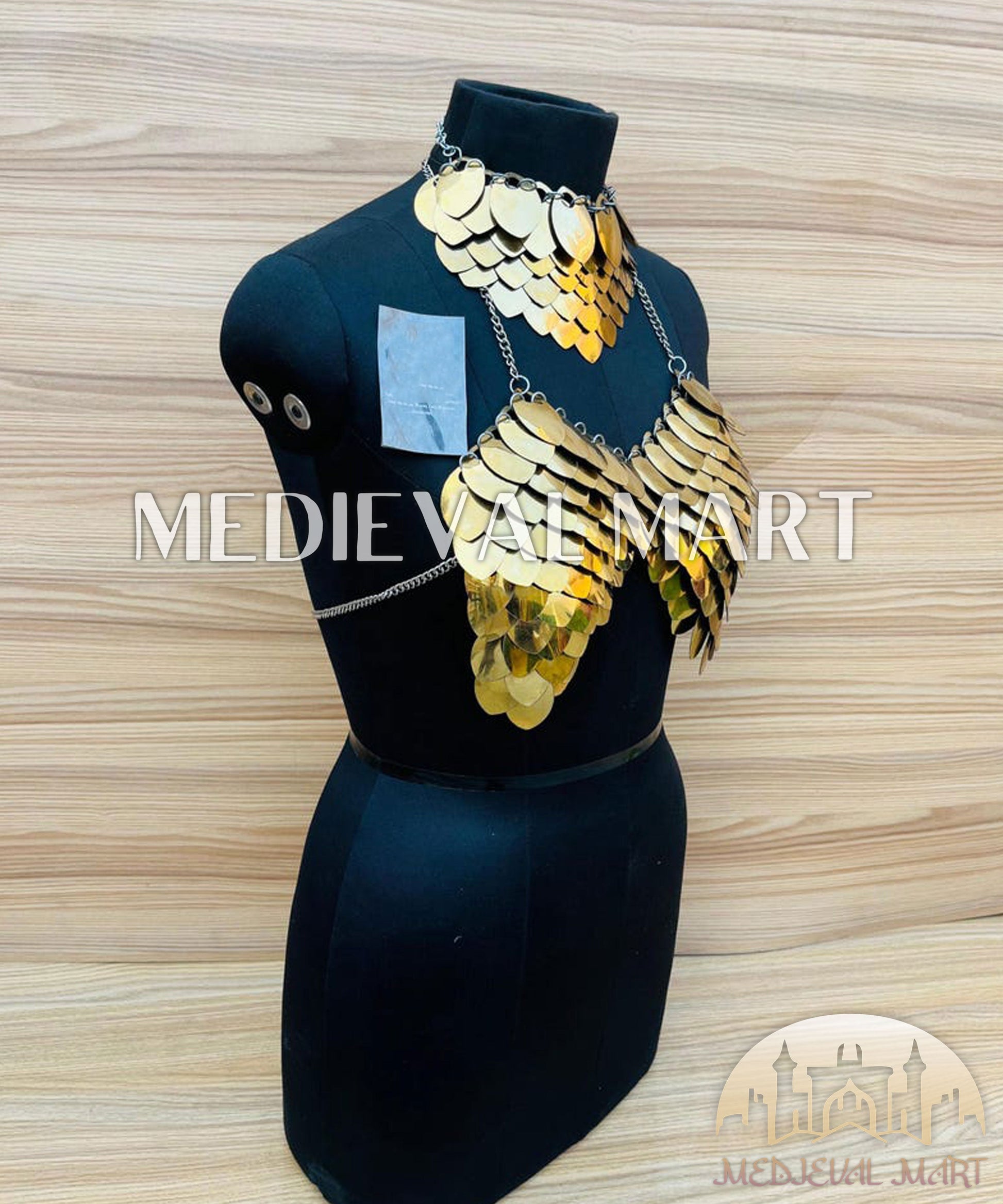 The MedievalMart Women’s SunForge Plate Bra Armor with Neck Armor is a stunning blend of protection and elegance, crafted for fierce female warriors. Designed with durable plate segments, this armor provides superior defense while ensuring mobility. The SunForge-inspired metallic finish gives it a bold and radiant look, perfect for LARP, cosplay, medieval reenactments, or fantasy battles. The integrated neck armor adds an extra layer of protection while maintaining a sleek and regal aesthetic. Whether for a shieldmaiden, warrior queen, or battle-hardened knight, this armor is a must-have for commanding attention and dominating the battlefield.