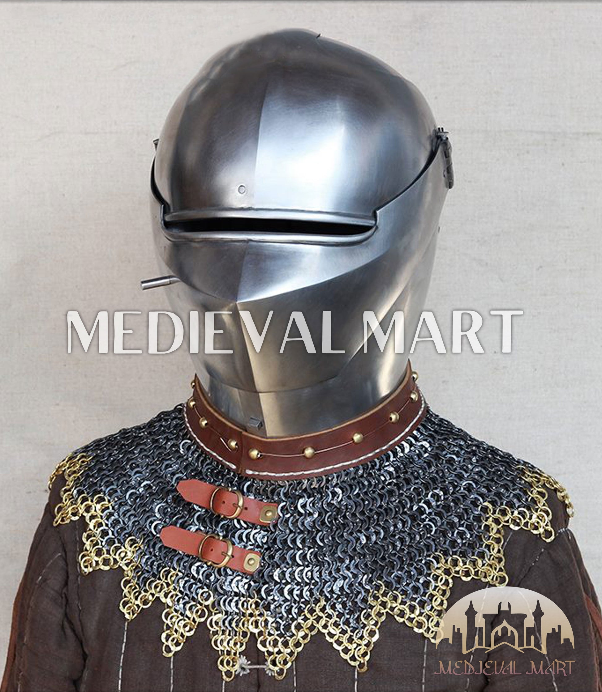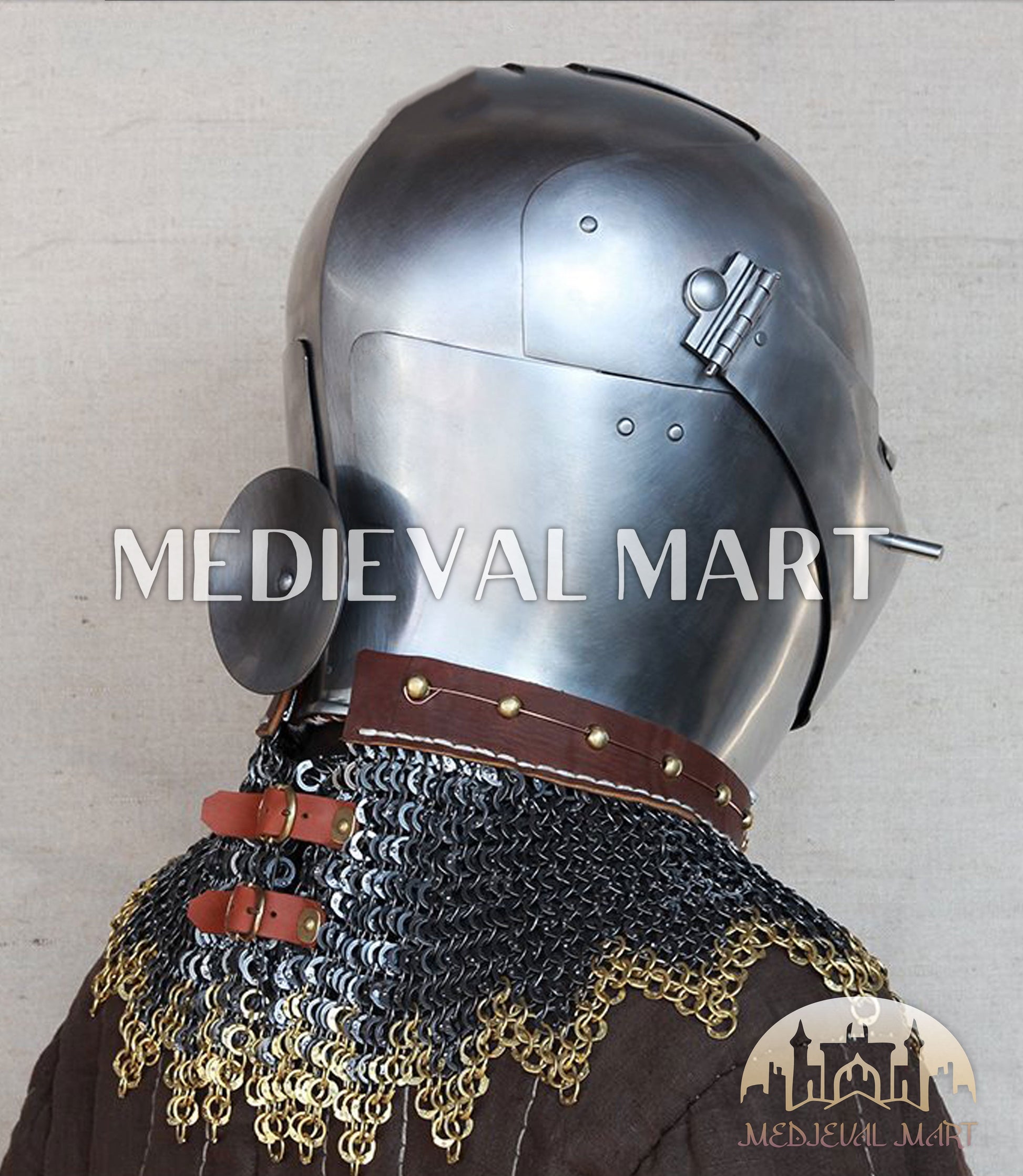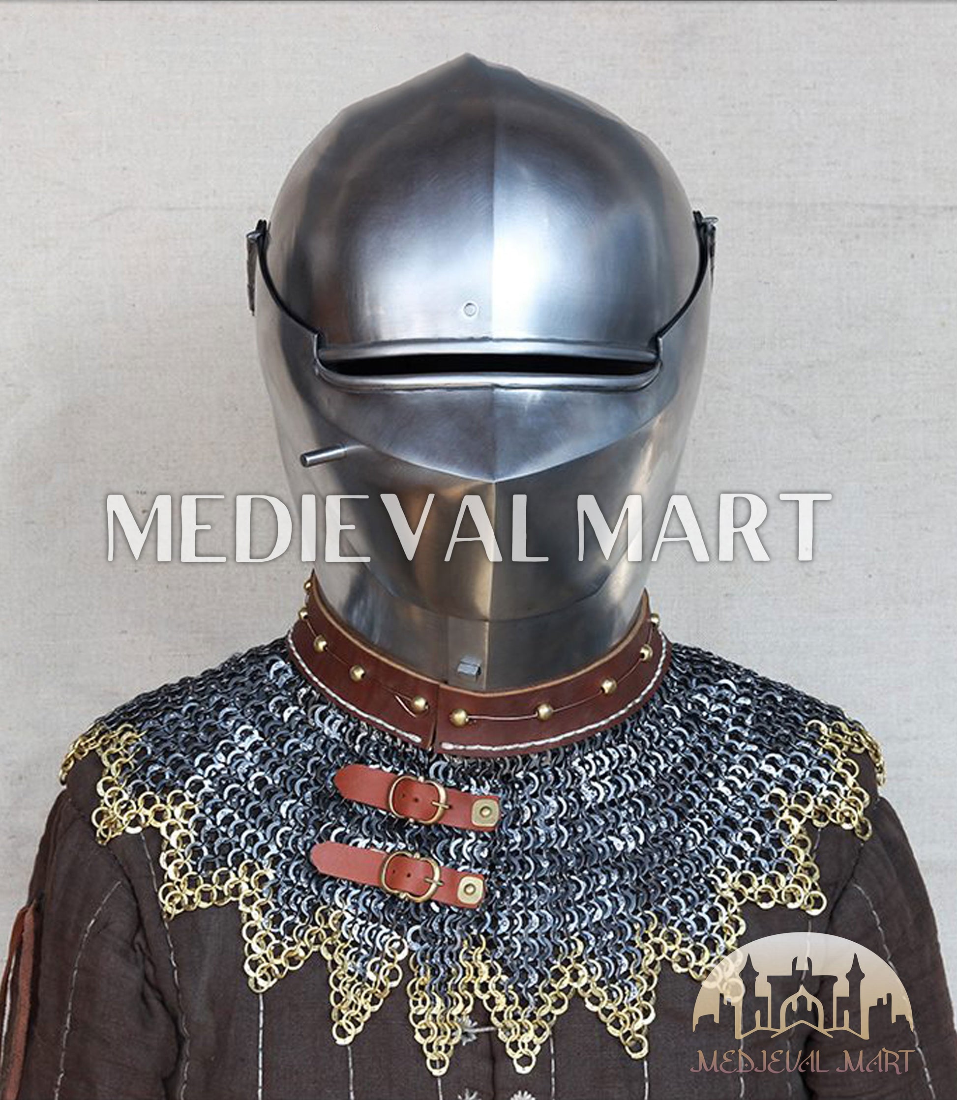 Expertly handcrafted from hardened steel, it delivers battle-ready protection while staying true to historical form. The distinctive snout-shaped visor offers exceptional deflection during close combat, making it a favorite for Buhurt, SCA, IMCF, or serious LARP warriors seeking a legacy piece.